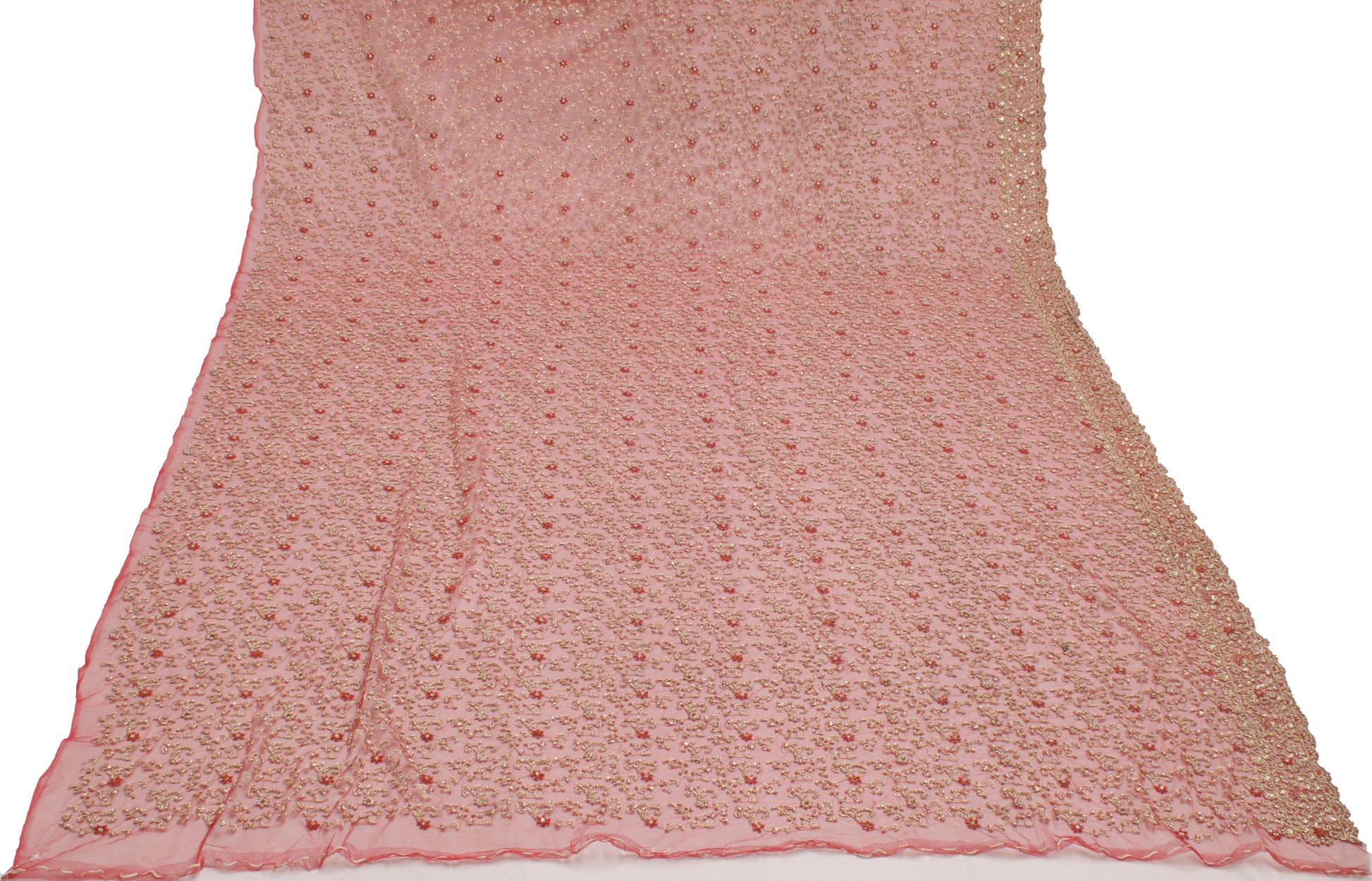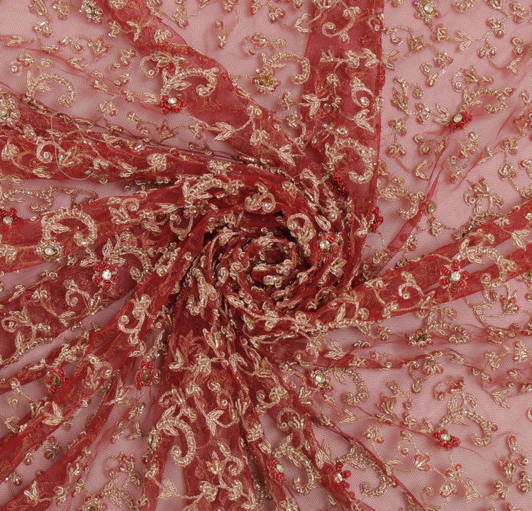 Embrace the art of fine craftsmanship with this stunning Red Floral Heavy Dupatta, perfect as an Indian Long Stole, Scarves, Veil, or Hijab. Crafted from premium Net Mesh, this piece features intricate Hand Beaded Zardozi Work, Stone Work, Sequins Work & Zari Embroidered work that captures the rich cultural heritage of India. The Red base beautifully complements the delicate Floral details, making it a perfect choice for weddings, festivals, or creative upcycling projects.