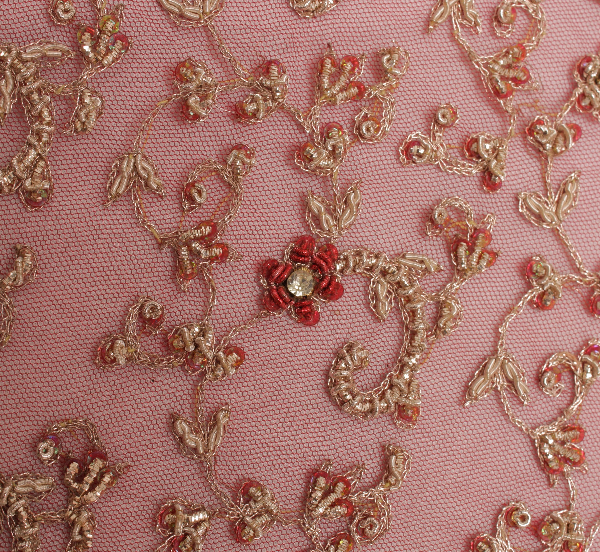 Sushila Vintage Red Heavy Dupatta Net Mesh Hand Beaded Zardozi Long Stole Veil