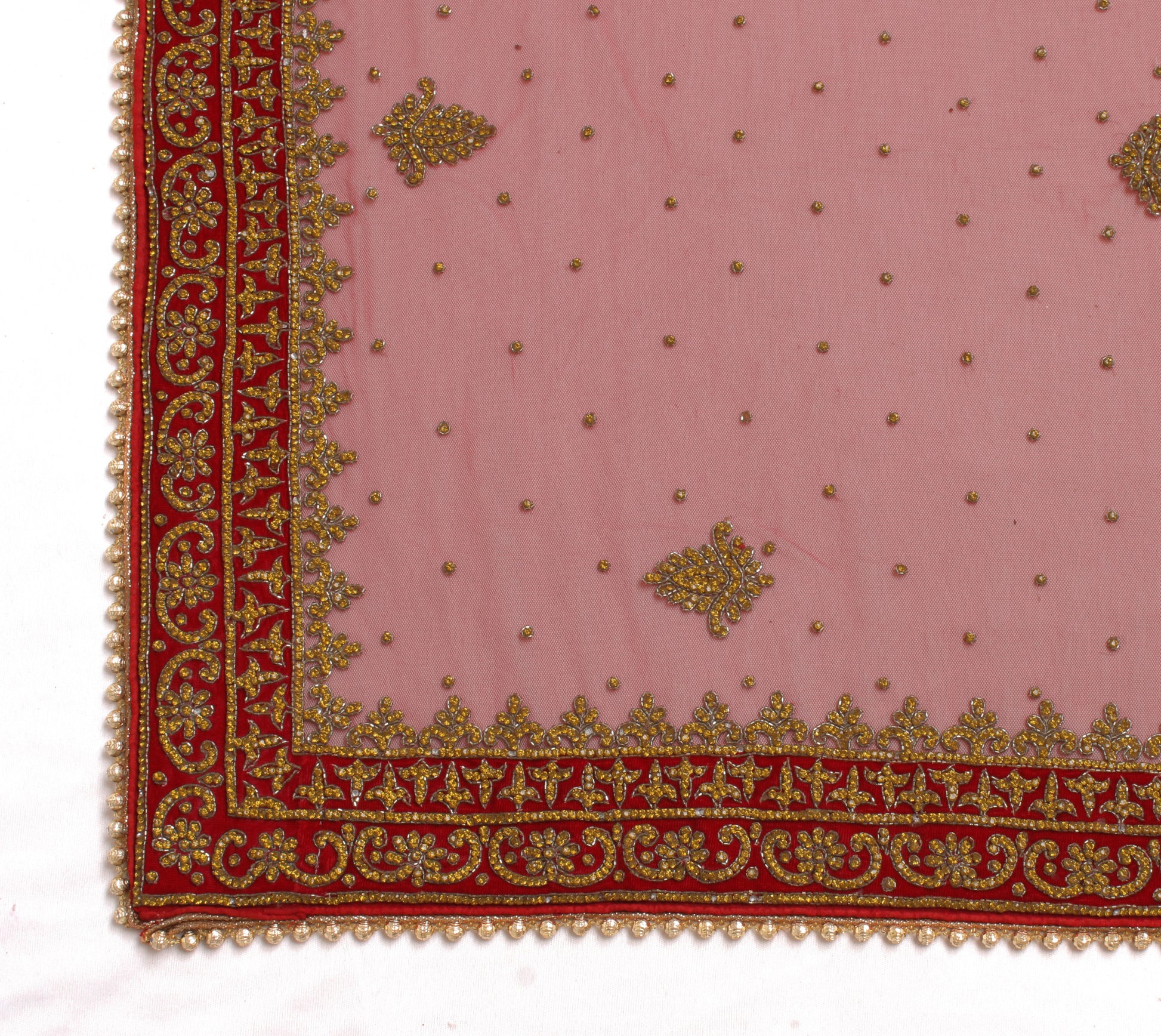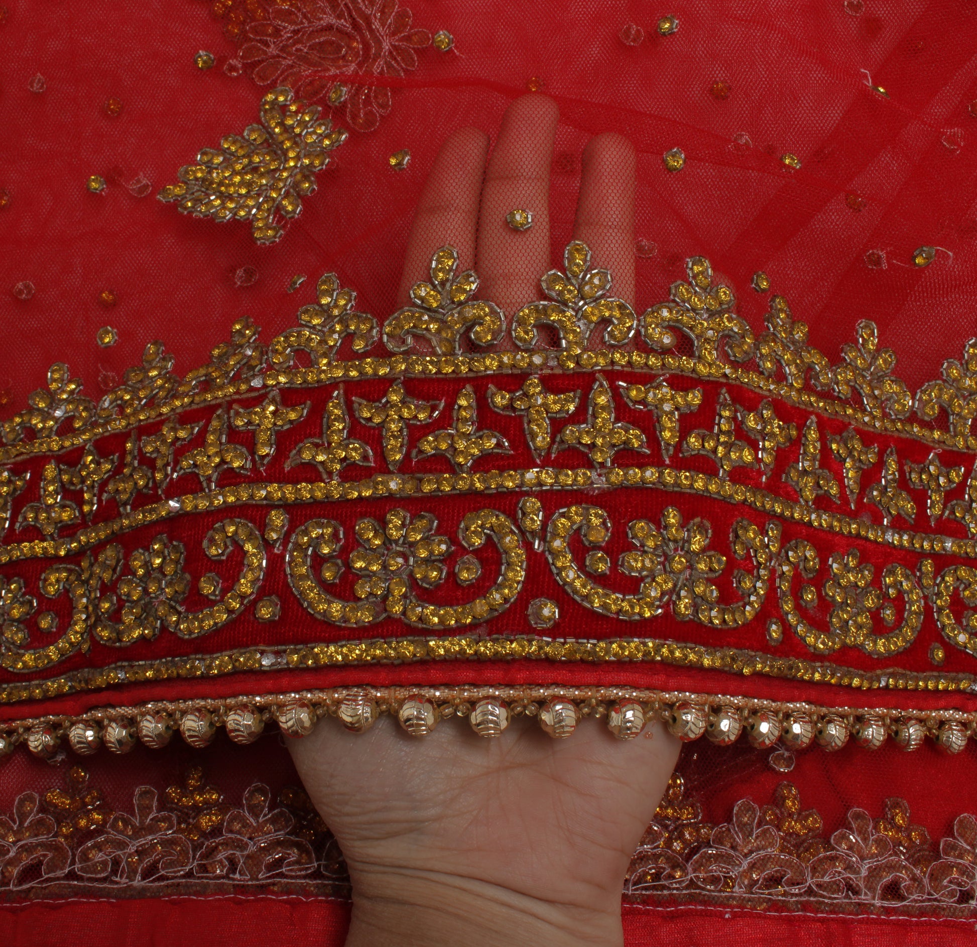 Embrace the art of fine craftsmanship with this stunning Red Floral Heavy Dupatta, perfect as an Indian Long Stole, Scarves, Veil, or Hijab. Crafted from premium Net Mesh, this piece features intricate Beaded, Stone Work, Glass Beads & Embroidered work that captures the rich cultural heritage of India. The Red base beautifully complements the delicate Floral details, making it a perfect choice for weddings, festivals, or creative upcycling projects.