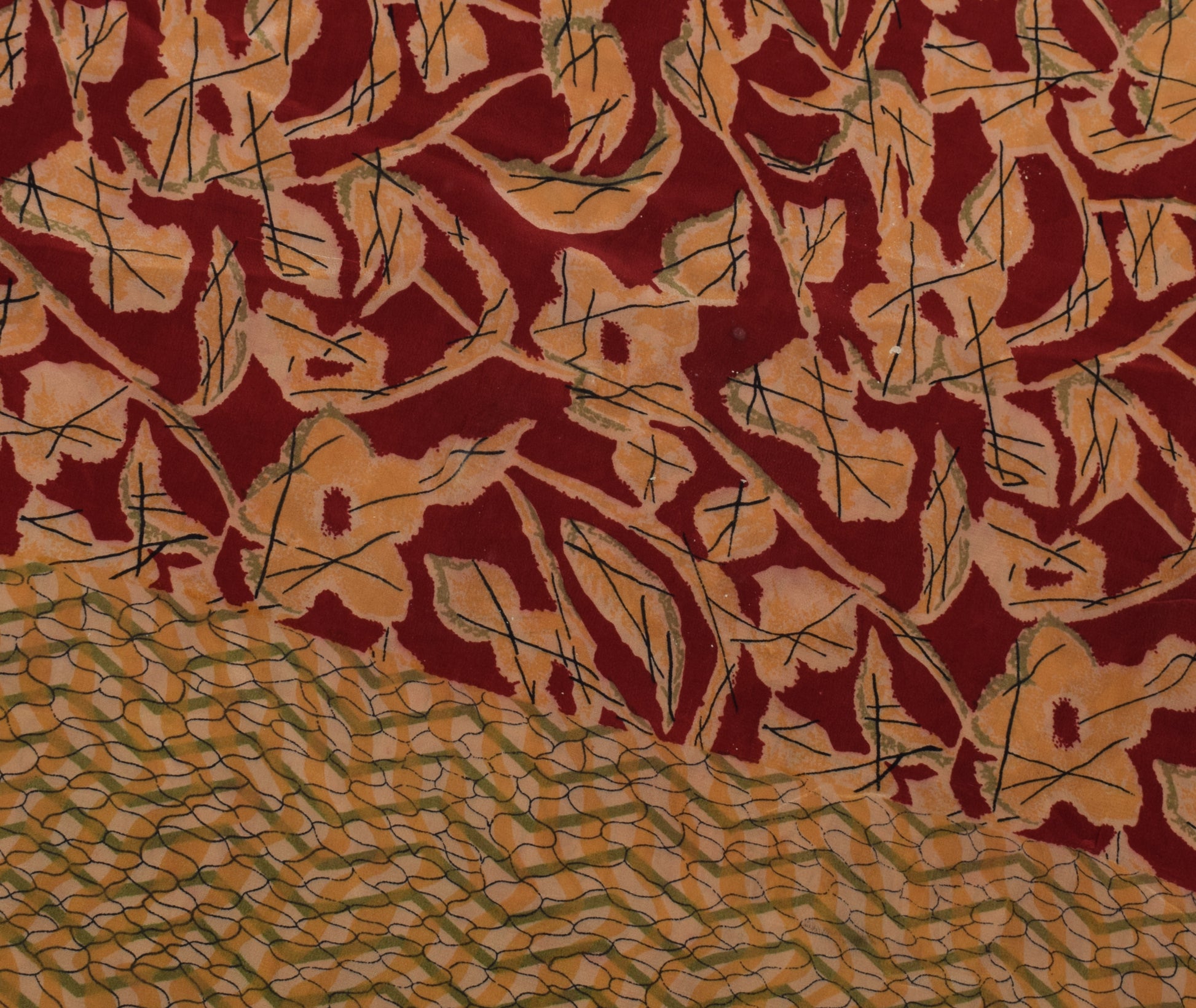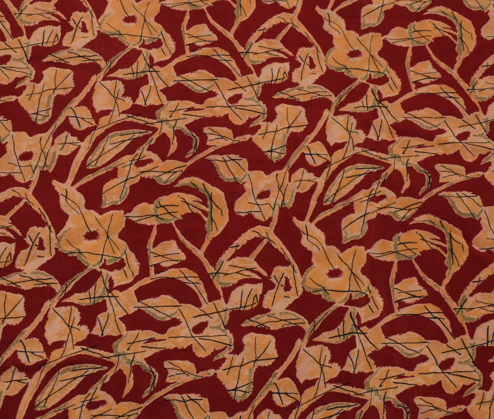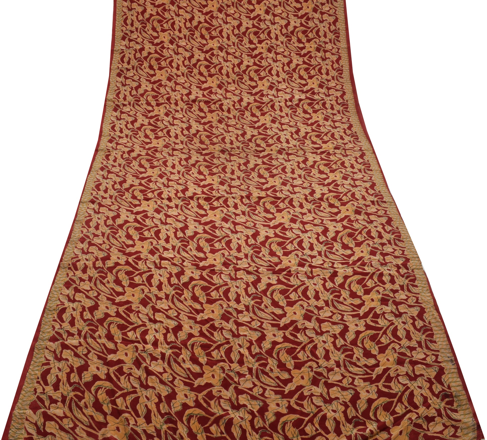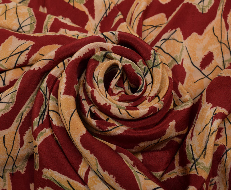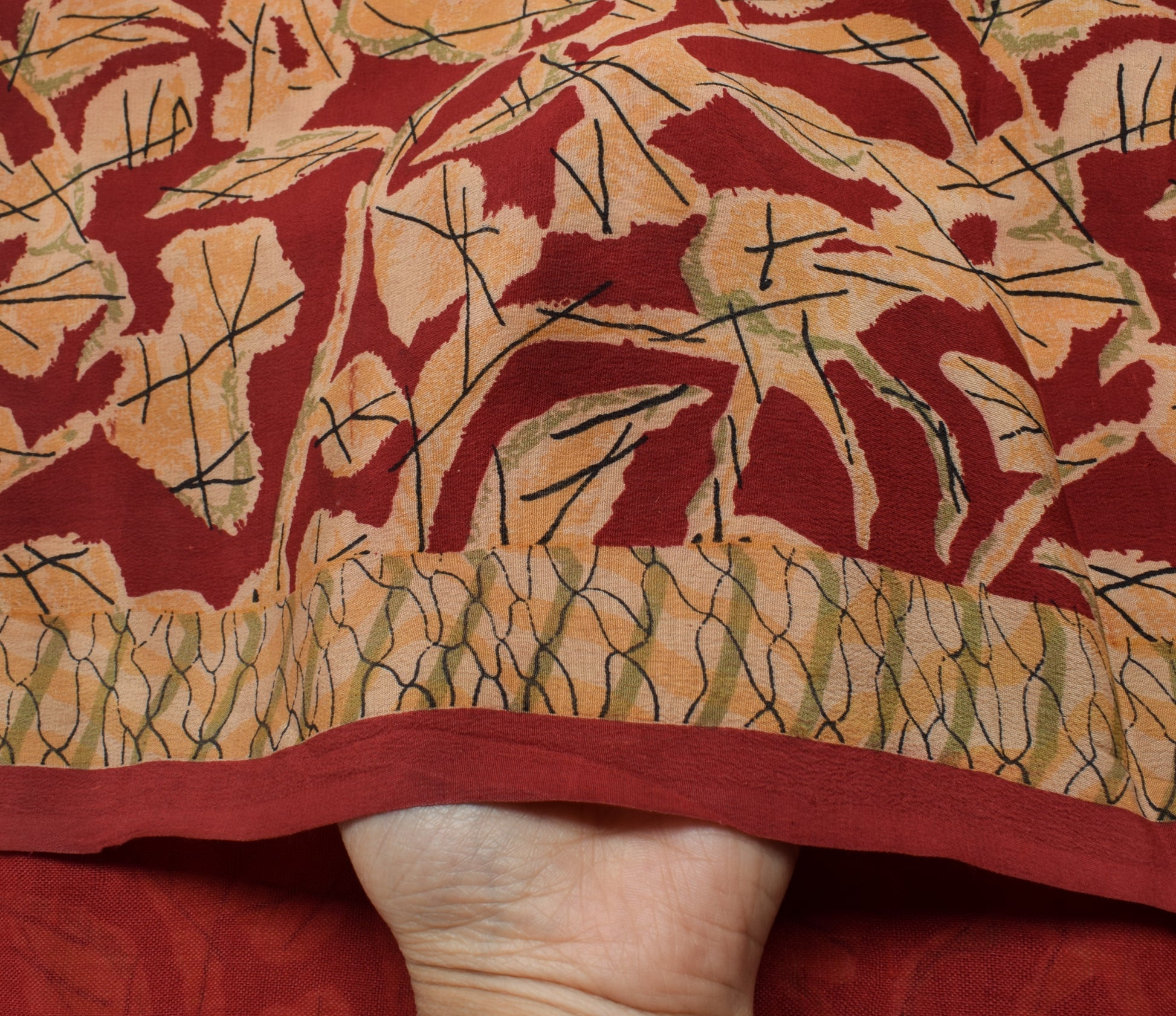 Sushila Vintage Red Indian Saree 100% Pure Crepe Silk Printed Soft Craft Fabric