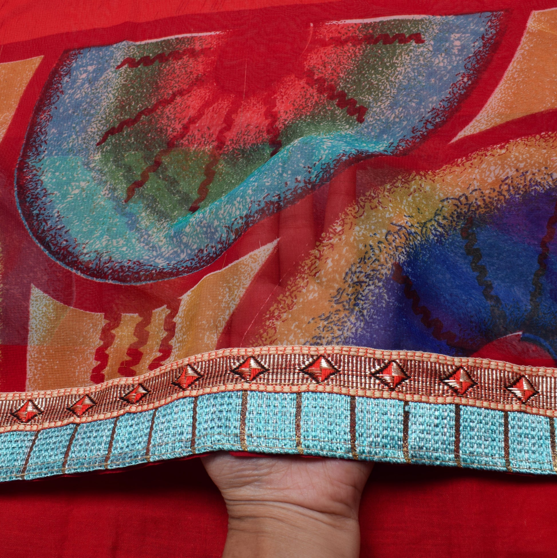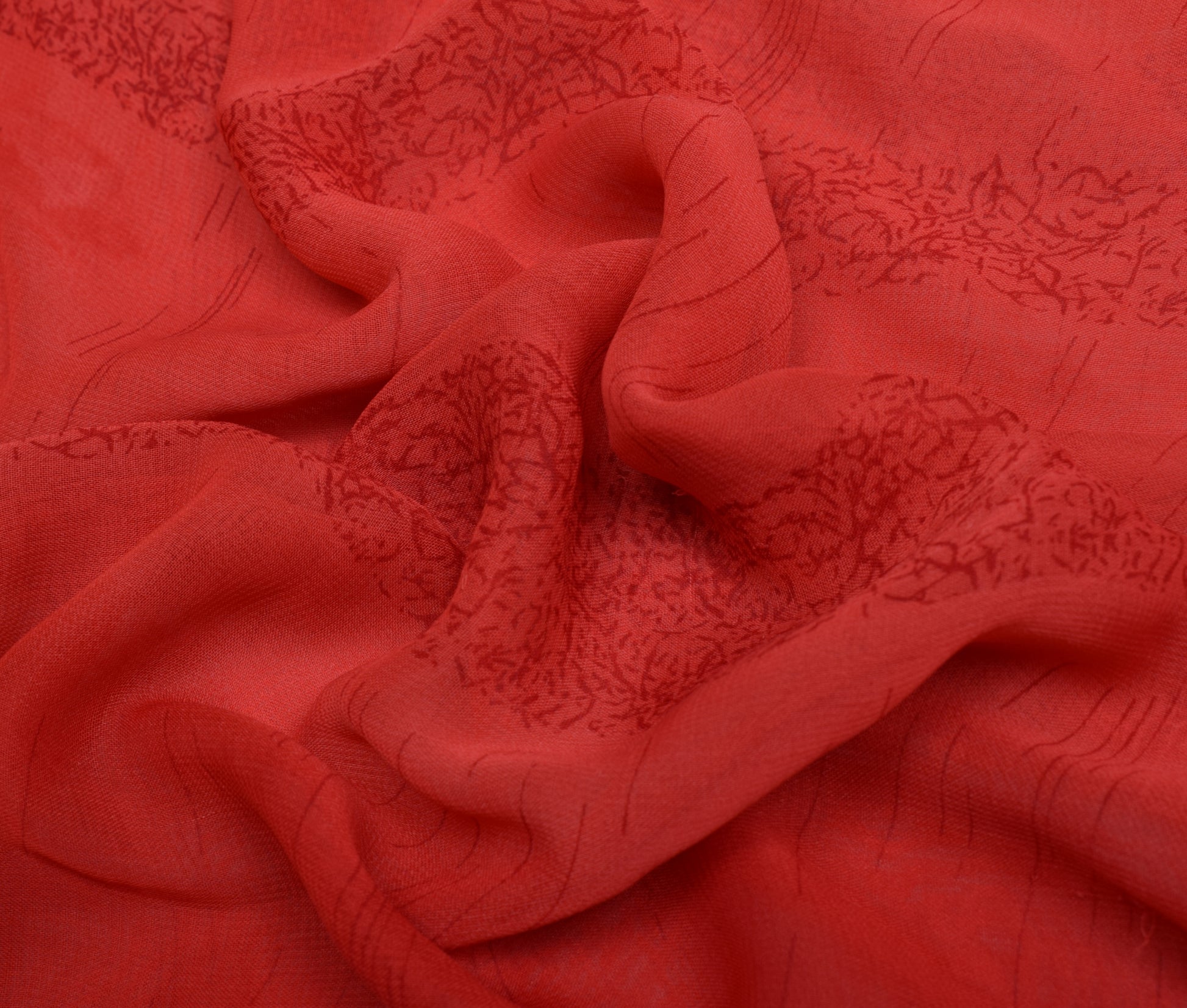 Sushila Vintage Red Indian Saree Blend Georgette Silk Printed 5 YD Craft Fabric