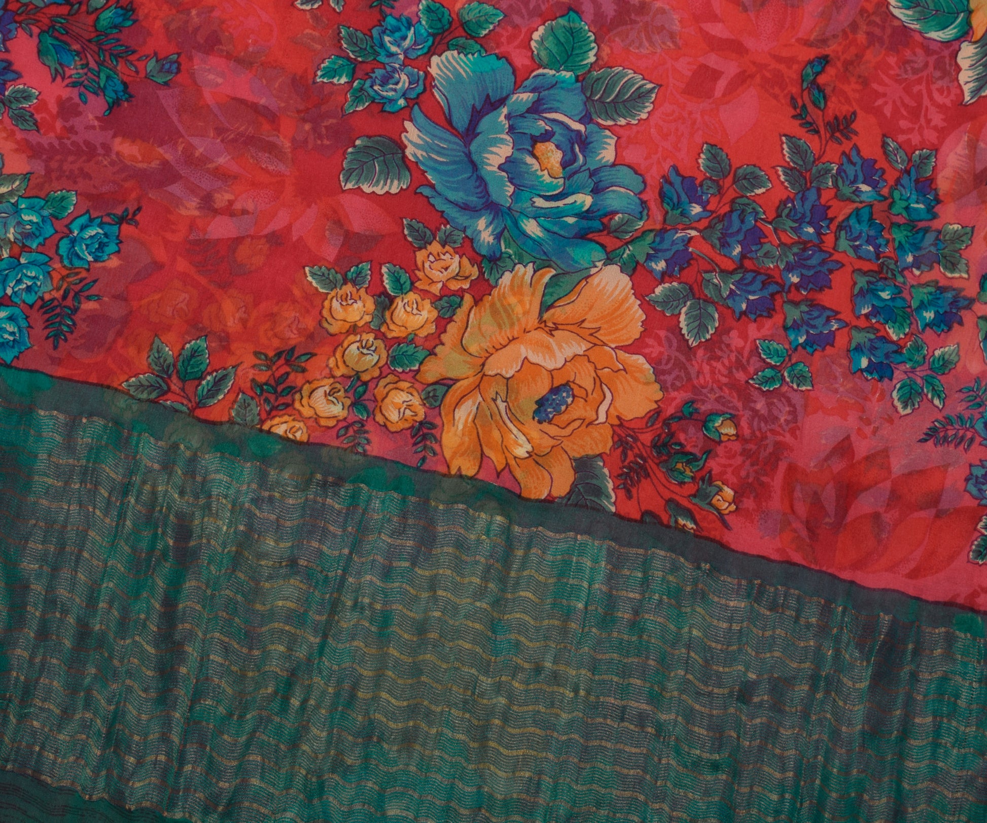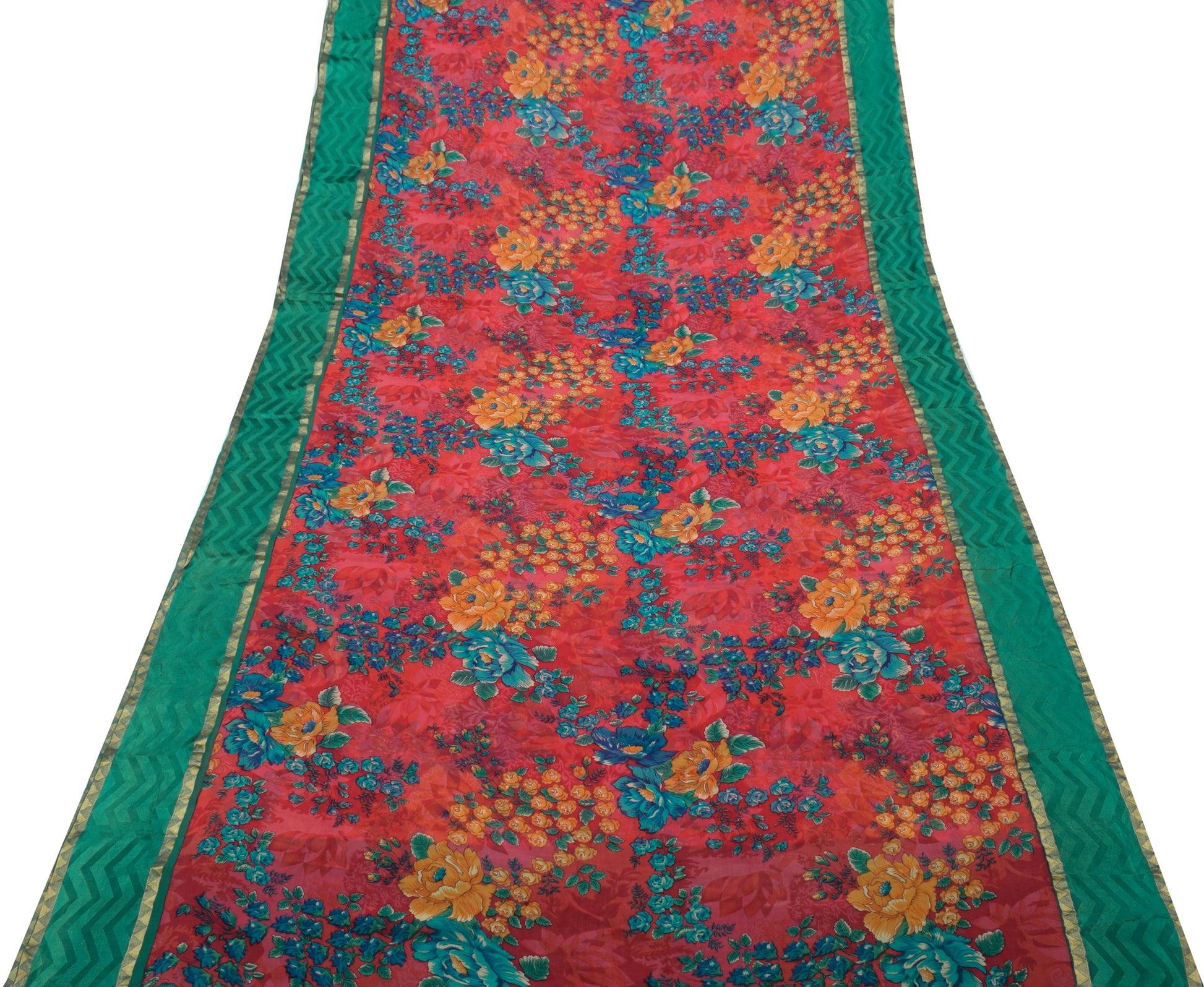 Sushila Vintage Red Saree 100% Pure Georgette Silk Printed Floral Craft Fabric