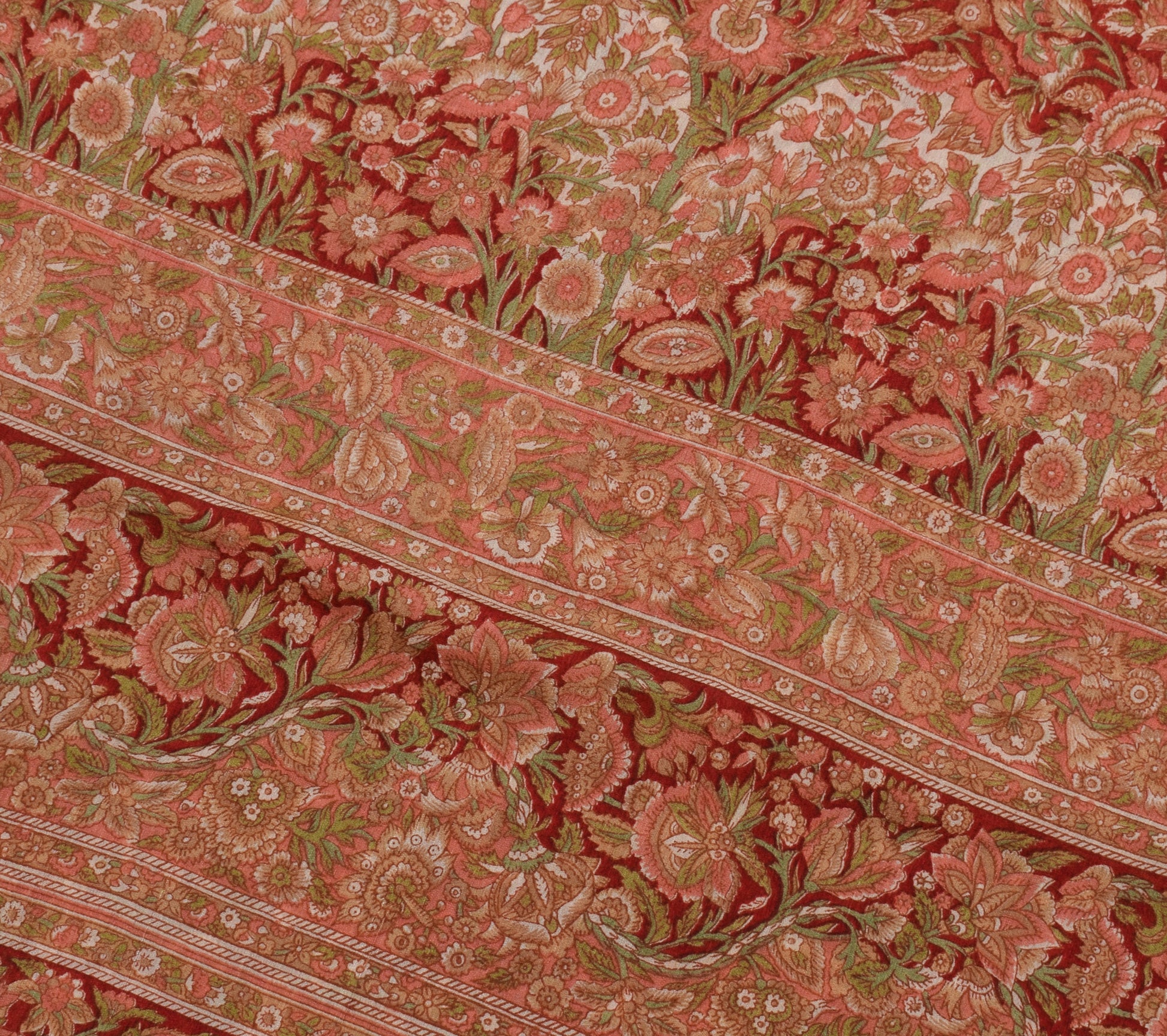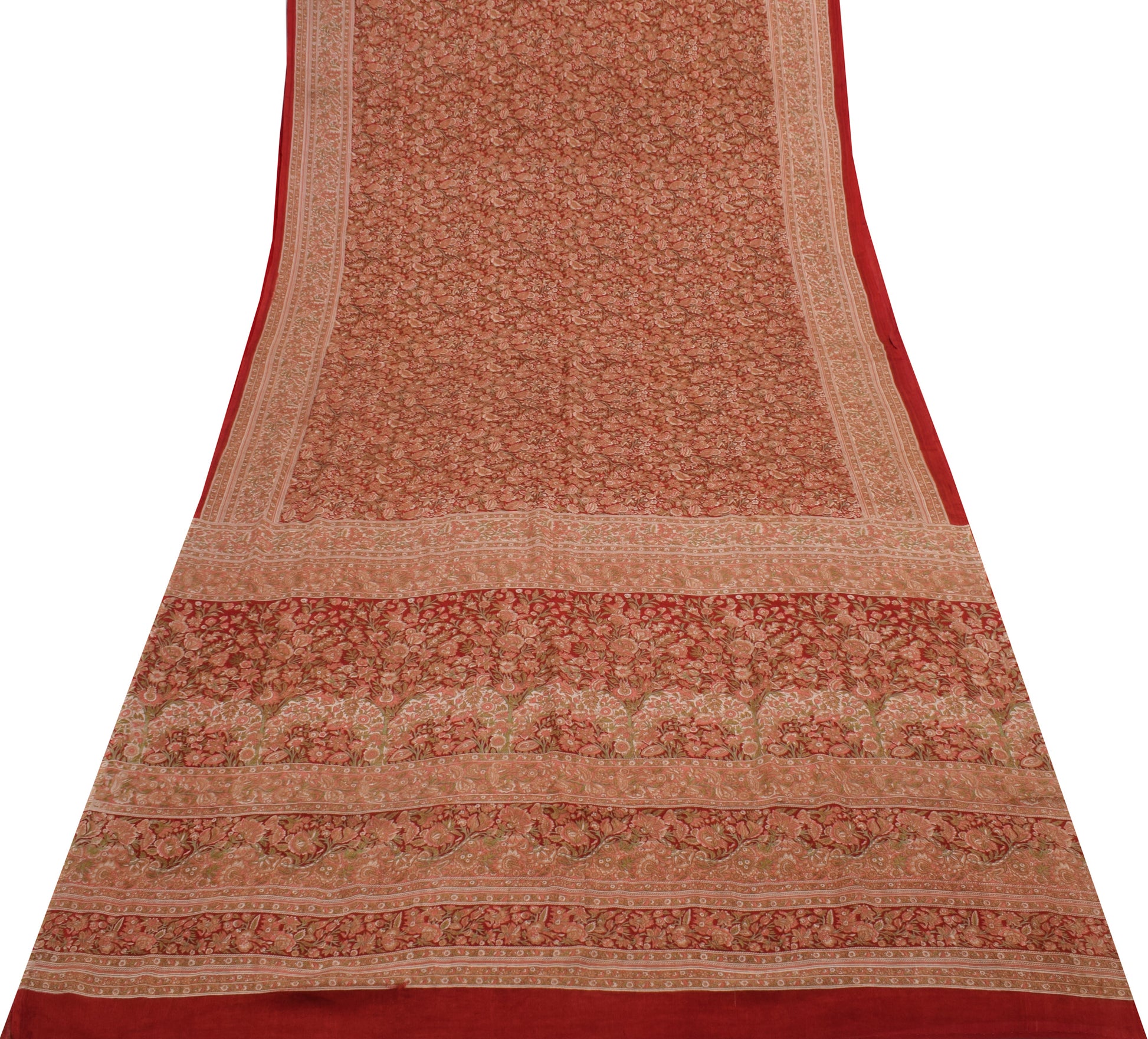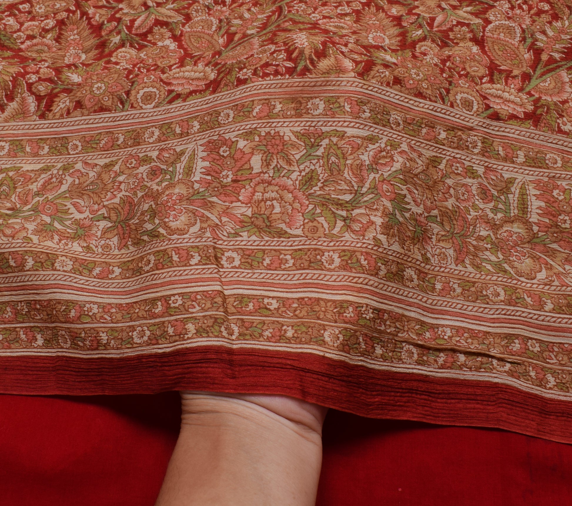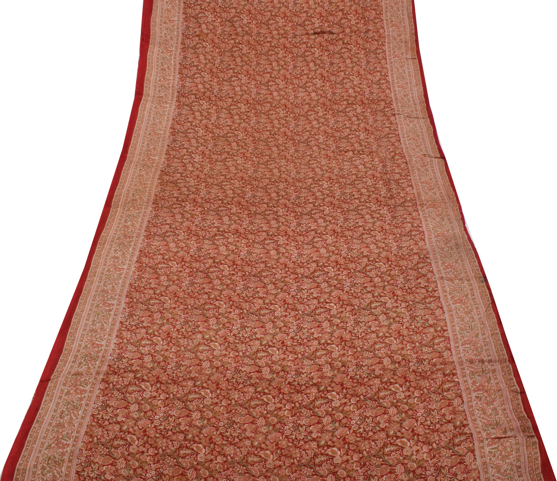 Sushila Vintage Red Saree 100% Pure Georgette Silk Printed Floral Craft Fabric