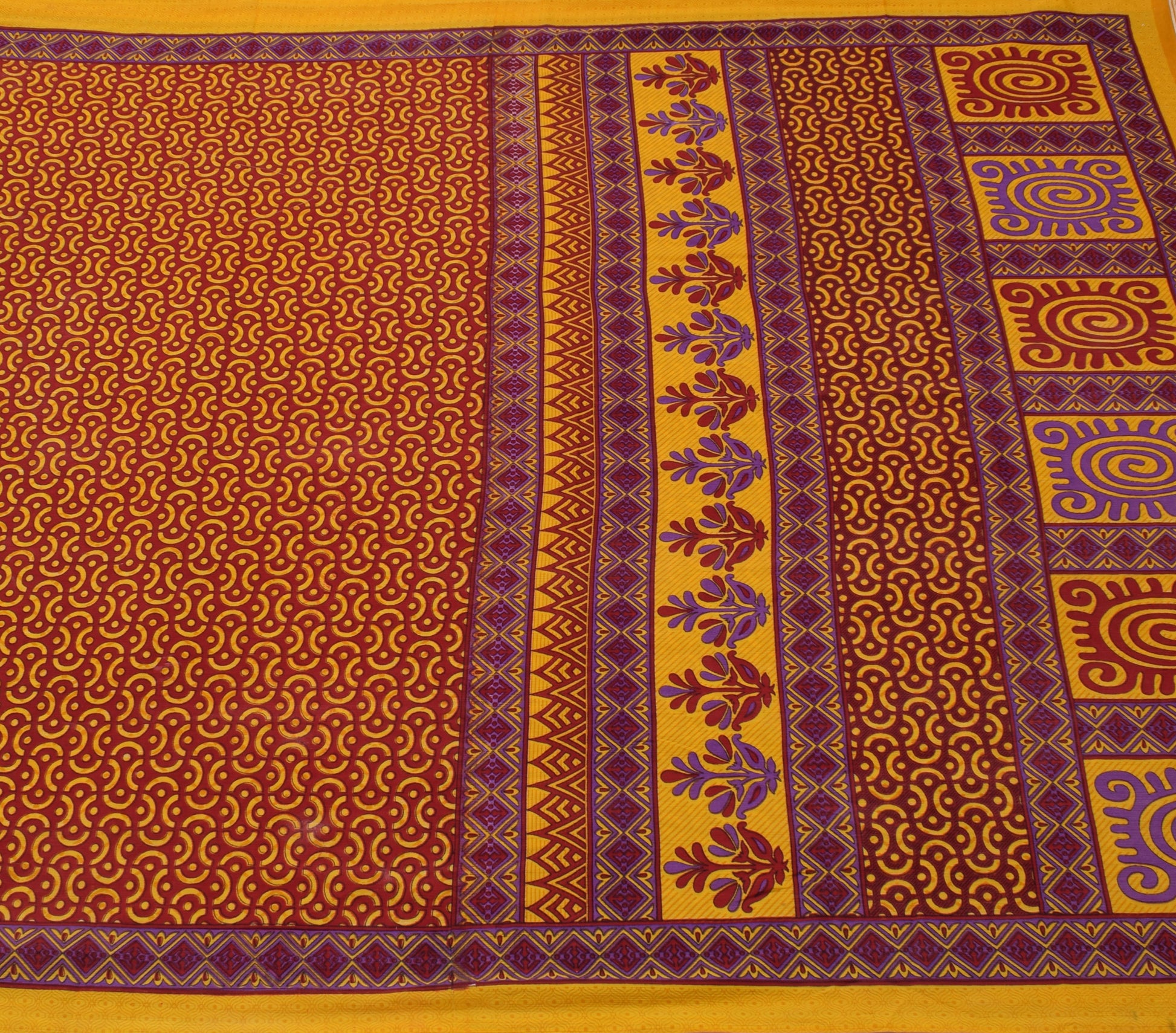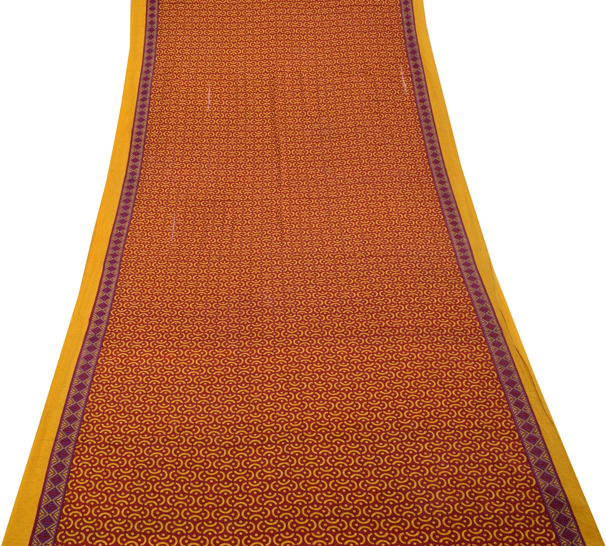 Sushila Vintage Red Saree Blend Crepe Silk Printed Soft Craft 5 Yard Fabric