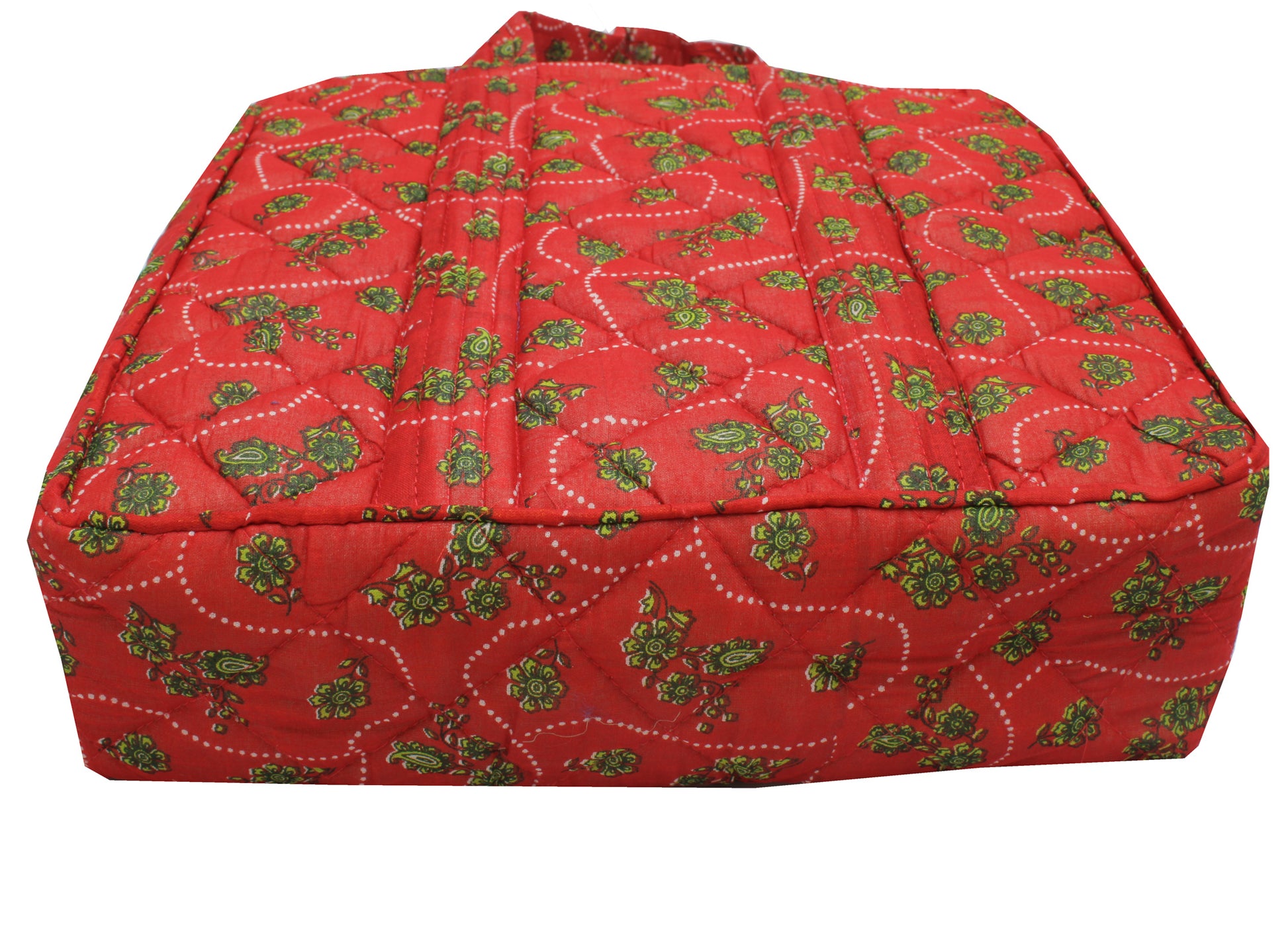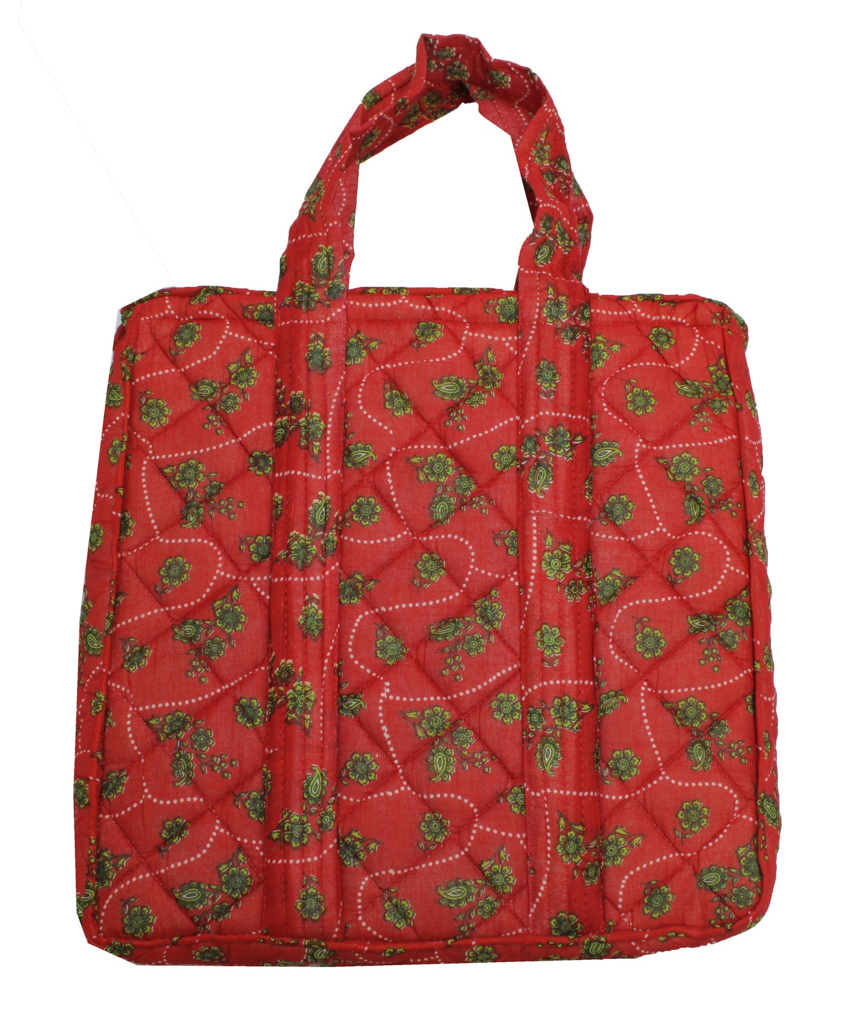 Sushila Vintage Red Tote Bag 100% Pure Silk Printed Handbag Shoulder Bag