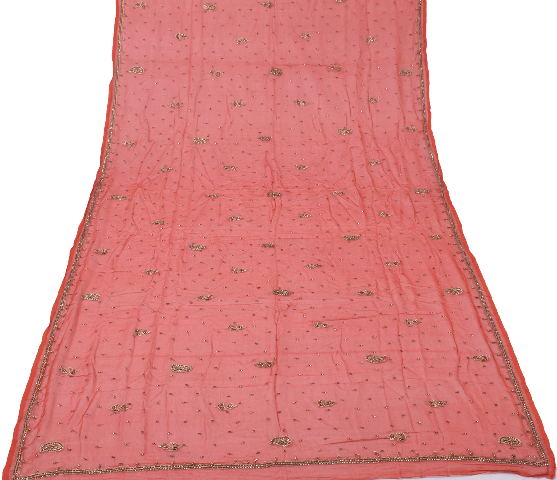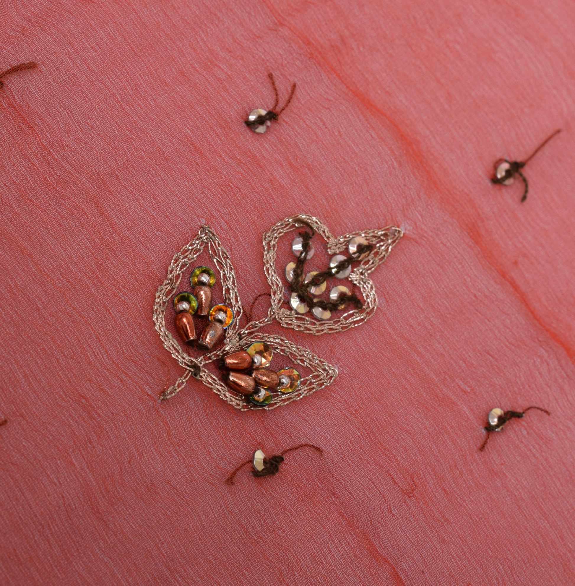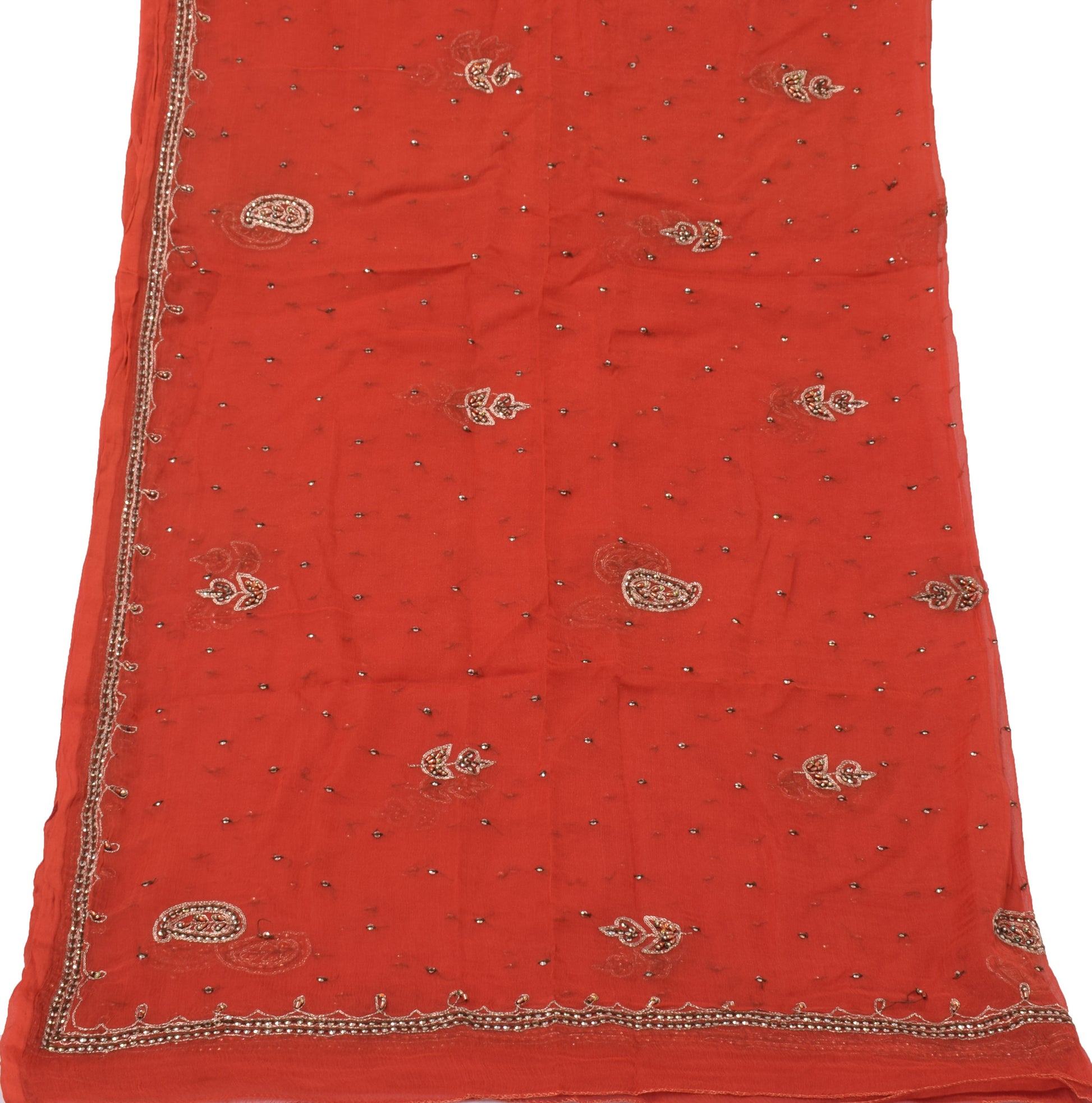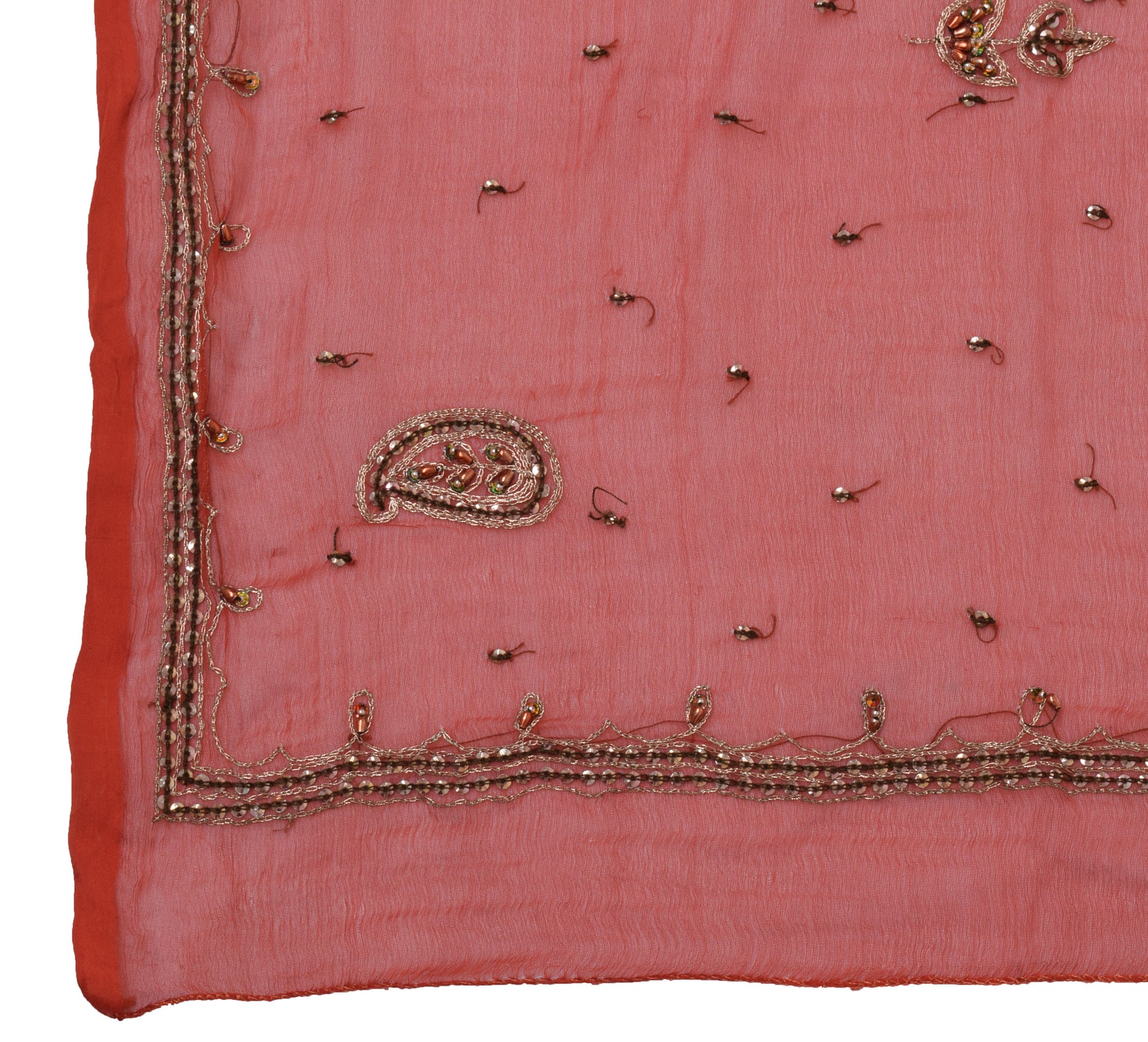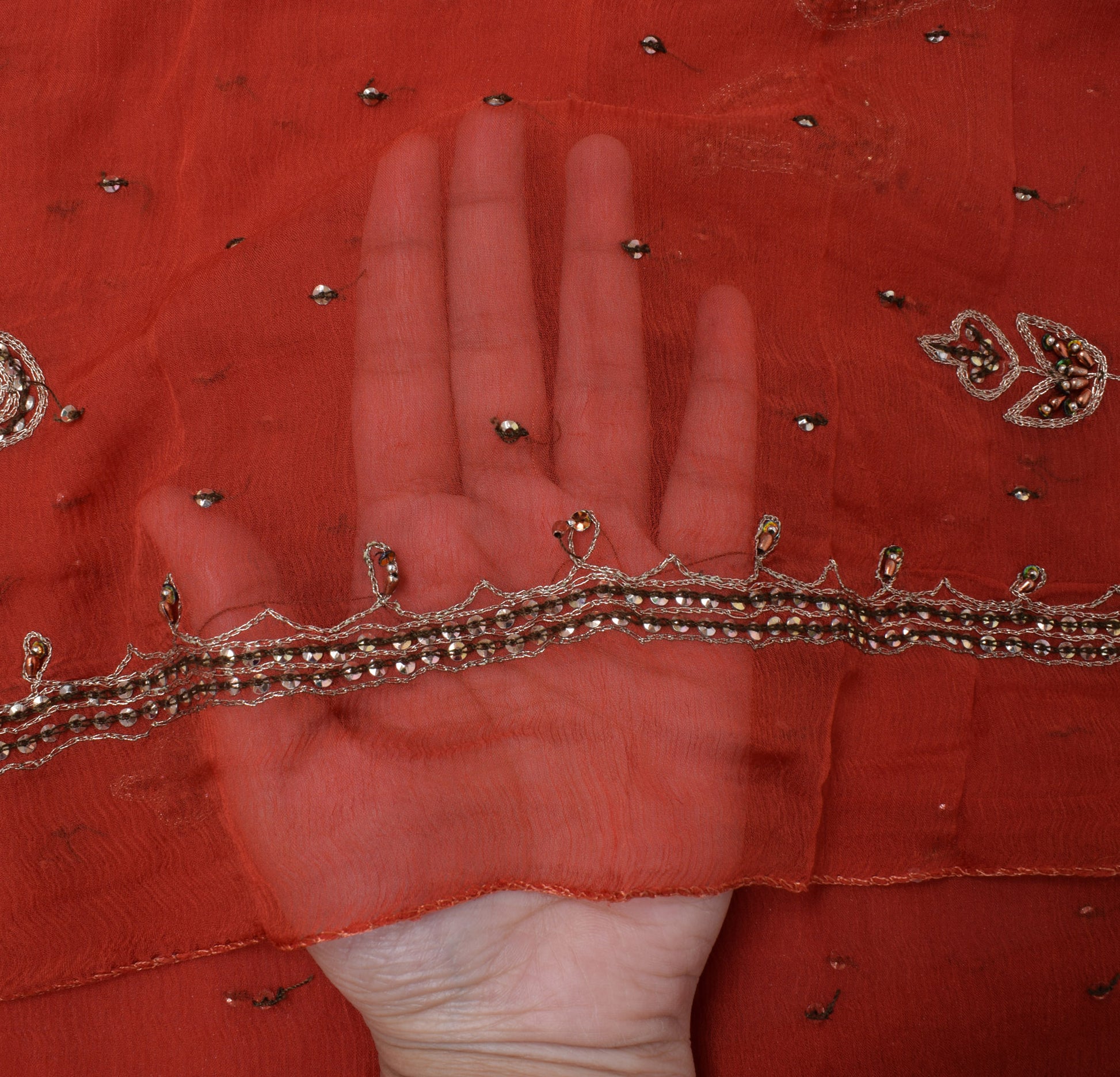 Sushila Vintage Rust Dupatta Pure Chiffon Silk Sequins Embroidered Long Stole