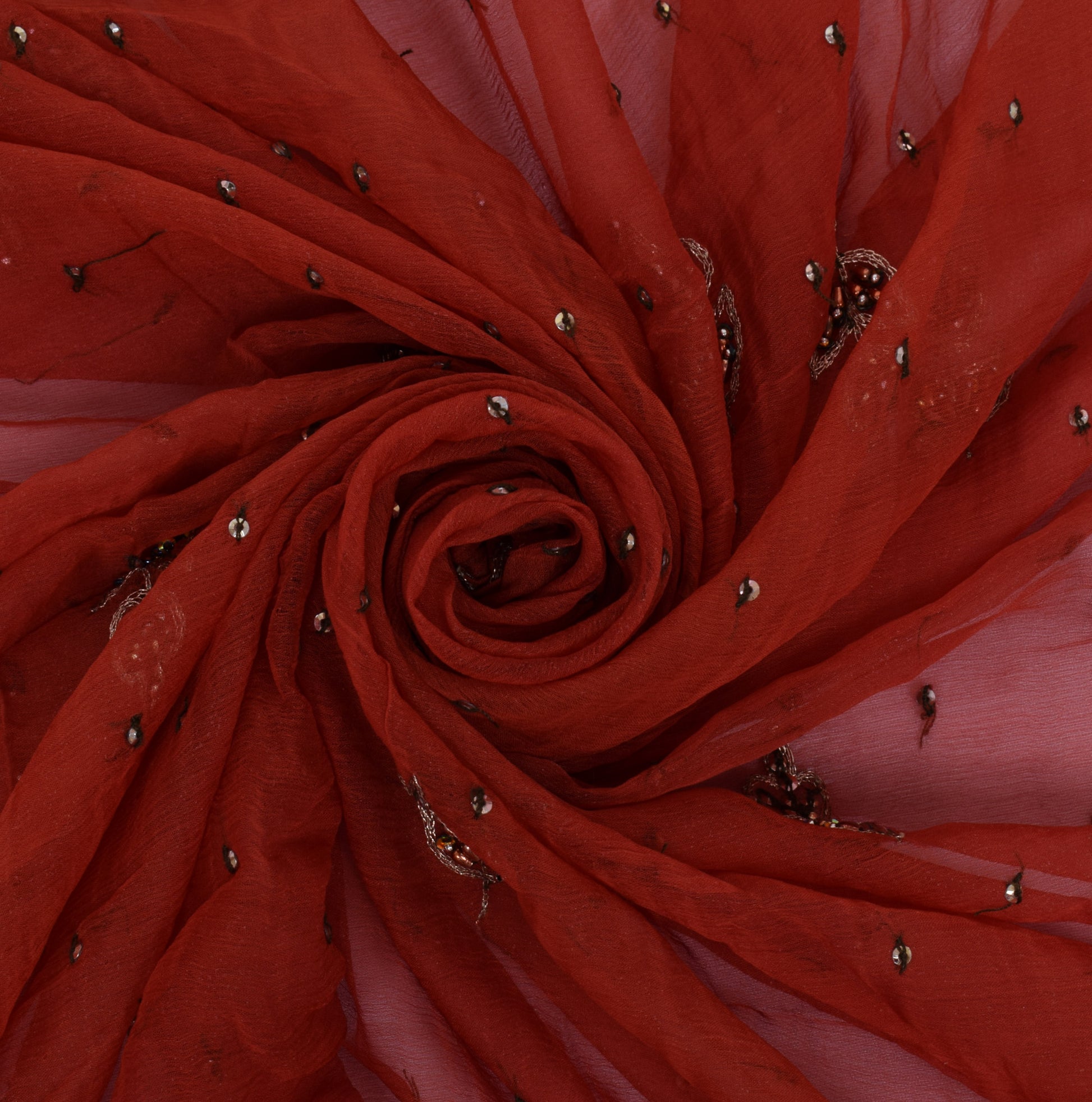 Capture the essence of traditional artistry with this stunning Rust Floral Dupatta, Scarf, Indian Long Stole, Veil, or Hijab, designed for both comfort and style. Made from premium Pure Chiffon Silk, this piece features intricate Hand Beaded & Sequins Embroidered work, adding a touch of traditional charm to any outfit. The Rust base beautifully complements the delicate Floral detailing, creating a truly timeless accessory.