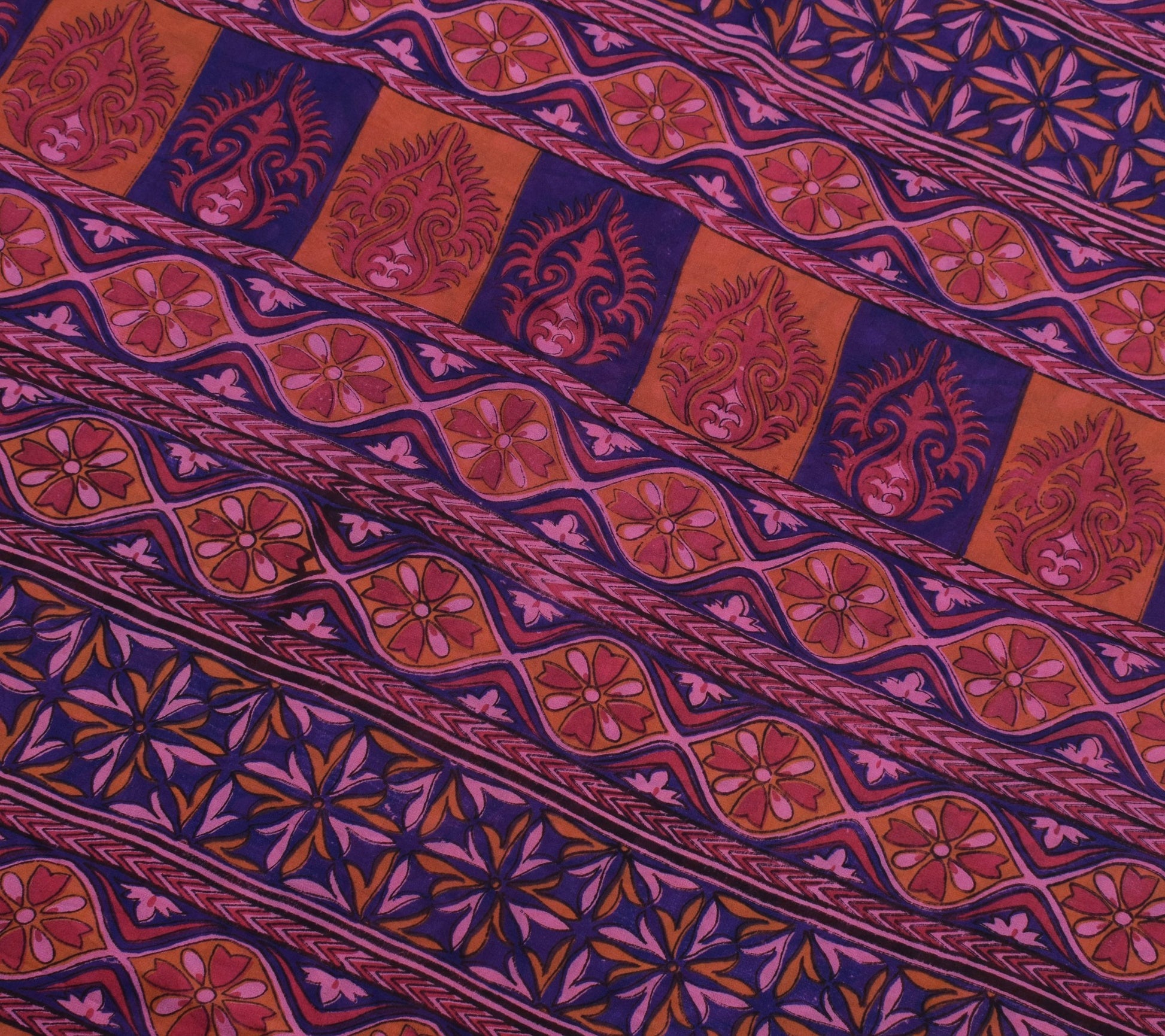 Sushila Vintage Rust Saree 100% Pure Georgette Silk Floral Printed Craft Fabric