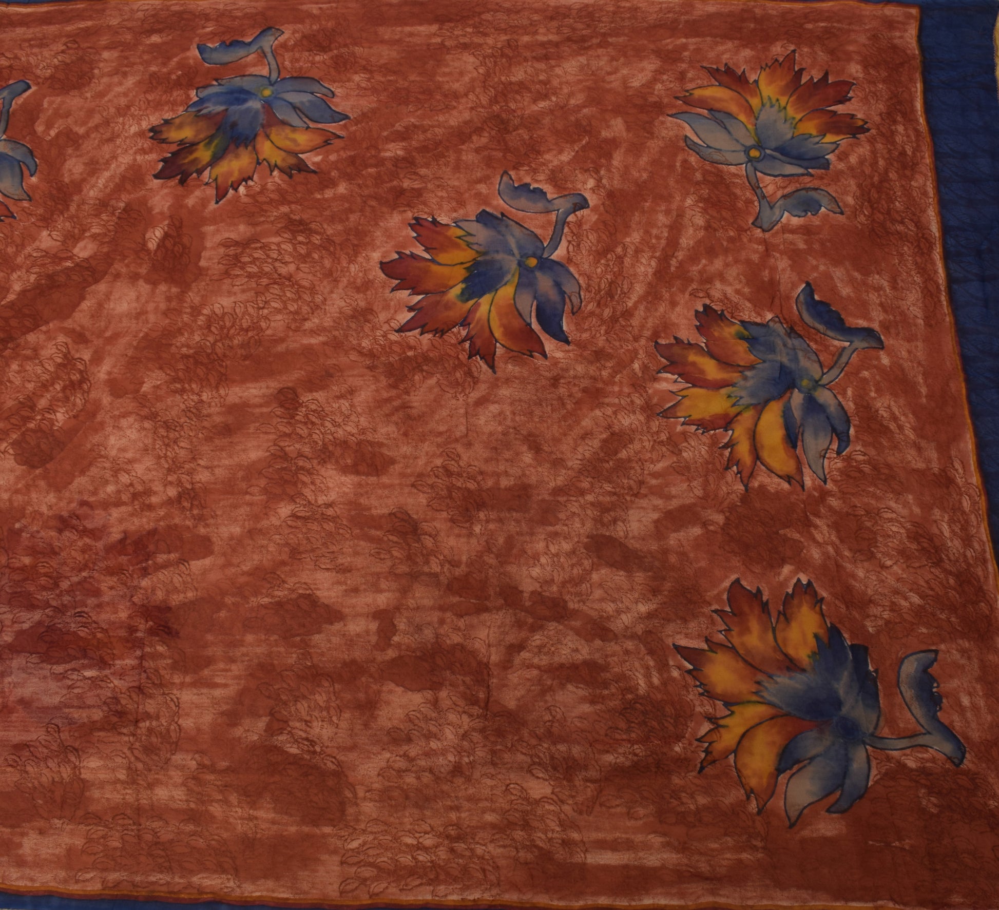 Sushila Vintage Rust Saree 100% Pure Georgette Silk Printed Floral Craft Fabric