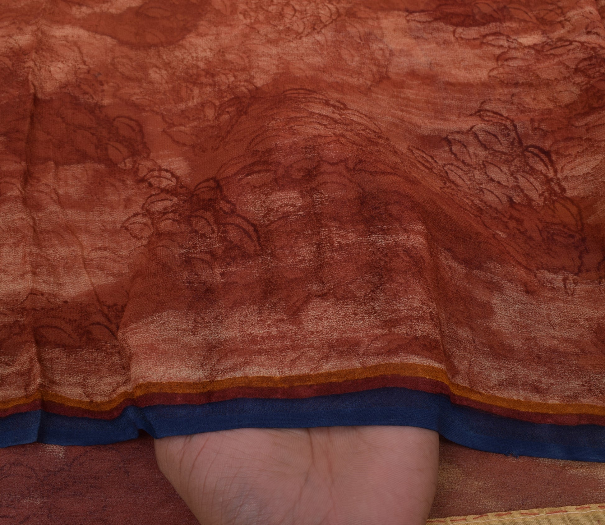 Experience the timeless allure of this Rust 100% Pure Georgette Silk saree, crafted with intricate Floral motifs and refined Printing details. It is perfect for special occasions, creative repurposing, or as a beautiful heirloom gift. Measuring approximately Approx 180 Inch / 14.994 Foot / 5.04 Yard / 457.2 CM / 4.572 Meter in length and Approx 43 Inch / 3.5819 Foot / 1.204 Yard / 109.22 CM / 1.0922 Meter in width, this sari offers versatile styling options. It is lightweight, weighing just 355 Grams (Actual Product weight), making it easy to drape and carry for long hours. The natural breathability and luxurious drape of 100% pure georgette silk make it a prized choice for those who appreciate fine craftsmanship and vintage fashion.