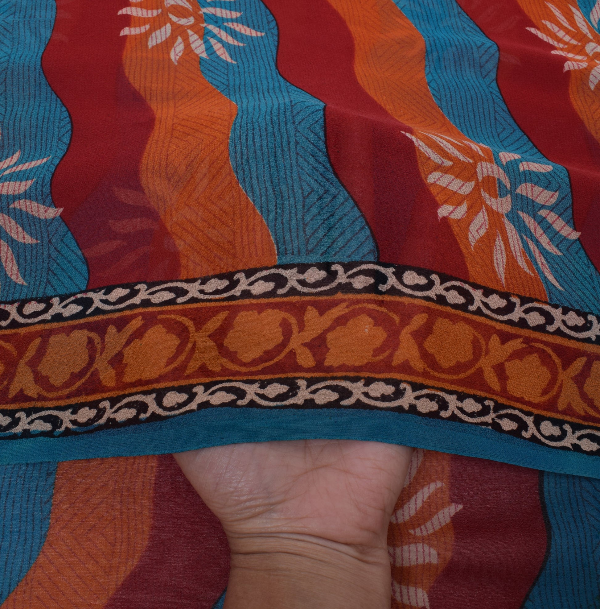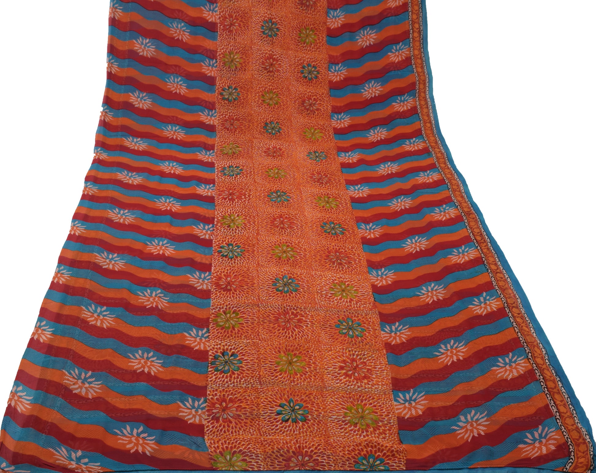 Sushila Vintage Rust Saree 100% Pure Georgette Silk Printed Floral Craft Fabric