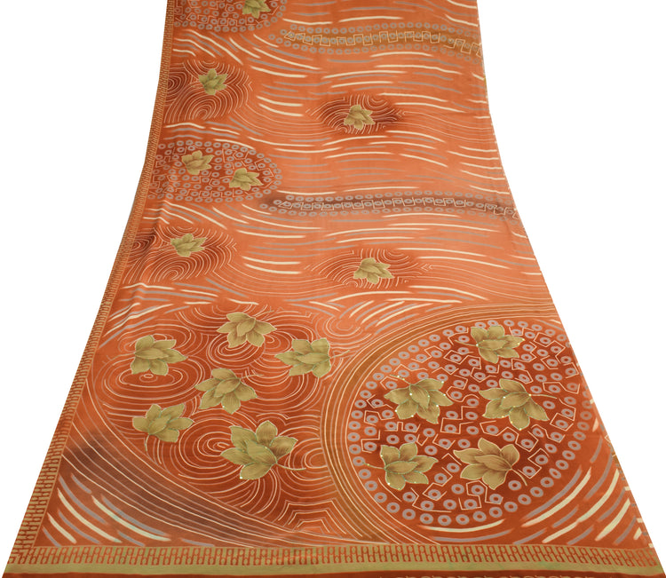 Sushila Vintage Rust Saree Blend Crepe Silk Printed Floral 5YD Soft Craft Fabric