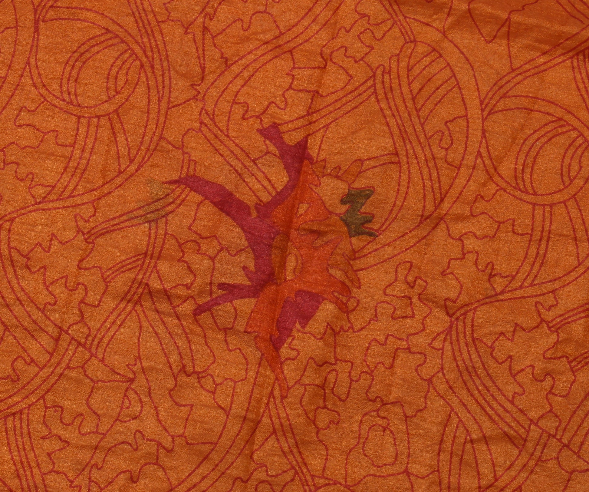Sushila Vintage Rust Saree Blend Silk Printed Floral Soft Craft Sari Fabric