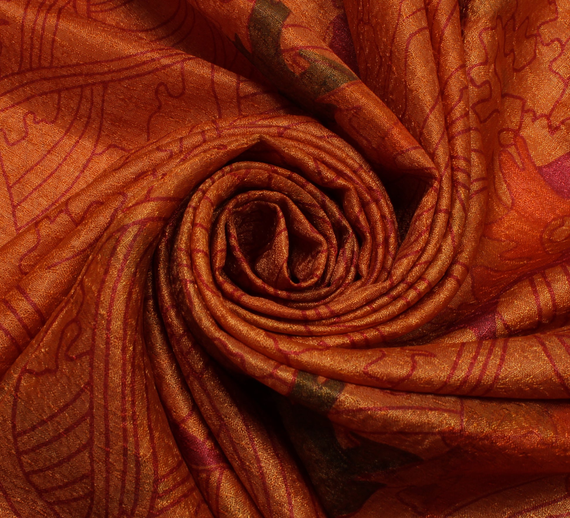 Embrace the charm of classic Indian fashion with this rust art or artificial silk saree, designed with floral patterns and intricate printed work. Crafted from pure, breathable art or artificial silk, this saree is known for its luxurious drape and timeless appeal. Measuring approximately 184 inch in length and 47 inch in width, it offers versatile styling possibilities, whether worn traditionally or repurposed for creative projects. With a weight of 290 grams (actual product weight), it drapes beautifully, making it an ideal choice for those who appreciate the charm of vintage textiles.
