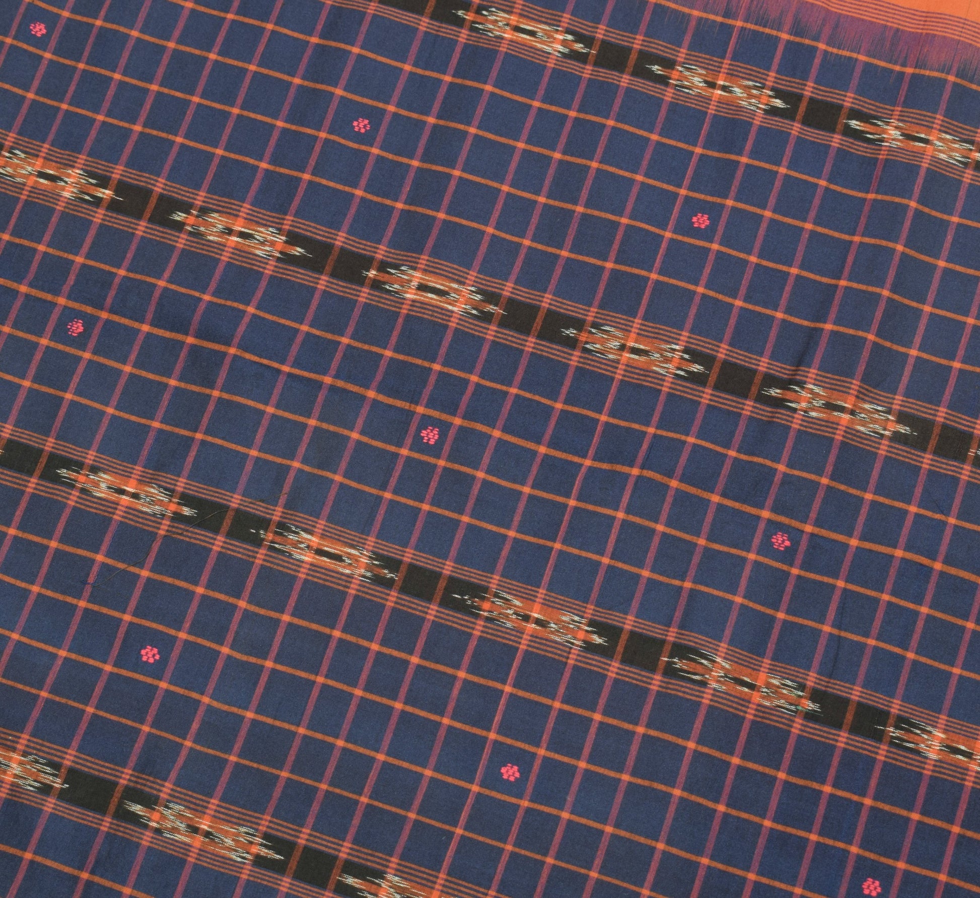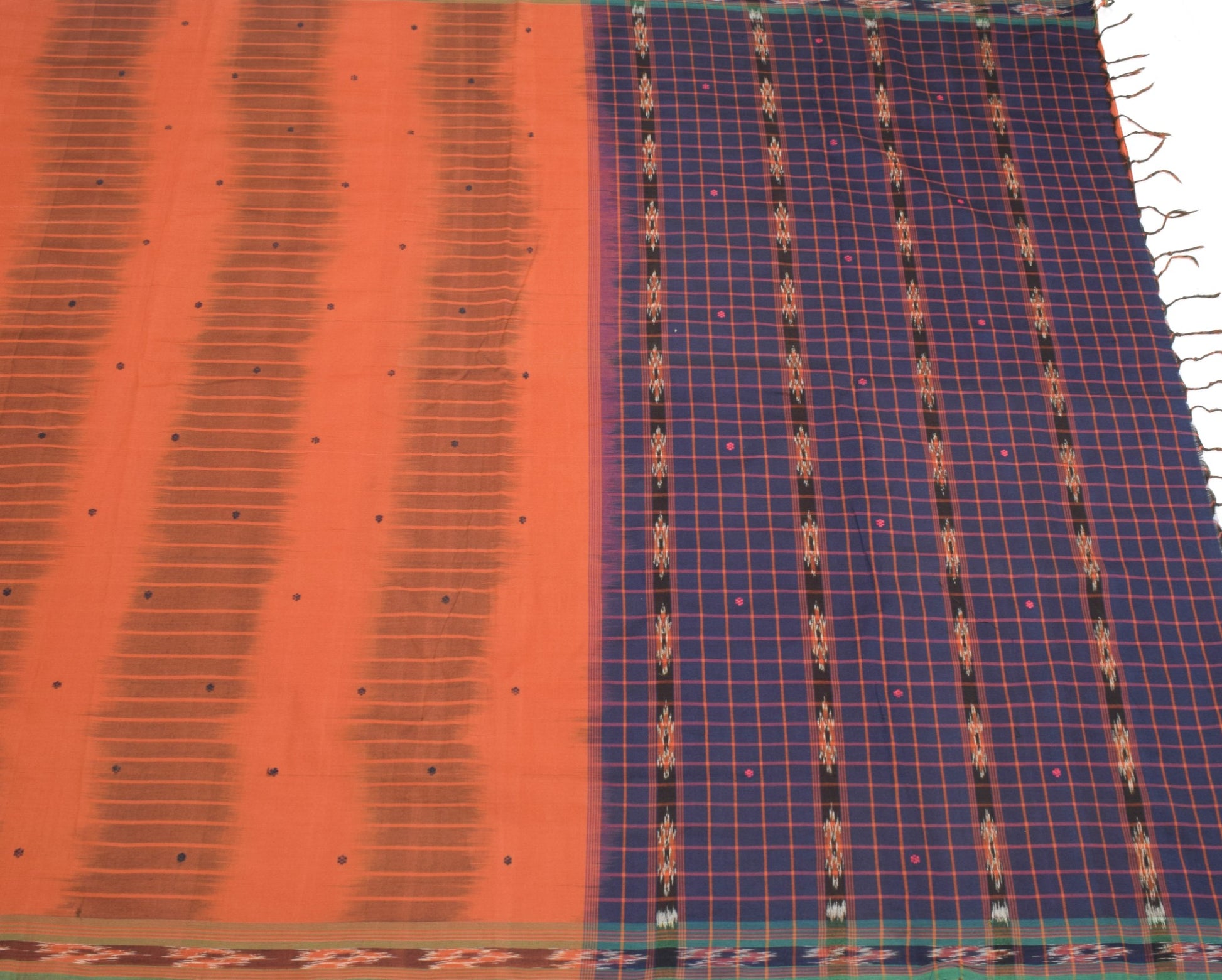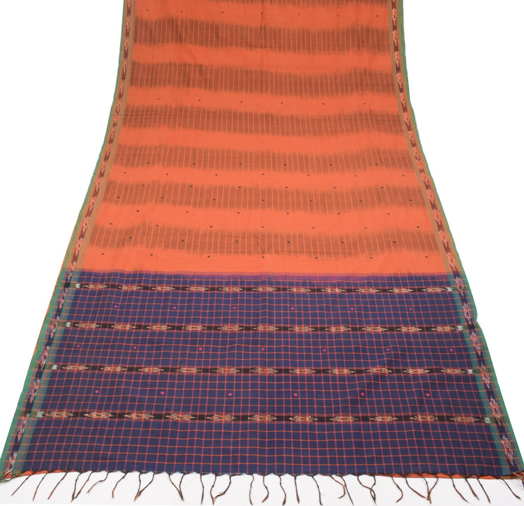 Sushila Vintage Rust Saree Pure Cotton Hand Woven Ikat Patola Sari Craft Fabric