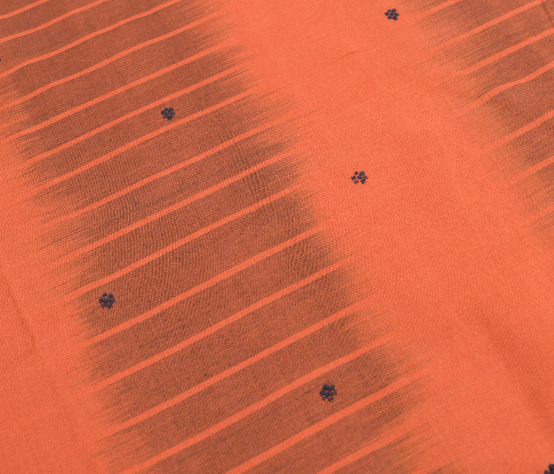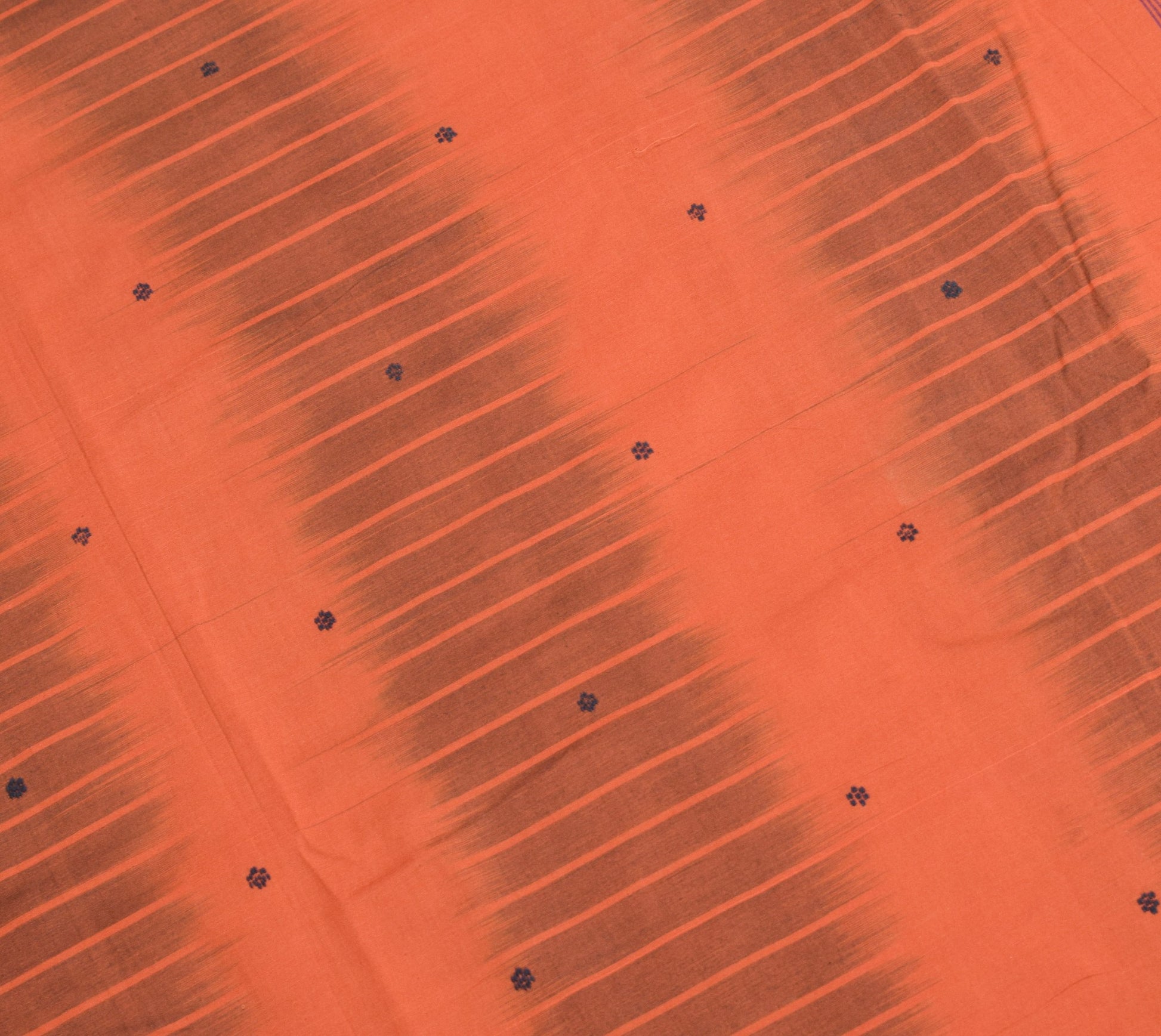 This vintage cotton silk saree in a warm rust hue is adorned with delicate handwoven floral Ikat patterns, blending traditional artistry with earthy charm. Crafted from 100% pure cotton silk, it offers a soft yet structured drape—perfect for both everyday grace and special occasions.