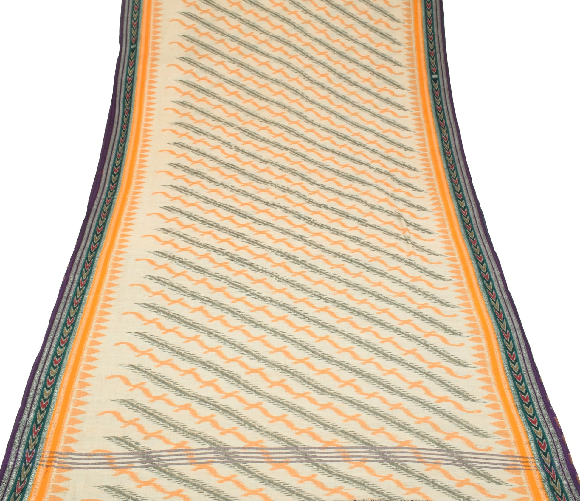 Sushila Vintage Sambalpuri Handloom Ikat Saree Pure Cotton Cream Woven Fabric