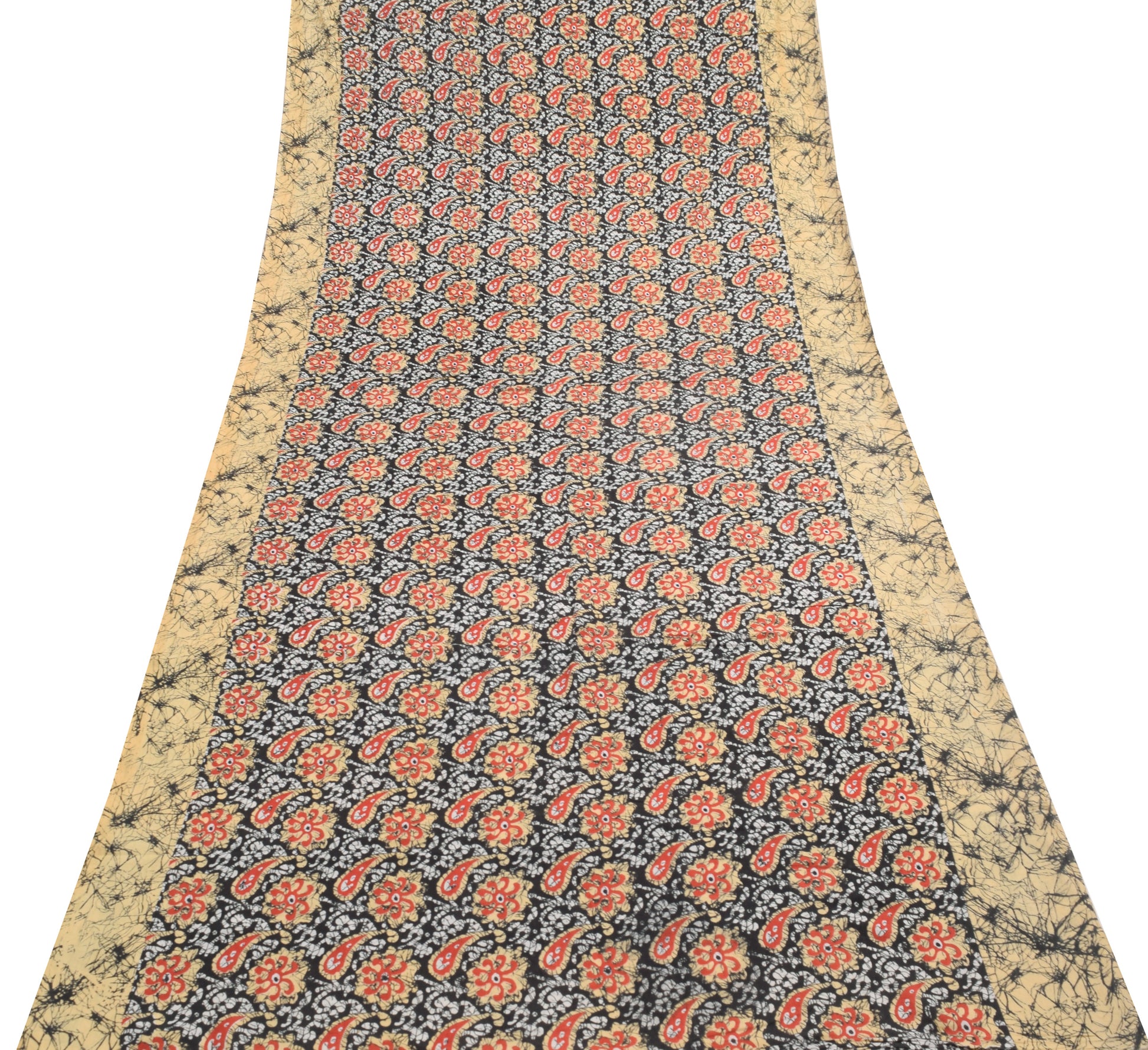Sushila Vintage Saree 100% Pure Cotton Black Batik Printed Soft Craft Fabric