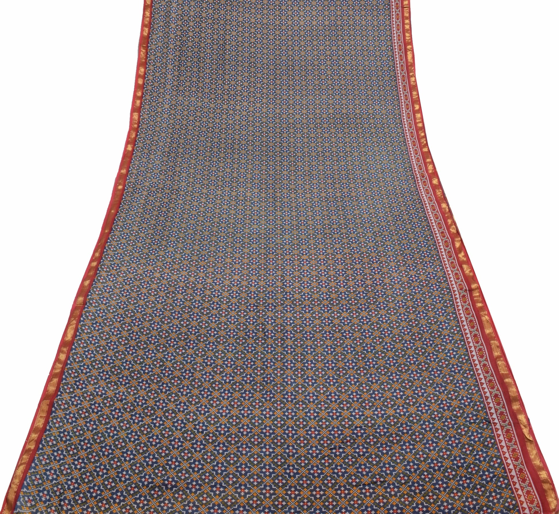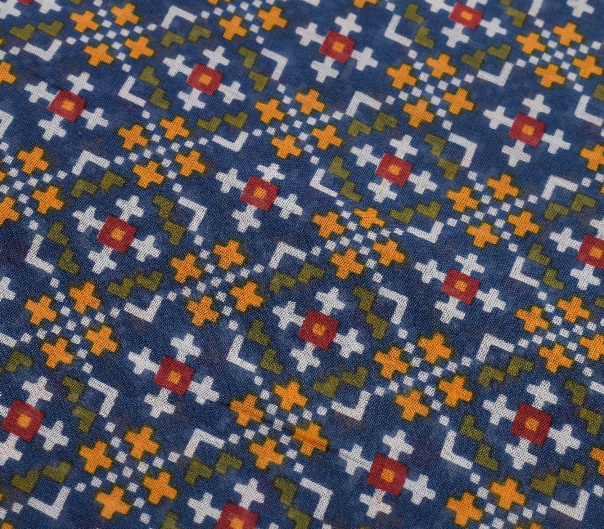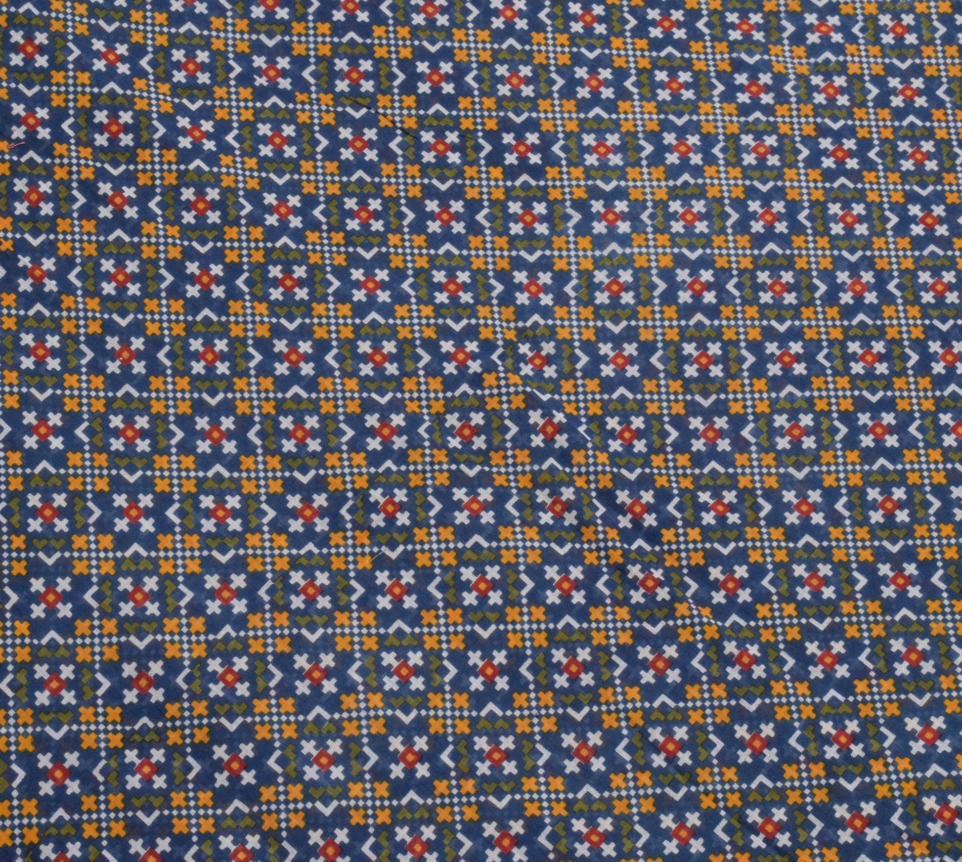 Sushila Vintage Saree 100%Pure Cotton Blue Geometrical Printed Soft Craft Fabric