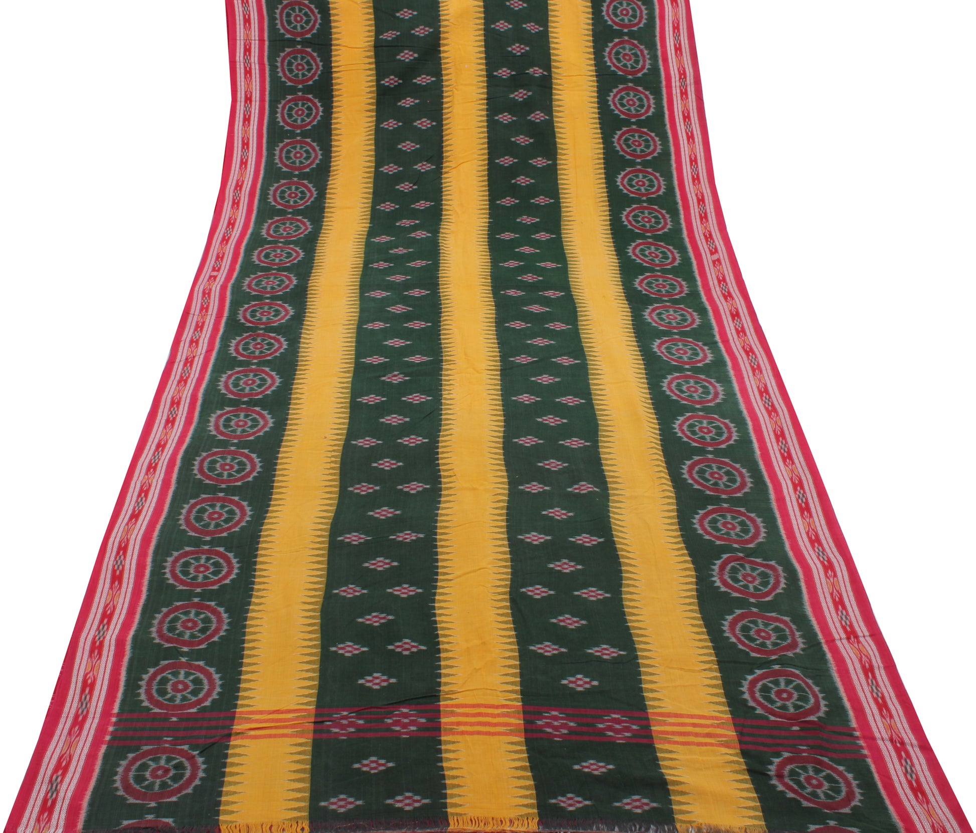 Sushila Vintage Saree 100% Pure Cotton Hand Woven Ikat Patola Sari Craft Fabric