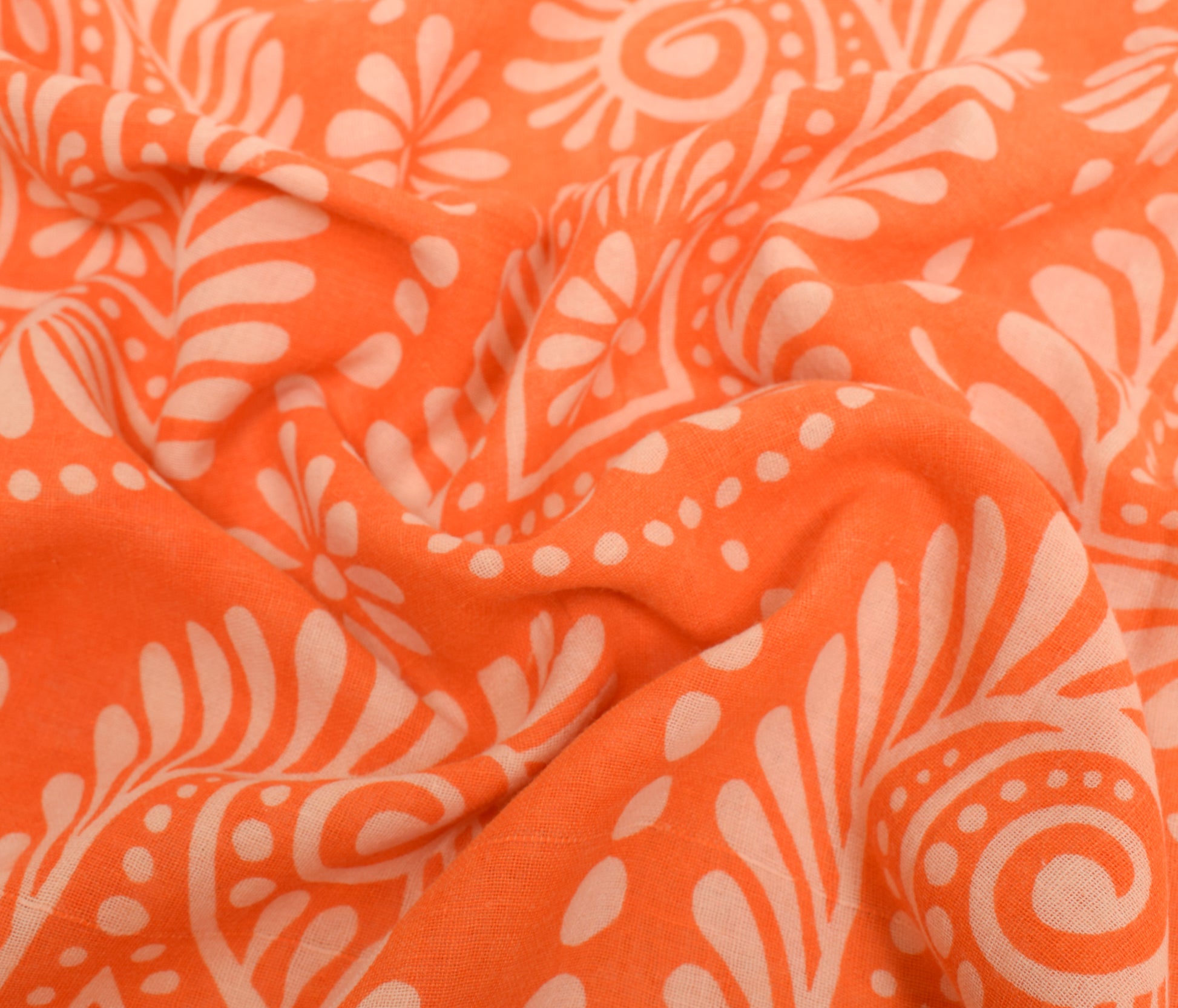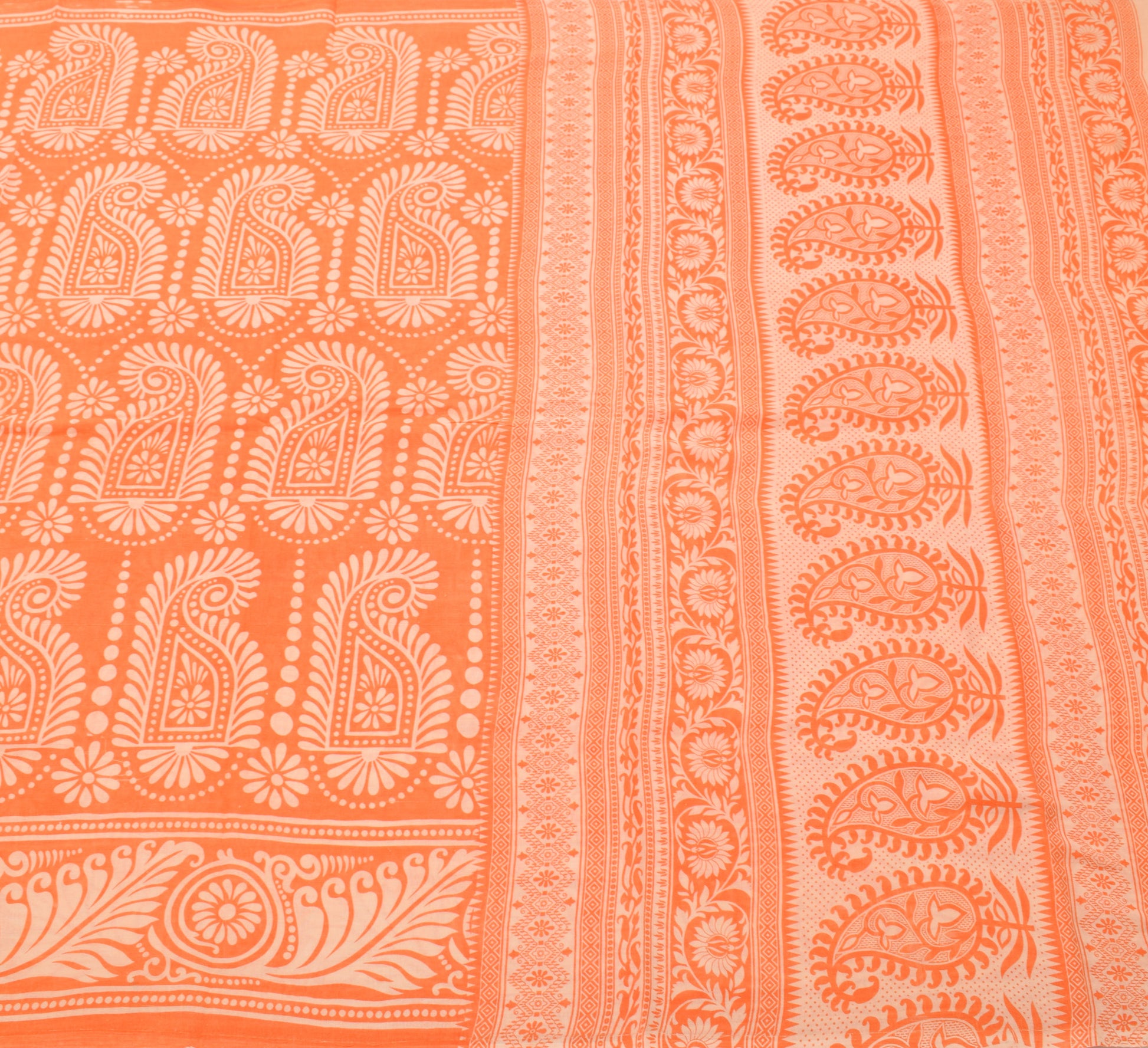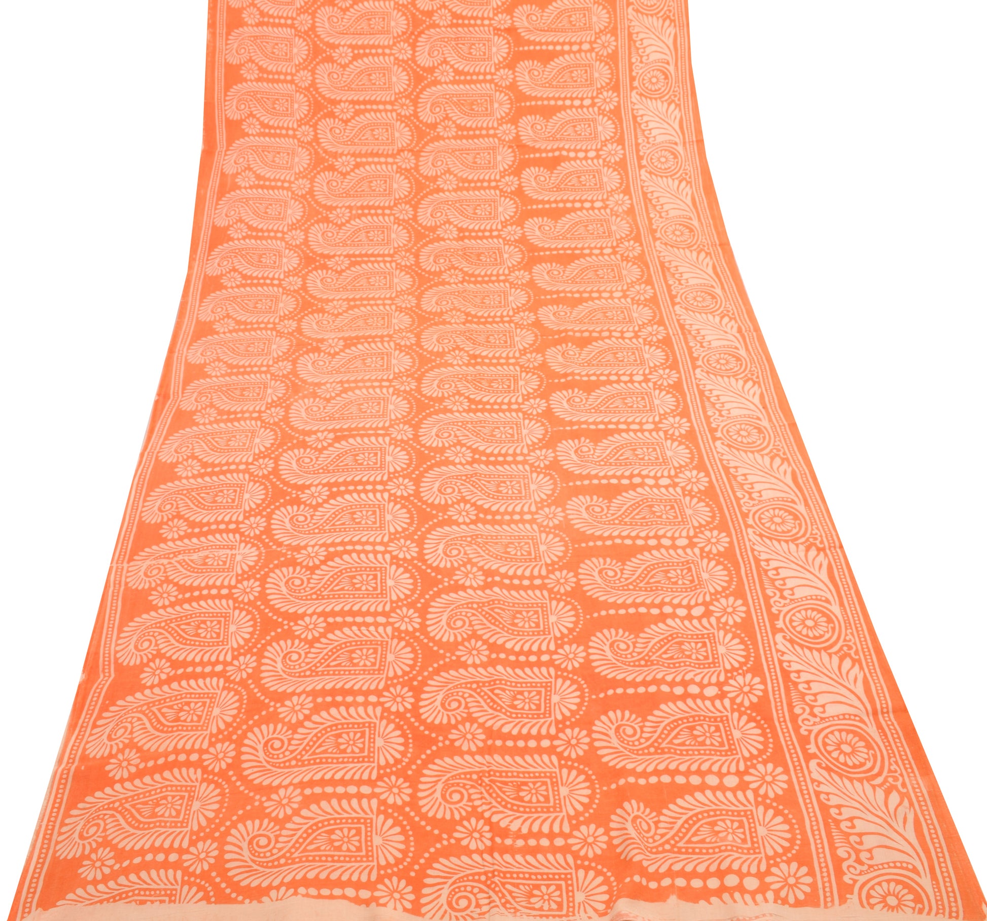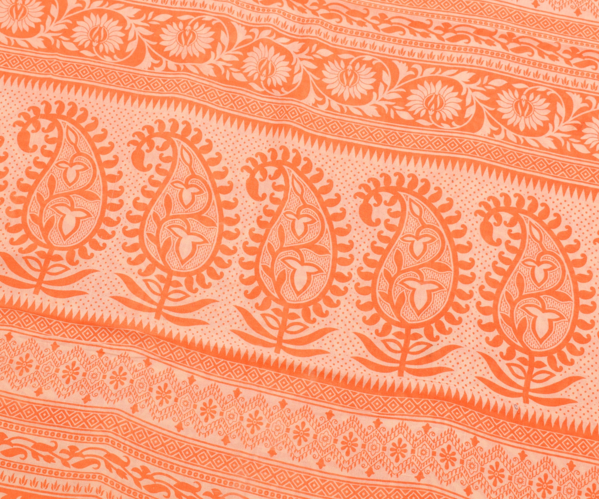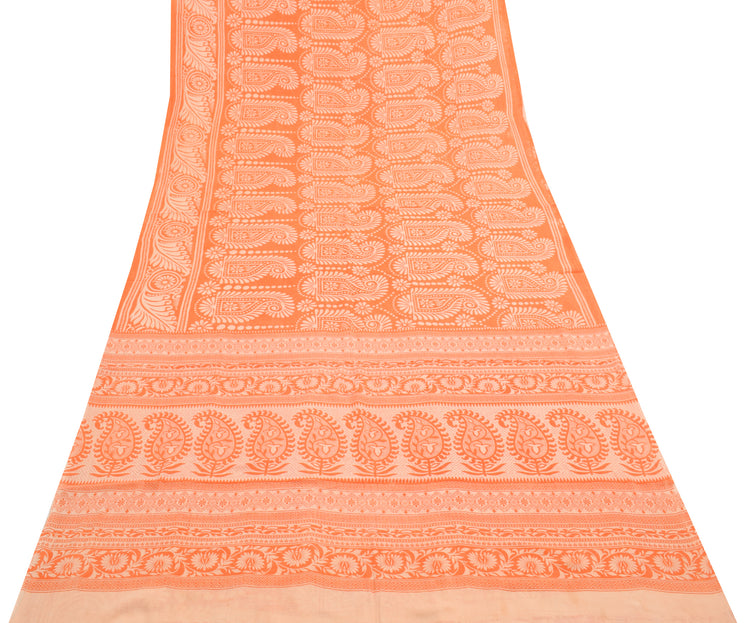 Sushila Vintage Saree 100% Pure Cotton Printed Orange Paisley Soft Craft Fabric