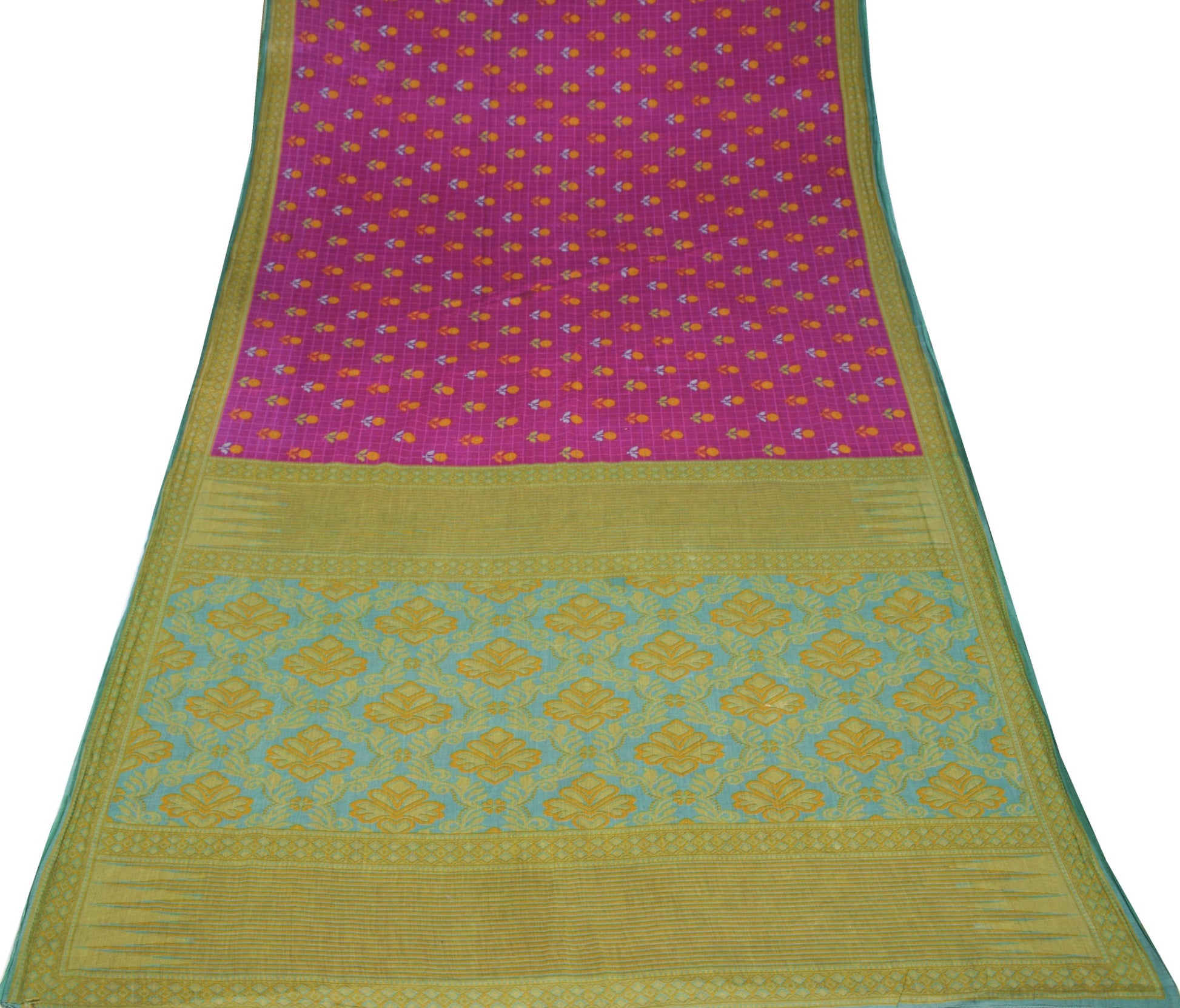 Sushila Vintage Saree 100% Pure Cotton Printed Purple Floral Soft Craft Fabric