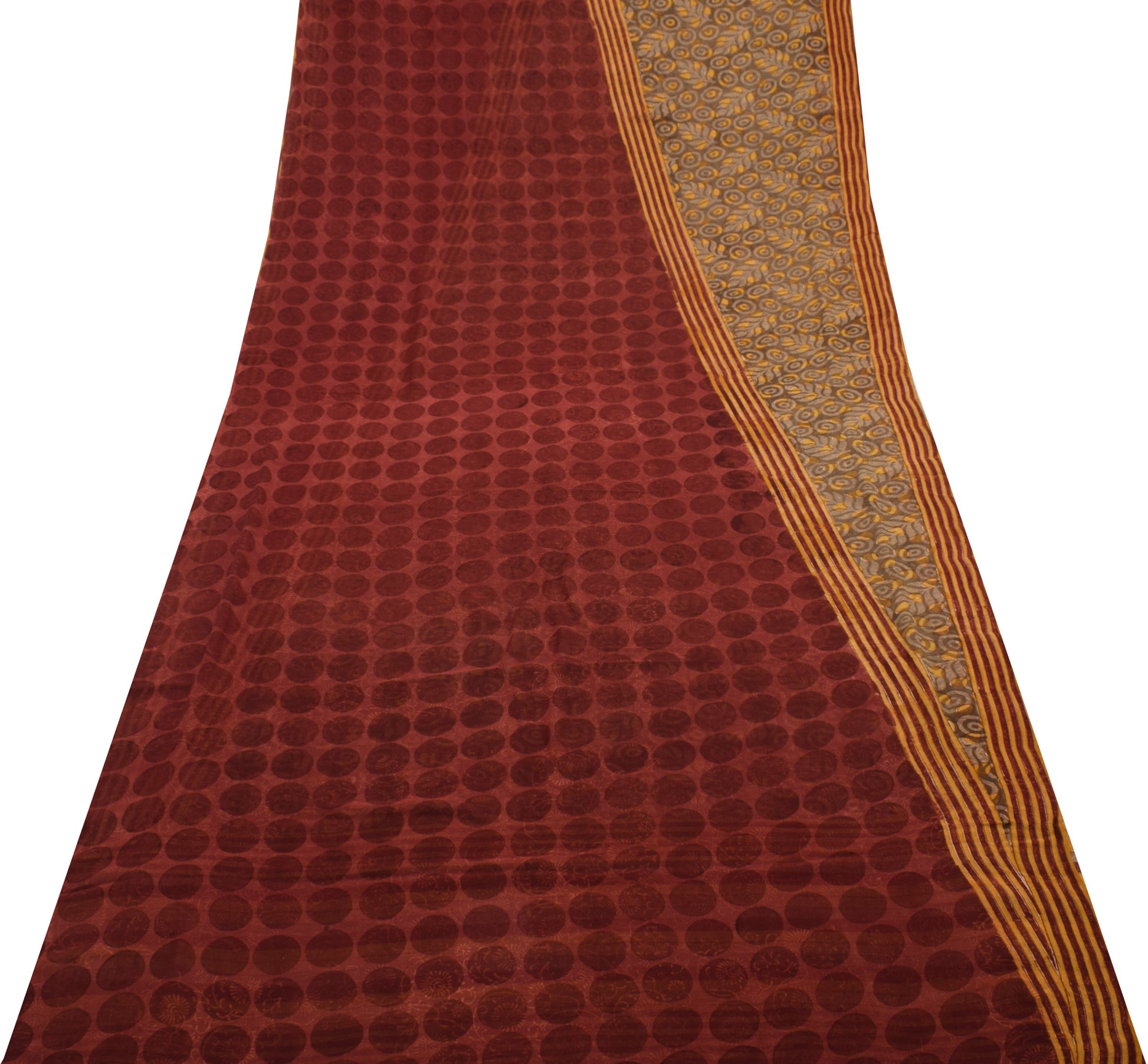 Sushila Vintage Saree 100%Pure Georgette Silk Floral & Polk Printed Craft Fabric