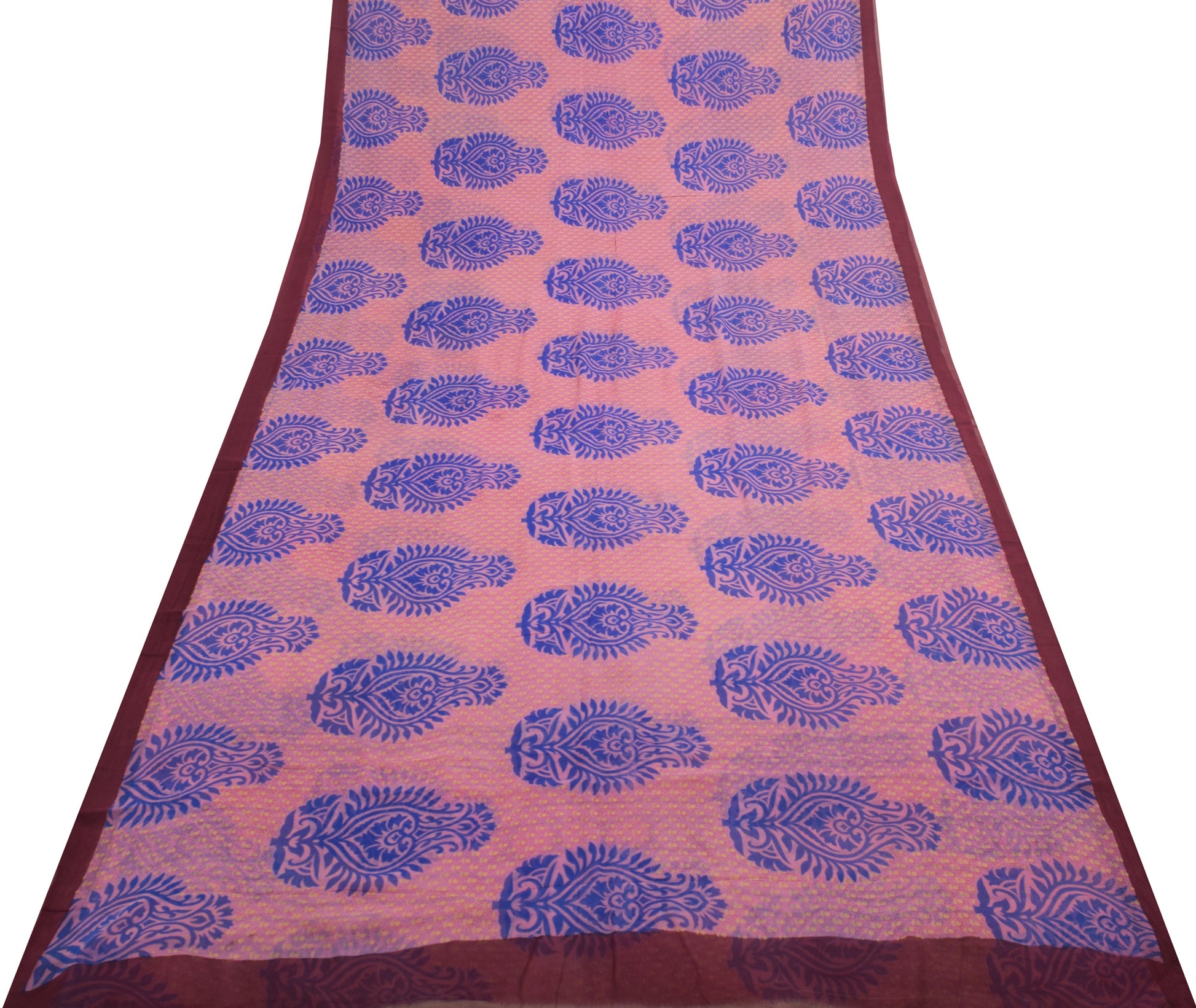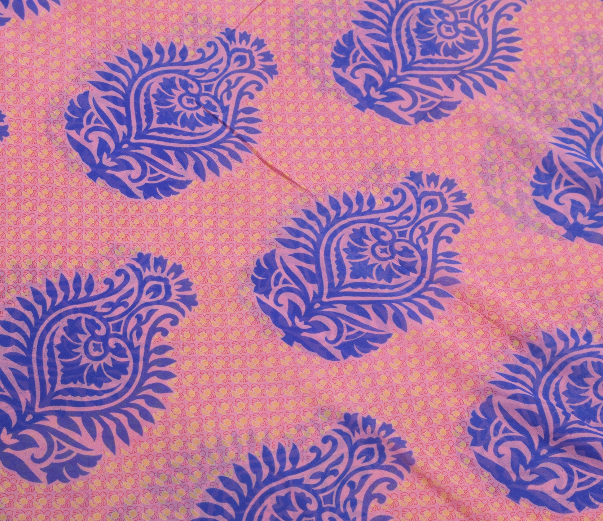 Sushila Vintage Saree 100% Pure Georgette Silk Pink Floral Printed Craft Fabric
