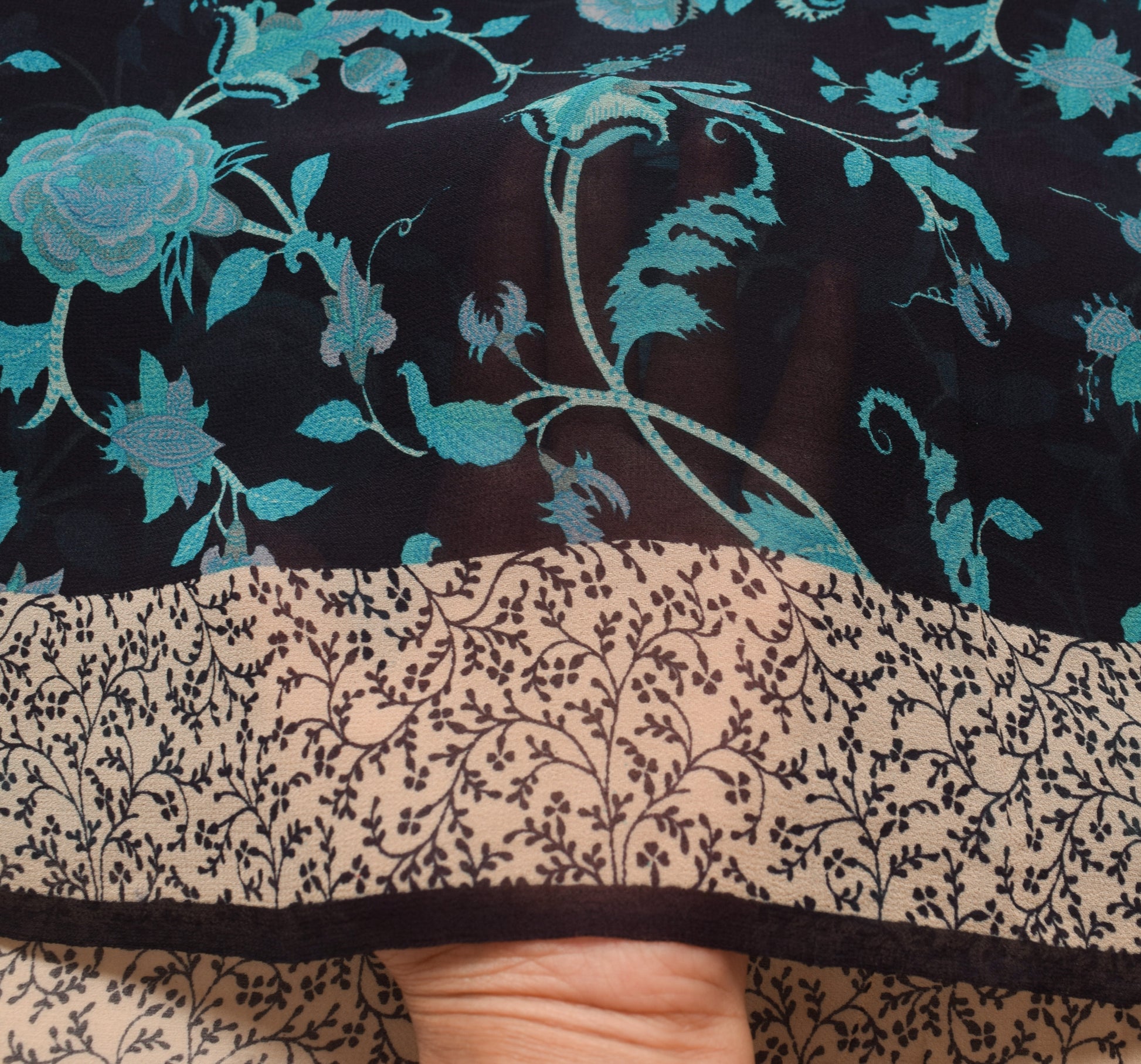 Sushila Vintage Saree 100% Pure Georgette Silk Printed Black Floral Craft Fabric