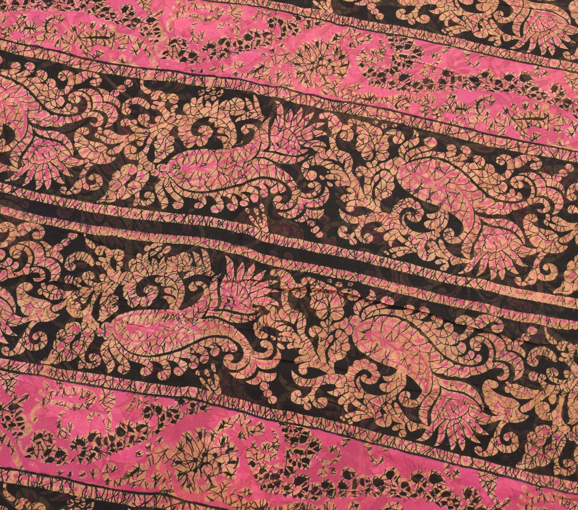 Sushila Vintage Saree 100% Pure Georgette Silk Printed Black Indian Craft Fabric
