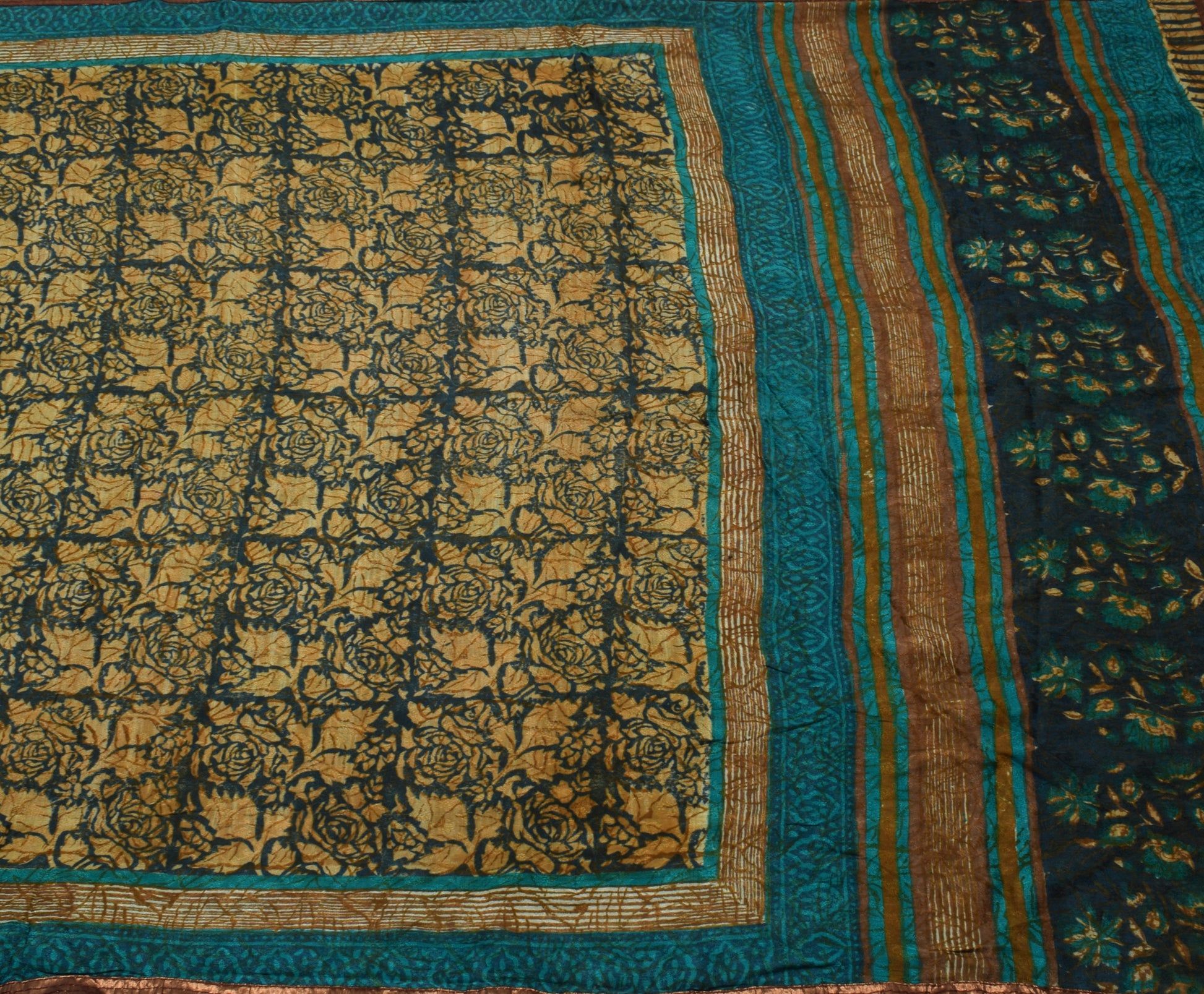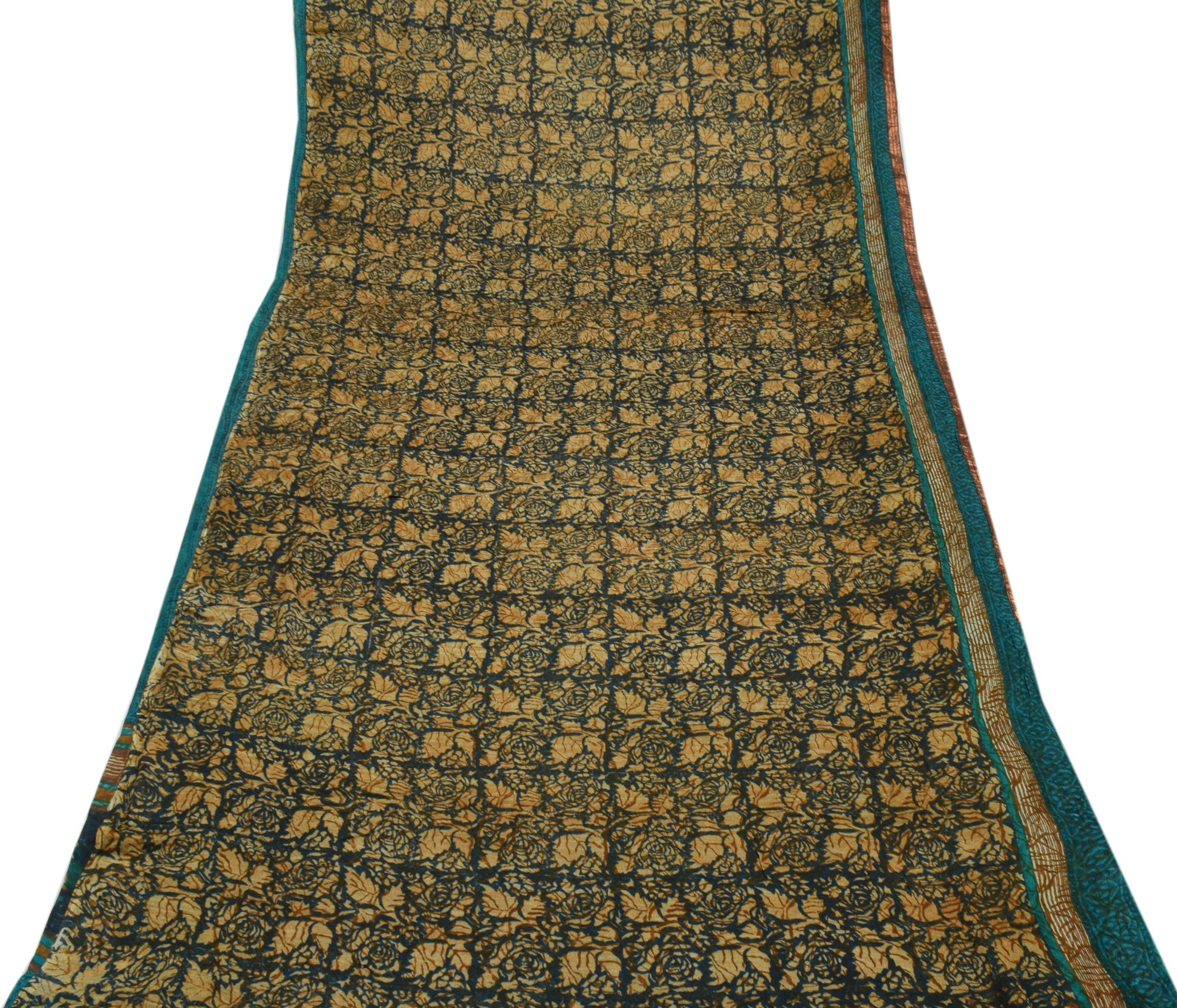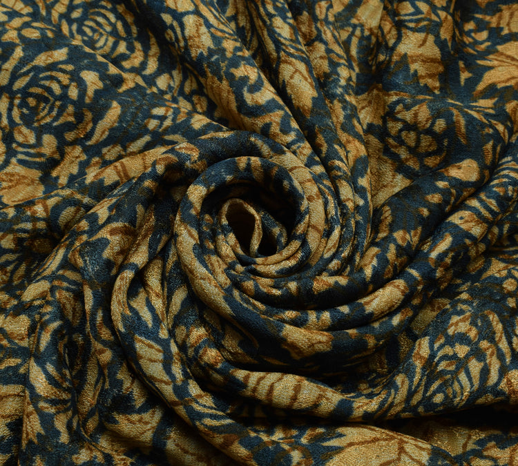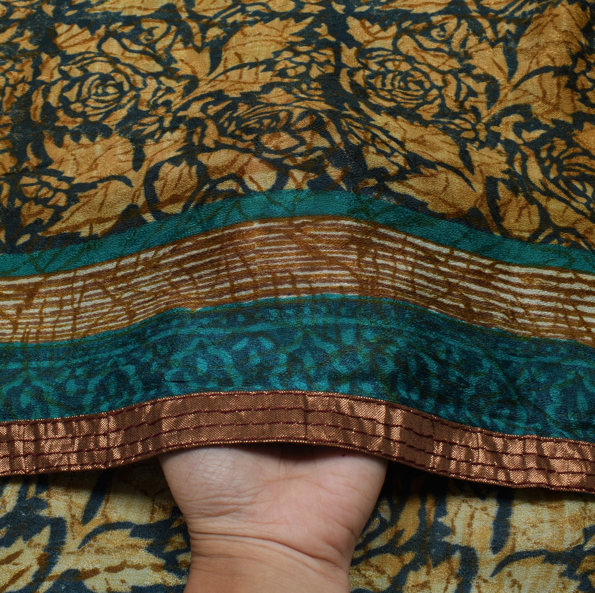 Sushila Vintage Saree 100% Pure Georgette Silk Printed Floral 5 YD Craft Fabric