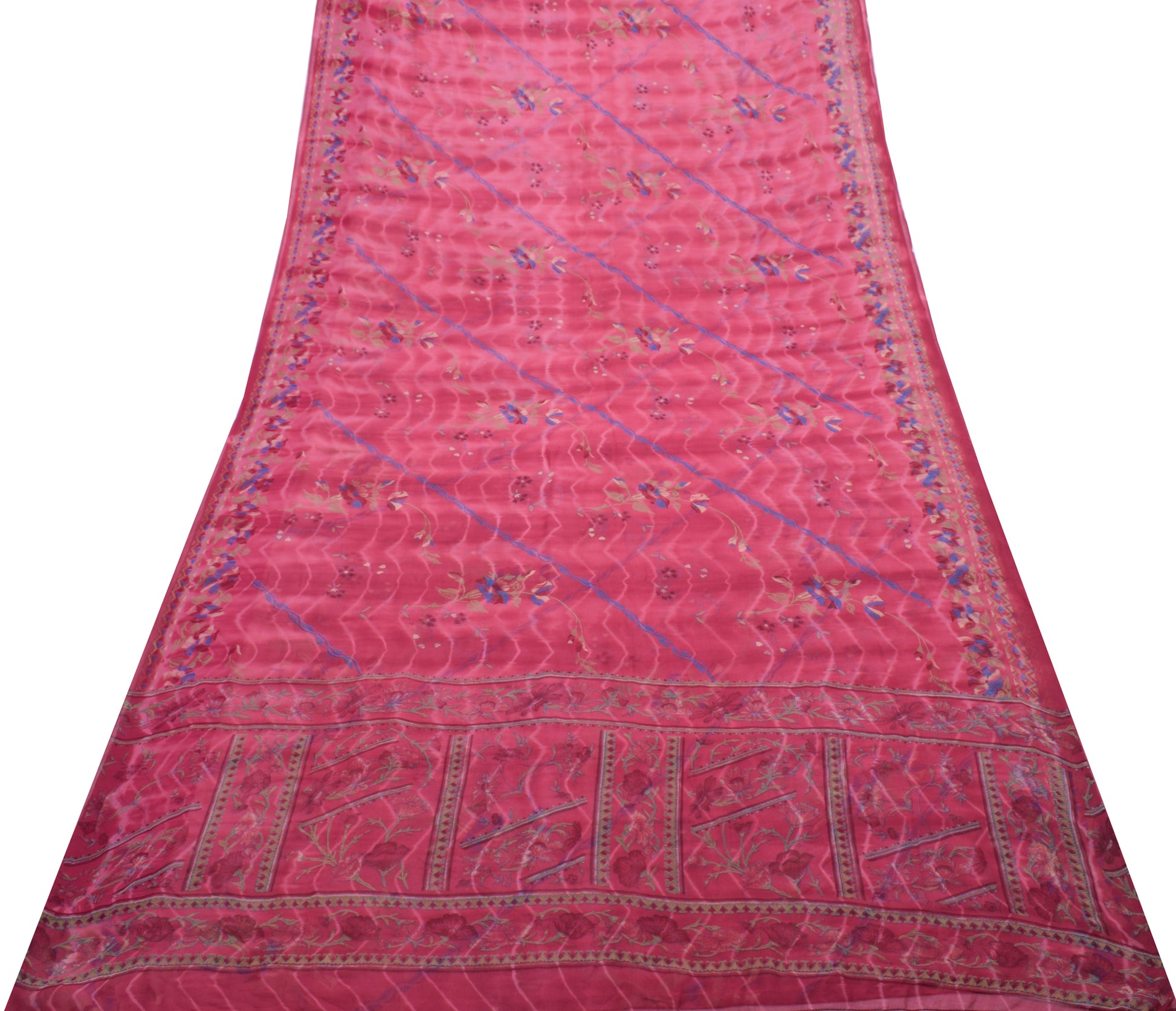 Sushila Vintage Saree 100% Pure Georgette Silk Printed Floral 5 YD Craft Fabric