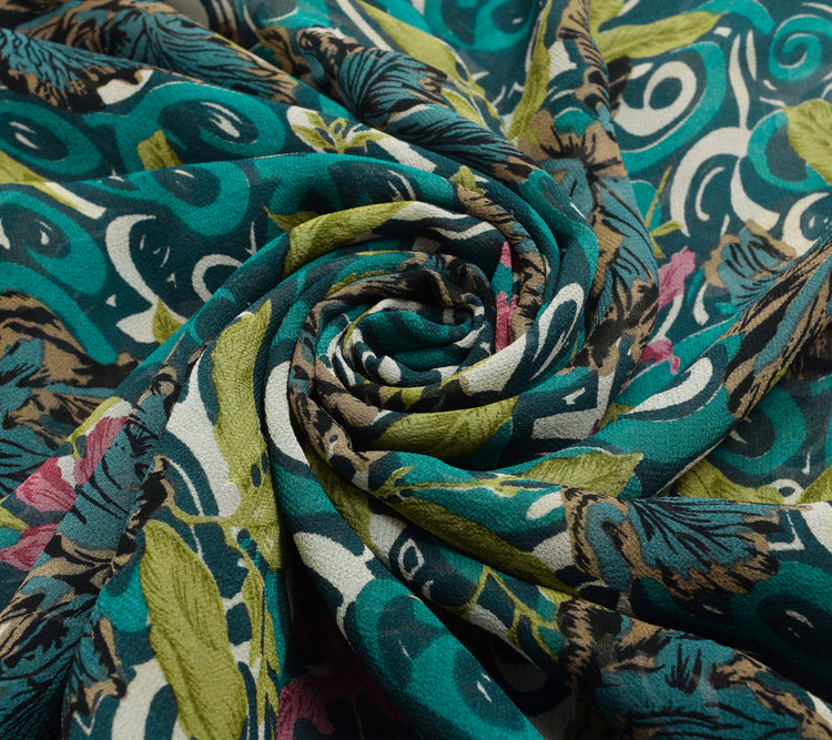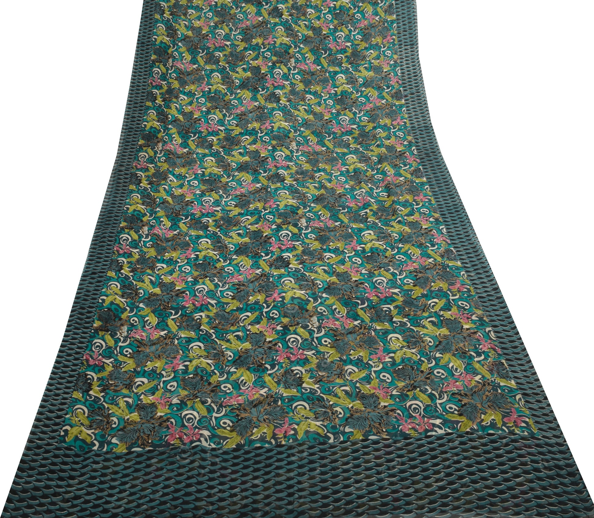 Sushila Vintage Saree 100% Pure Georgette Silk Printed Floral 5 YD Craft Fabric