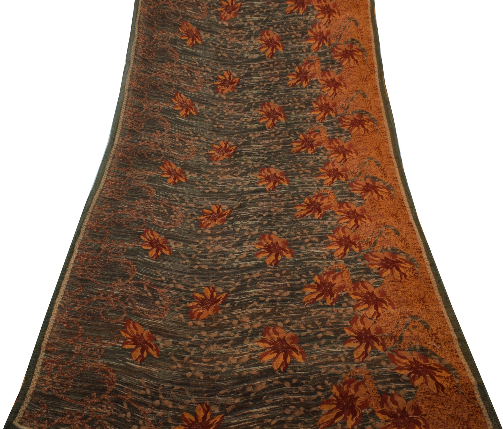 Sushila Vintage Saree 100% Pure Georgette Silk Printed Floral 5 YD Craft Fabric