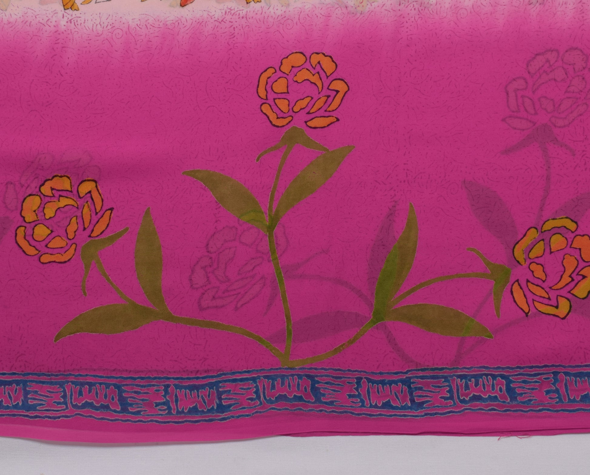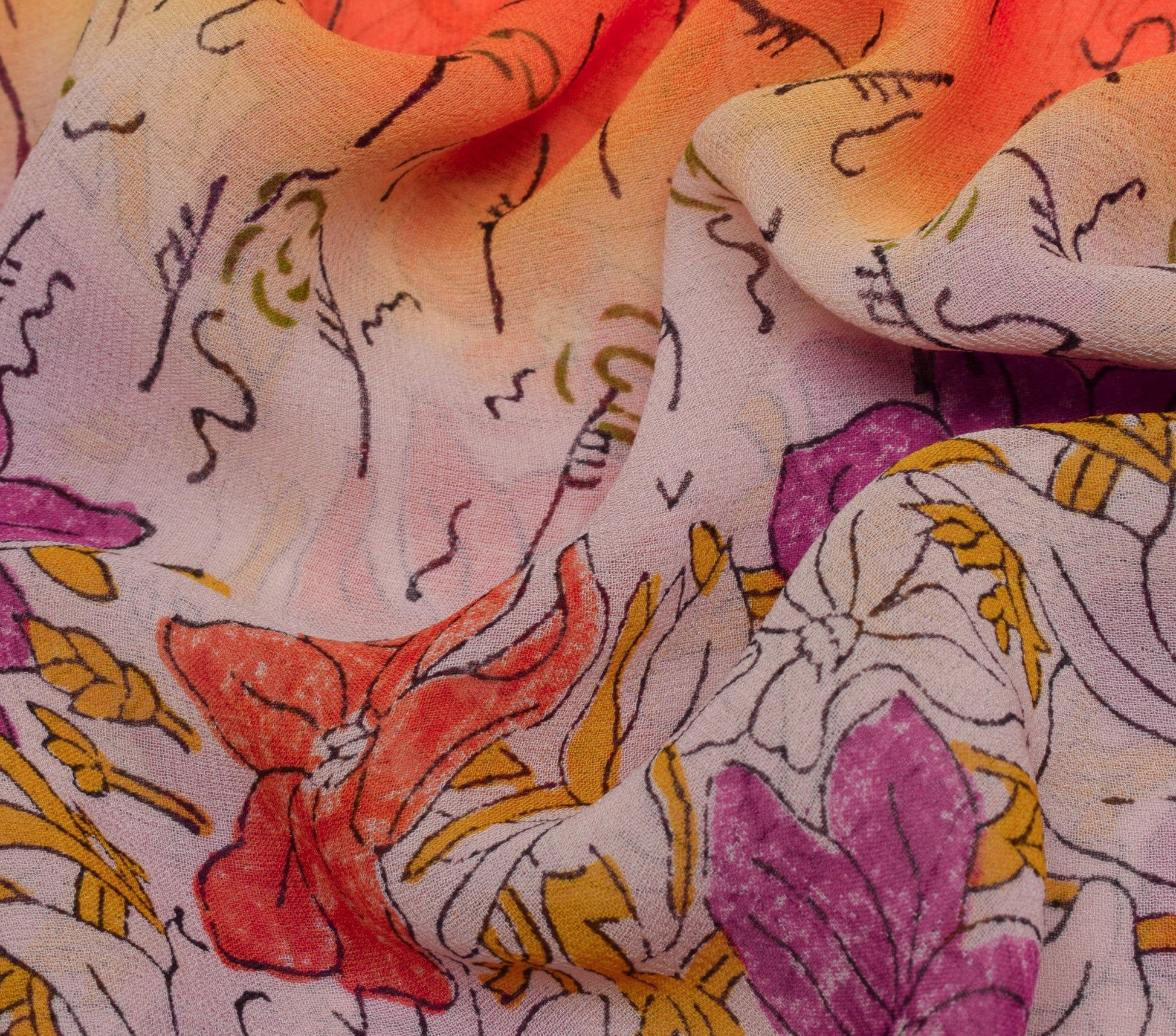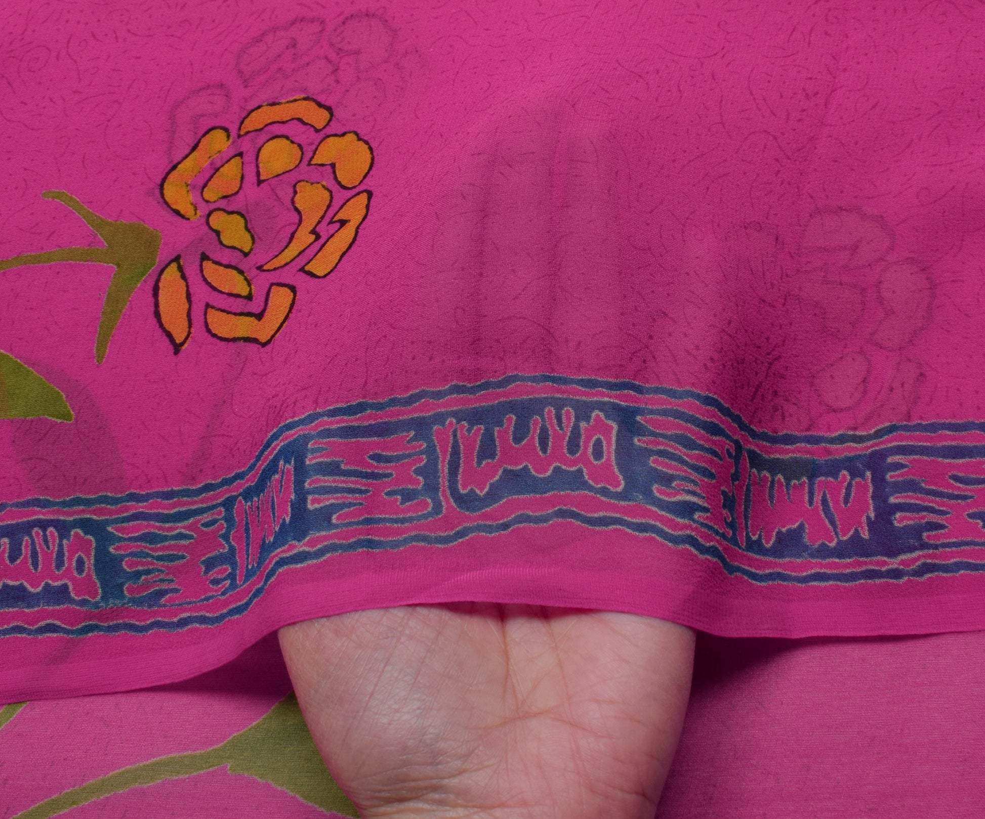 Sushila Vintage Saree 100% Pure Georgette Silk Printed Floral 5 YD Craft Fabric