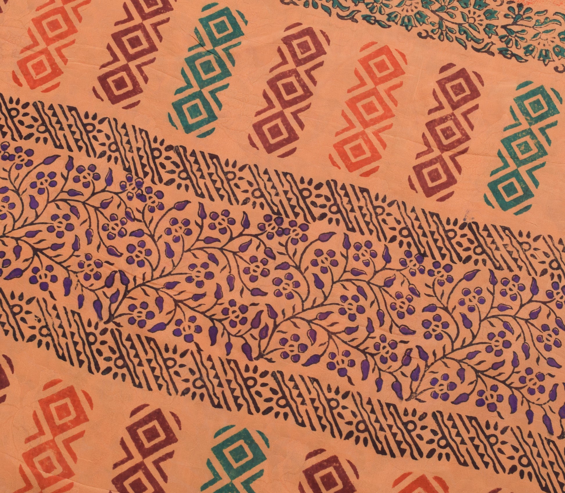 Sushila Vintage Saree 100% Pure Georgette Silk Printed Floral Craft Fabric