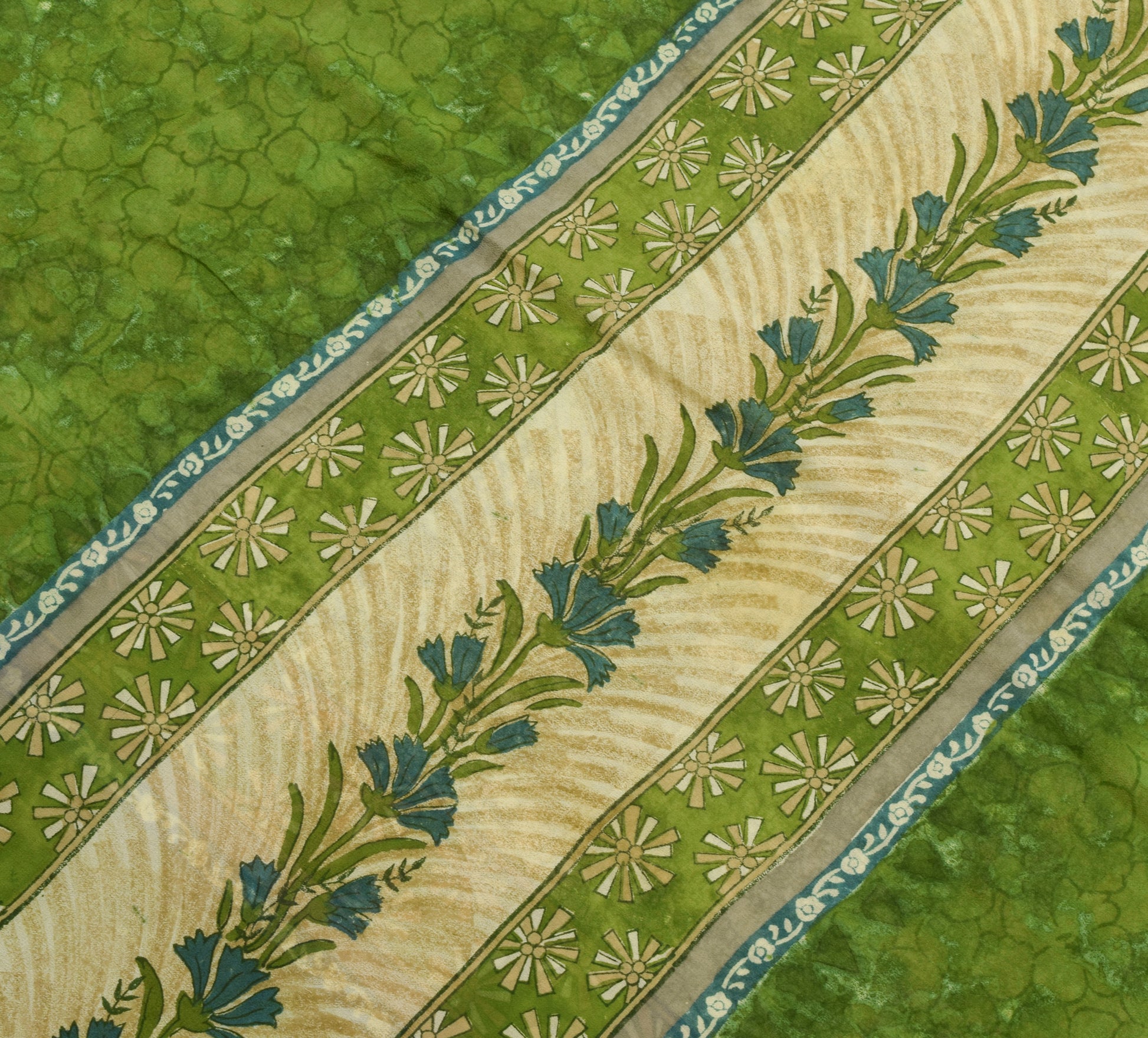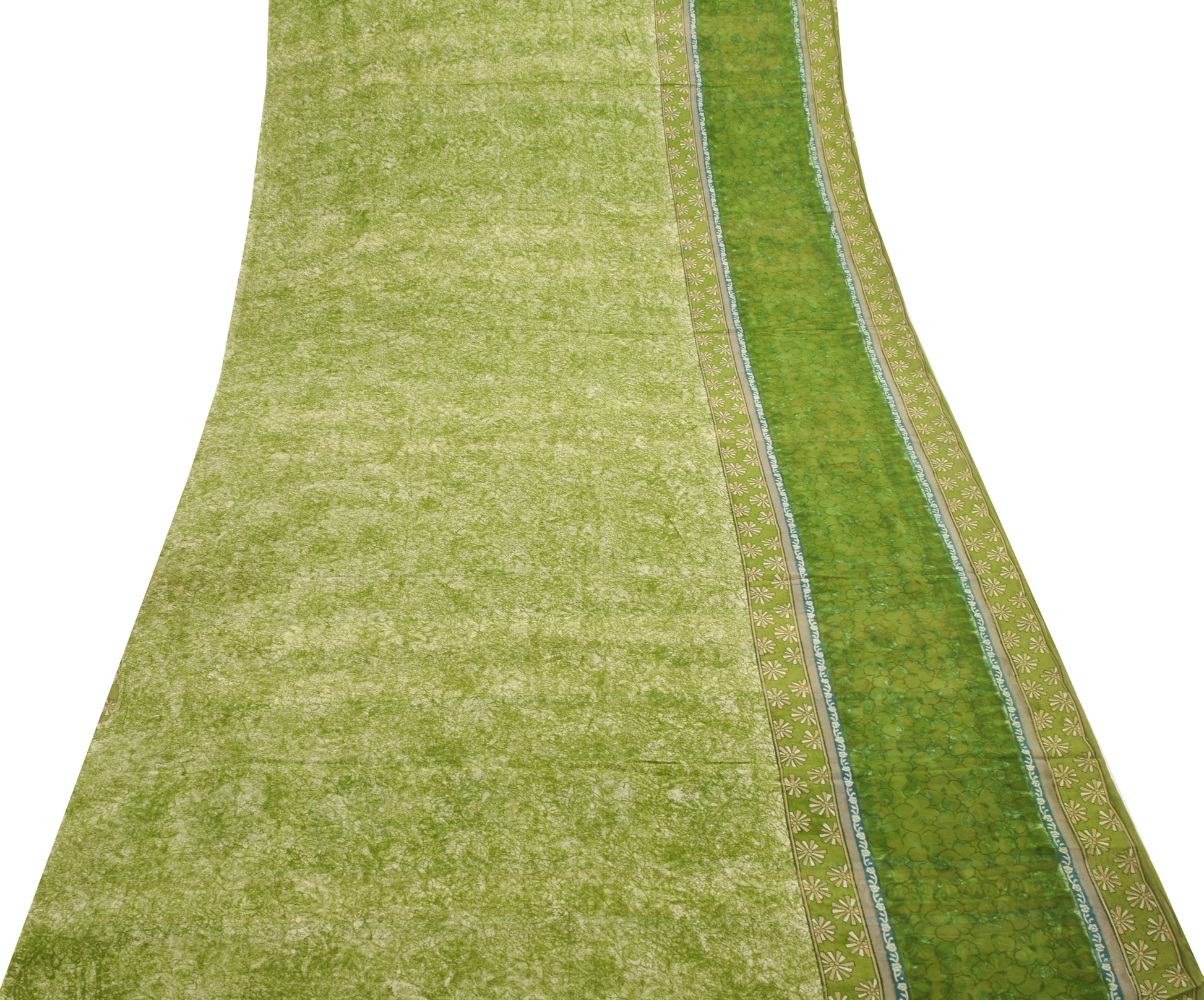 Sushila Vintage Saree 100% Pure Georgette Silk Printed Floral Green Craft Fabric