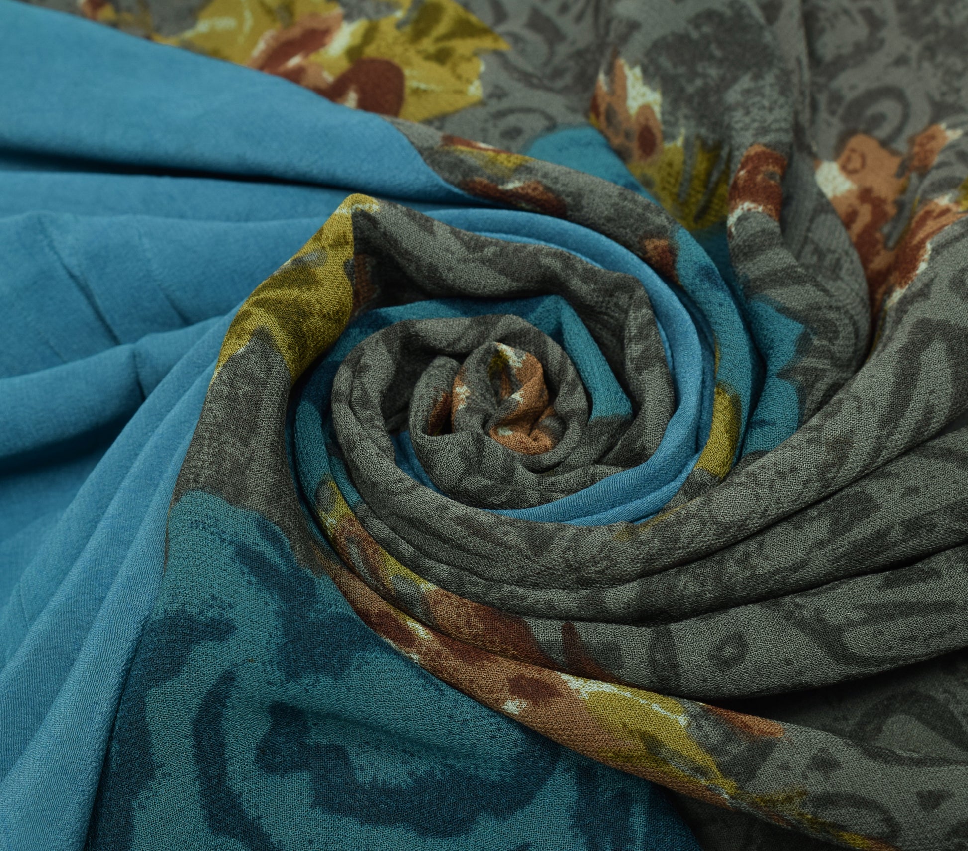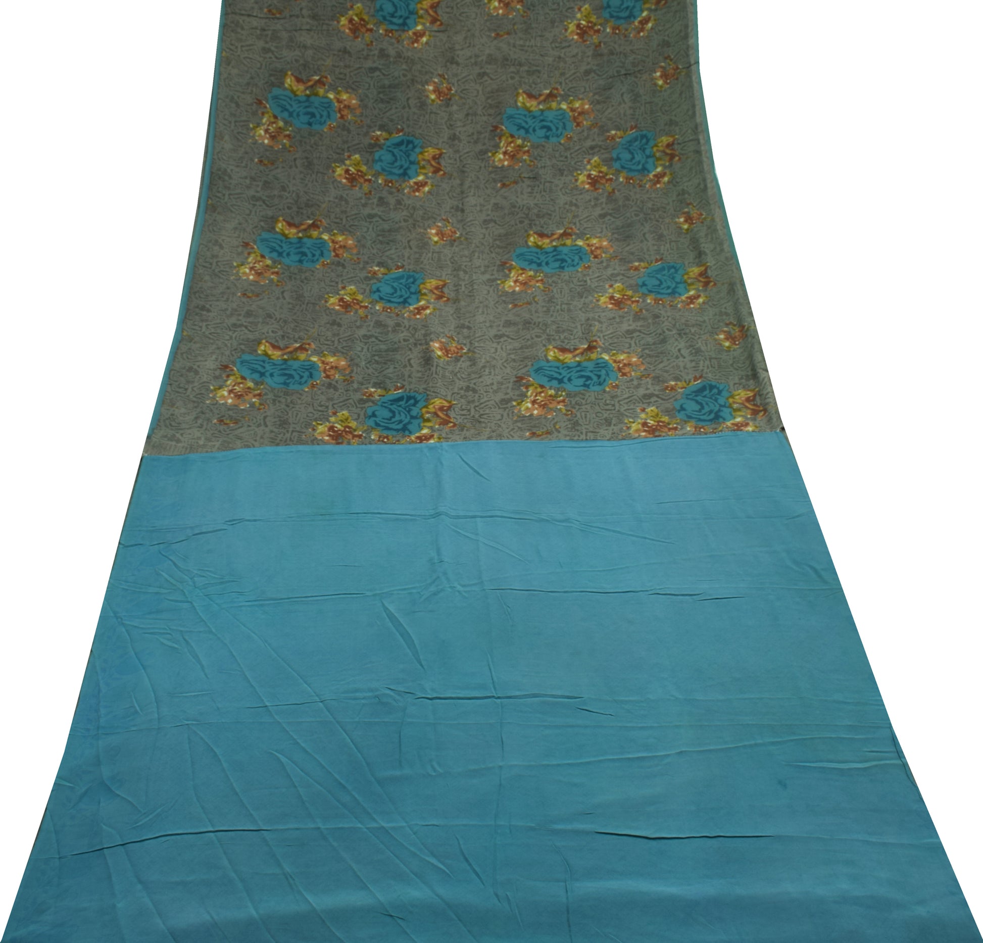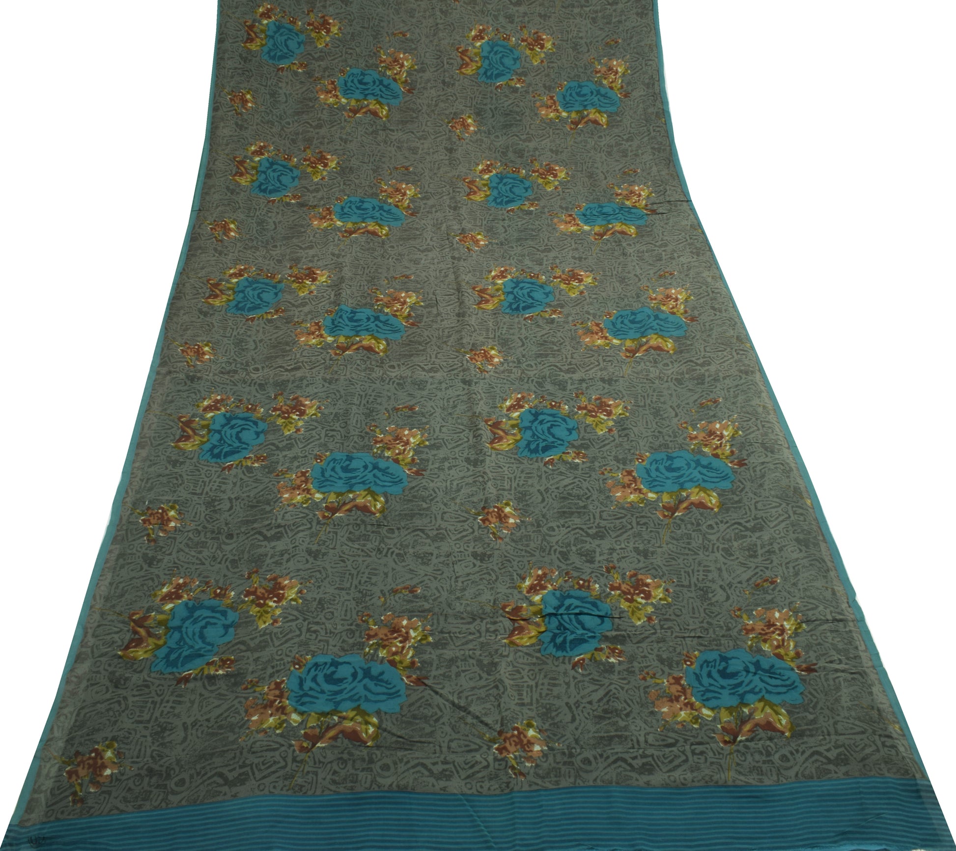 Sushila Vintage Saree 100% Pure Georgette Silk Printed Floral with Blouse Fabric