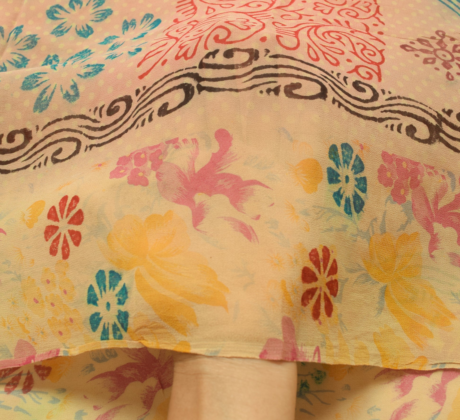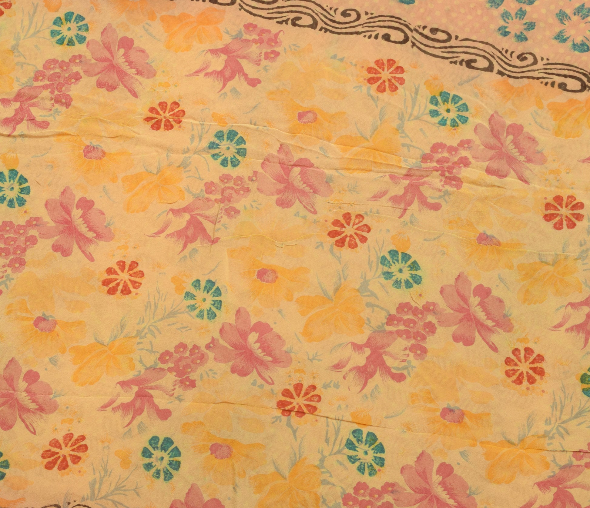 Sushila Vintage Saree 100%Pure Georgette Silk Printed Indian Floral Craft Fabric