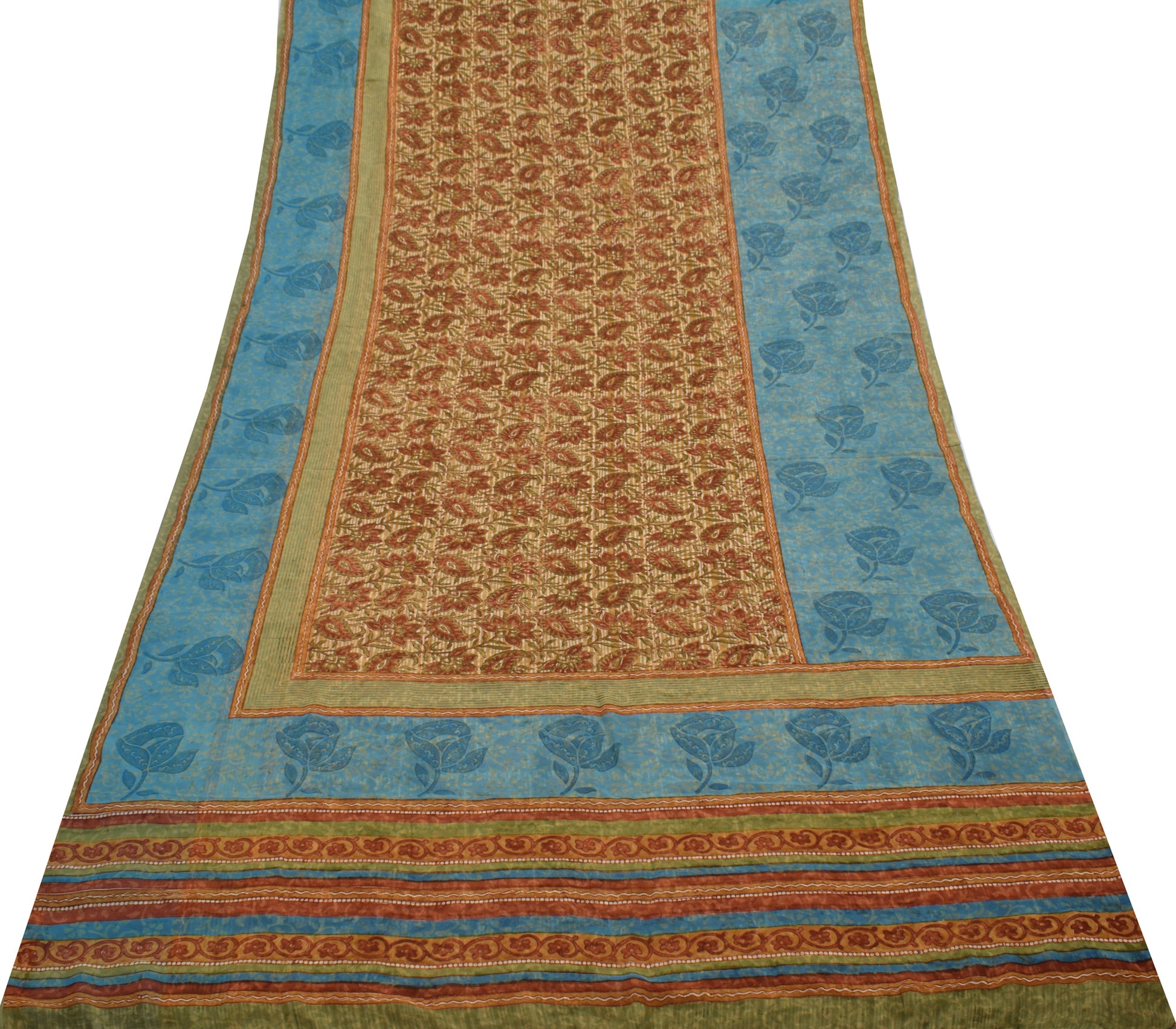 Sushila Vintage Saree 100% Pure Georgette Silk Printed Paisley 5 YD Craft Fabric