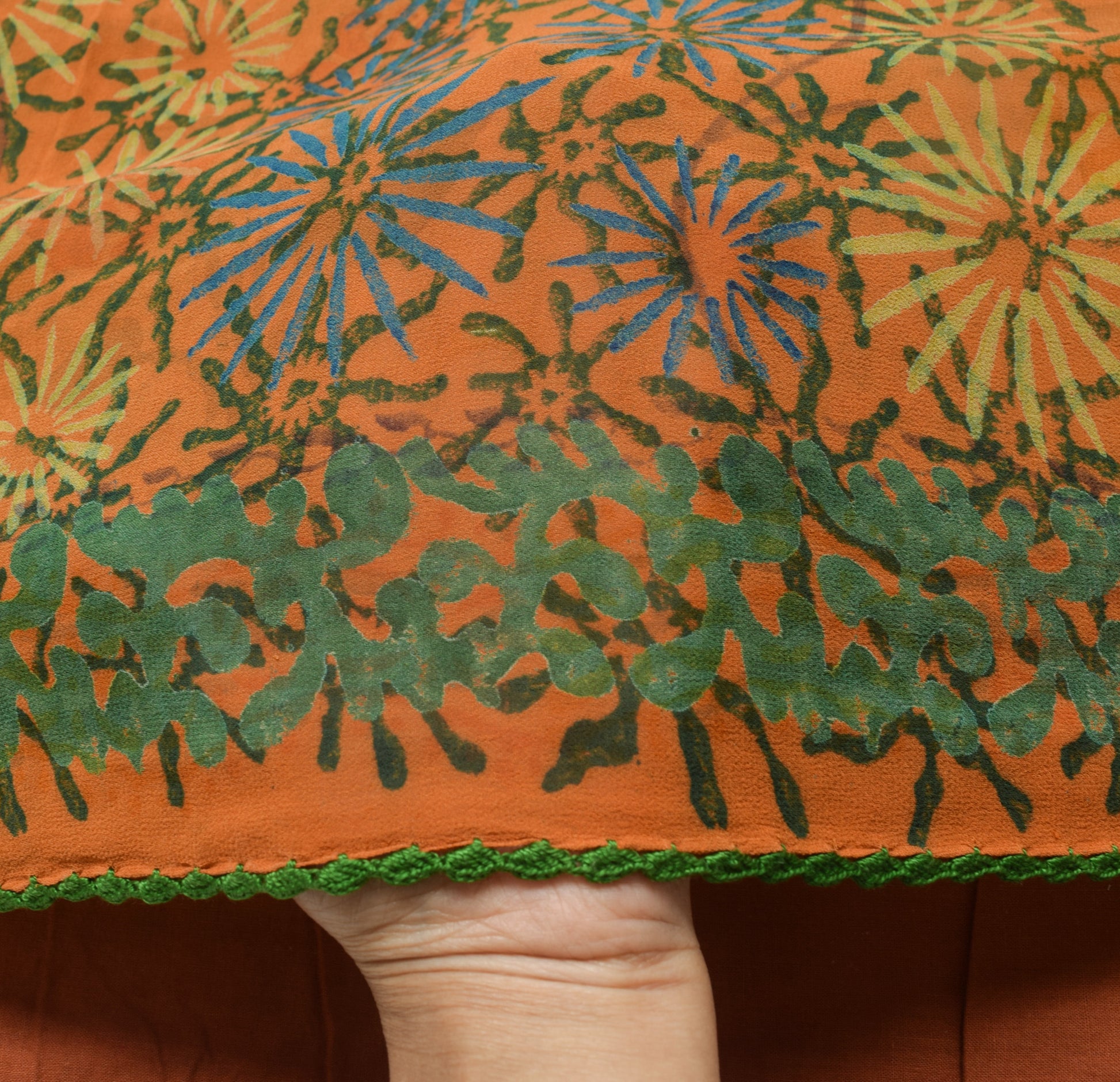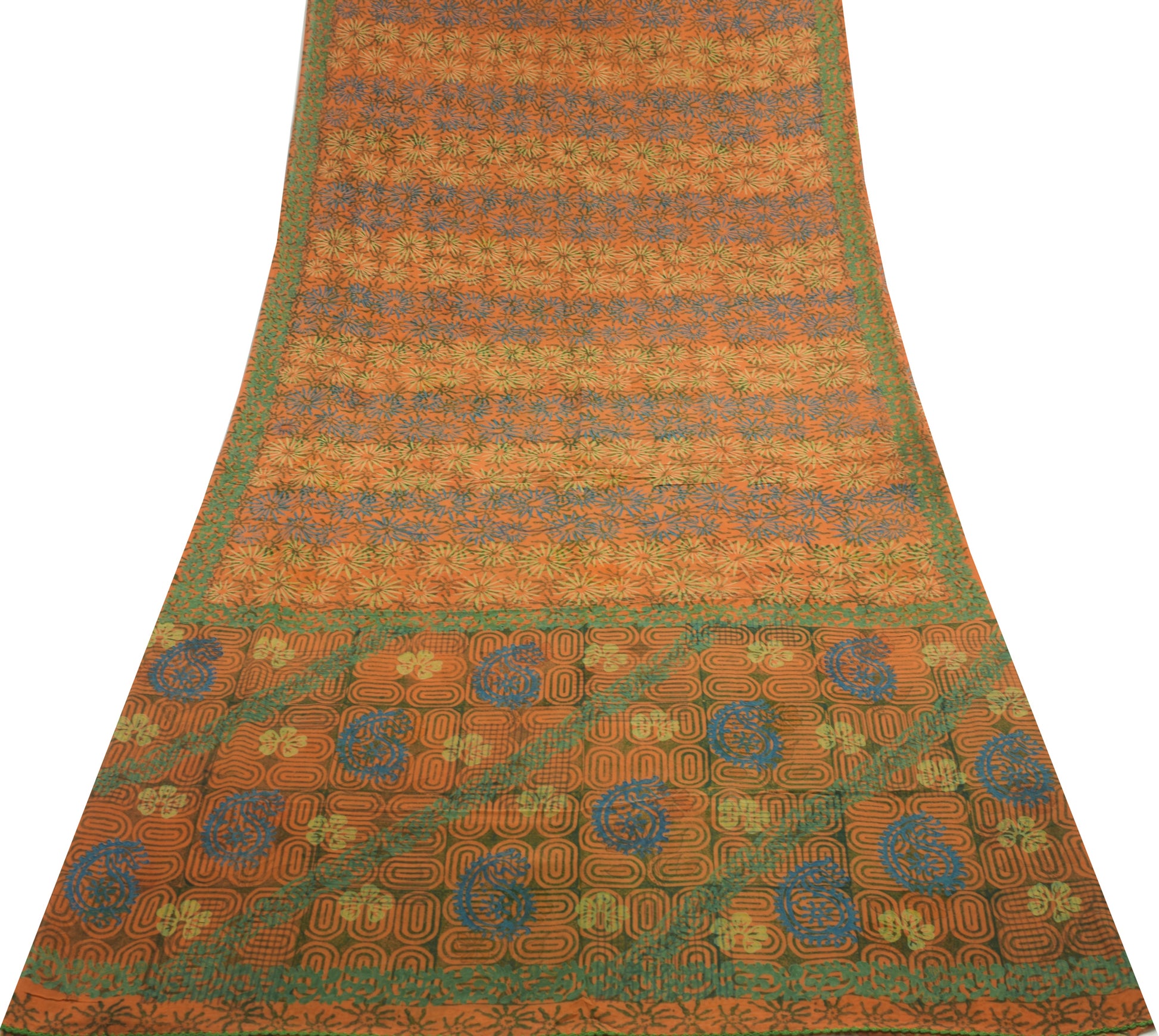 Sushila Vintage Saree 100% Pure Georgette Silk Printed Rust Floral Craft Fabric