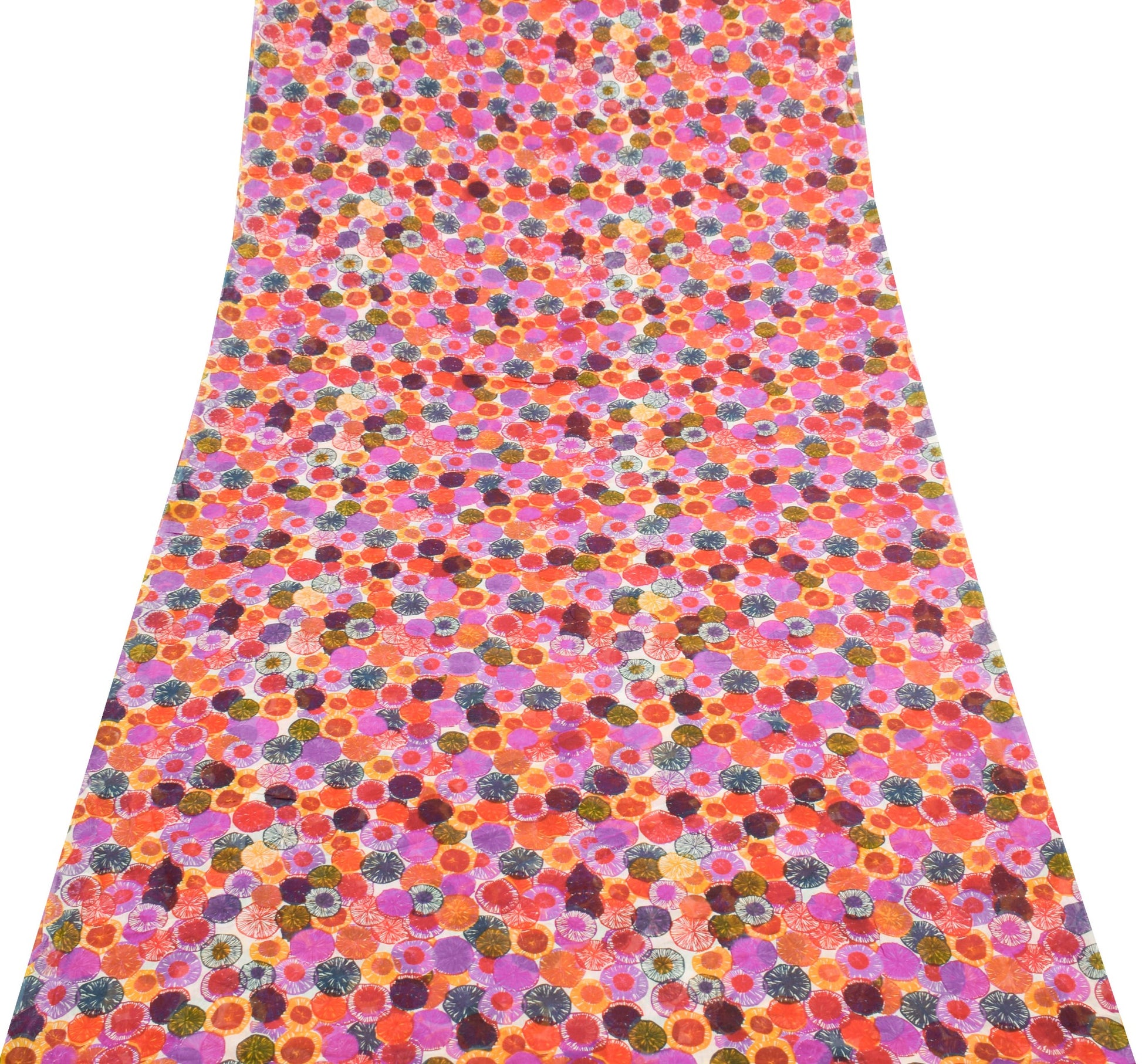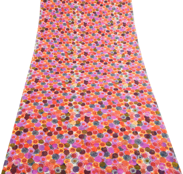 Sushila Vintage Saree 100% Pure Georgette Silk Printed White Dress Craft Fabric