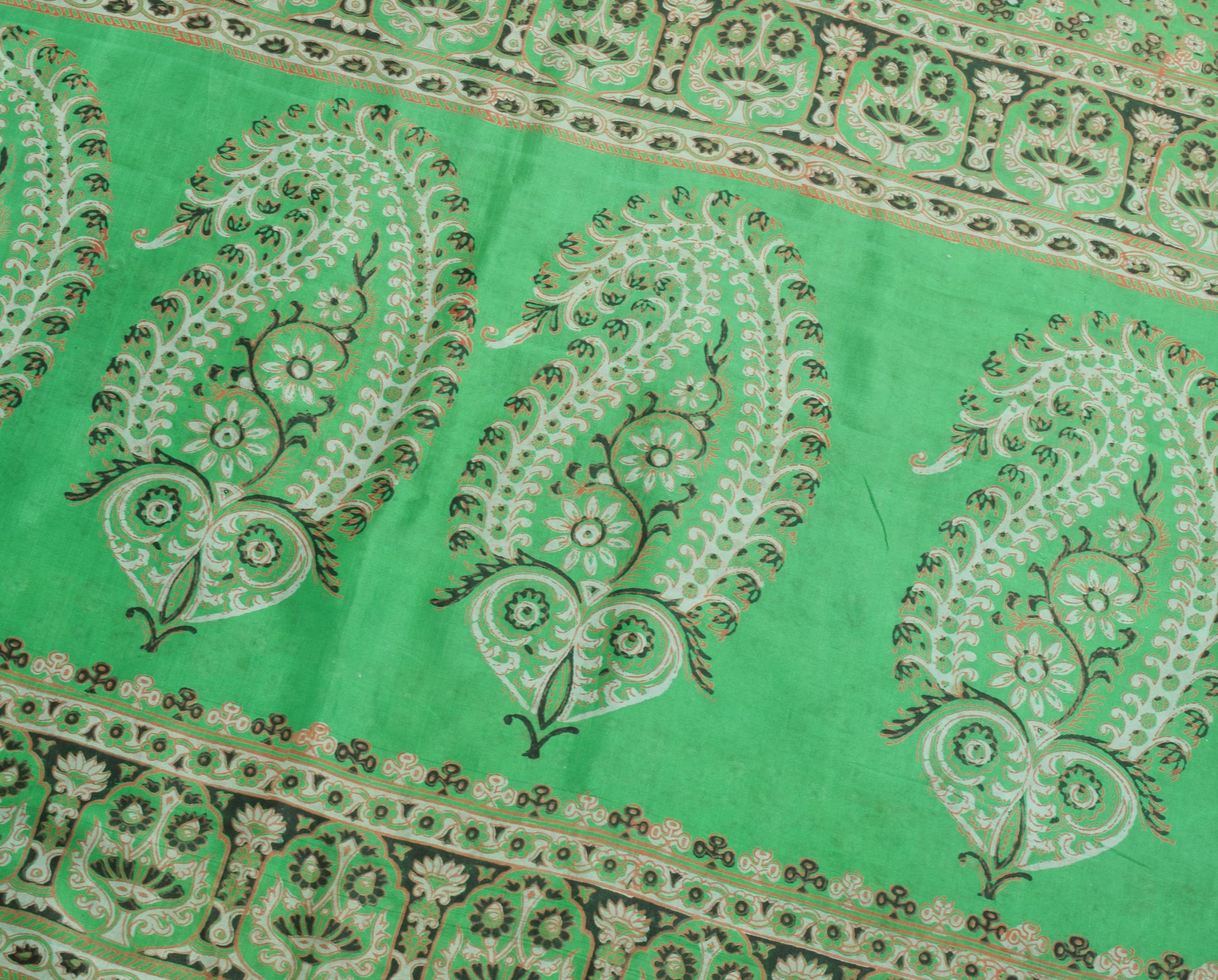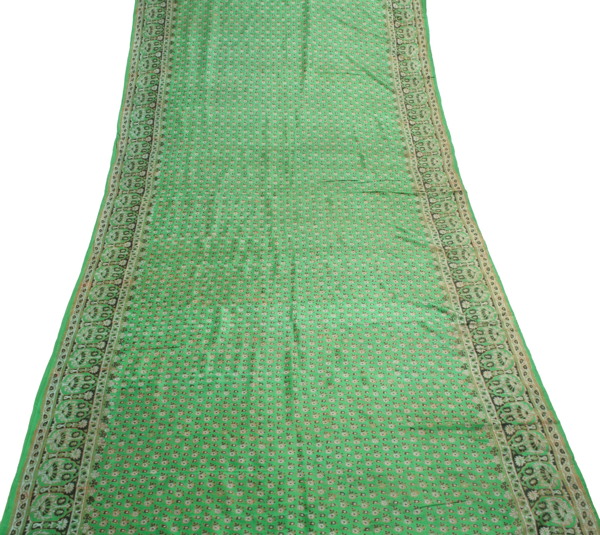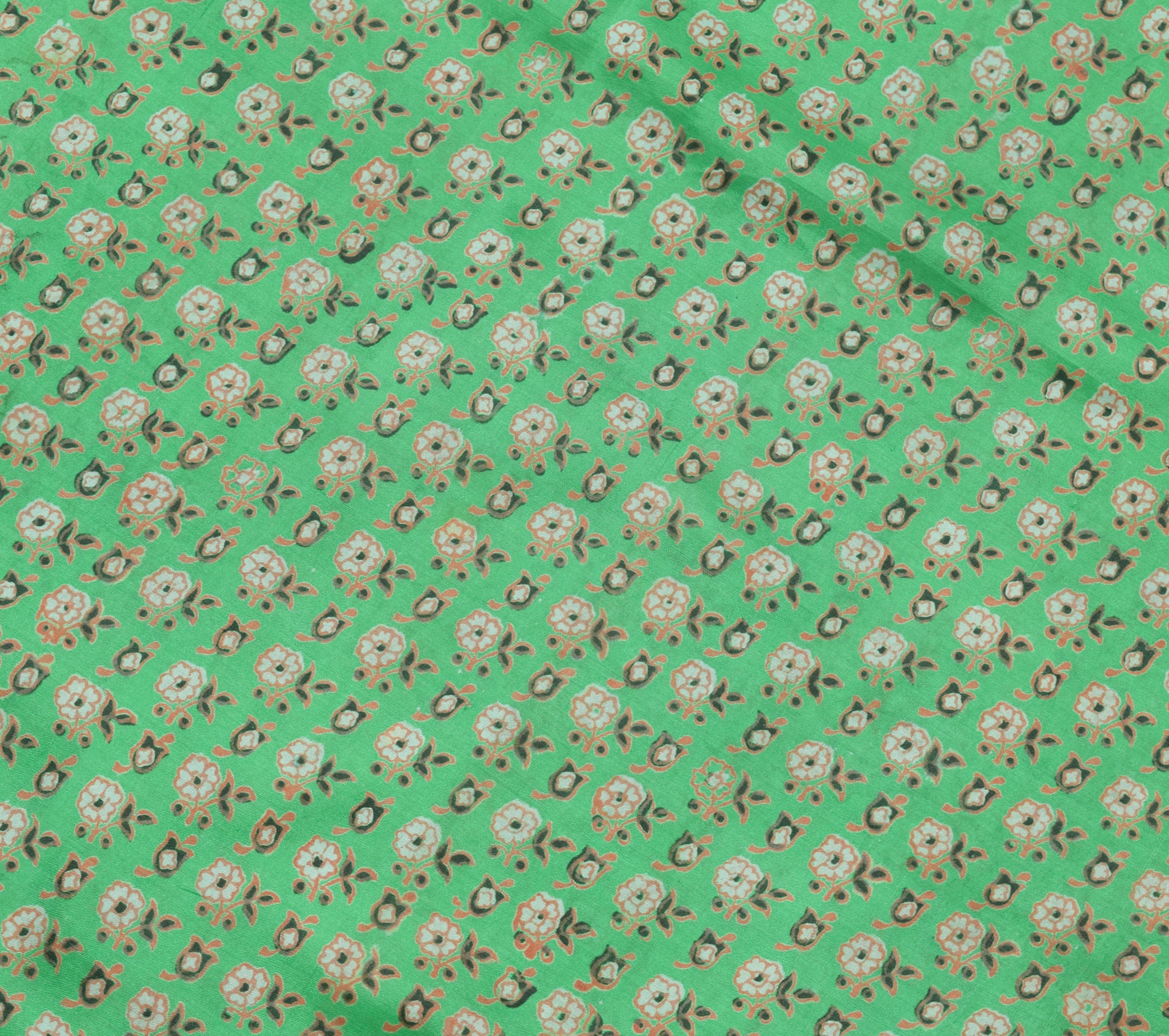 Sushila Vintage Saree 100% Pure Silk Green Floral Printed Soft Craft Fabric