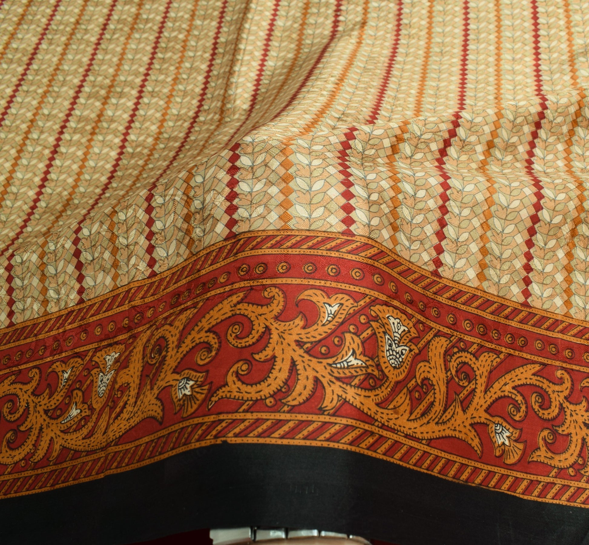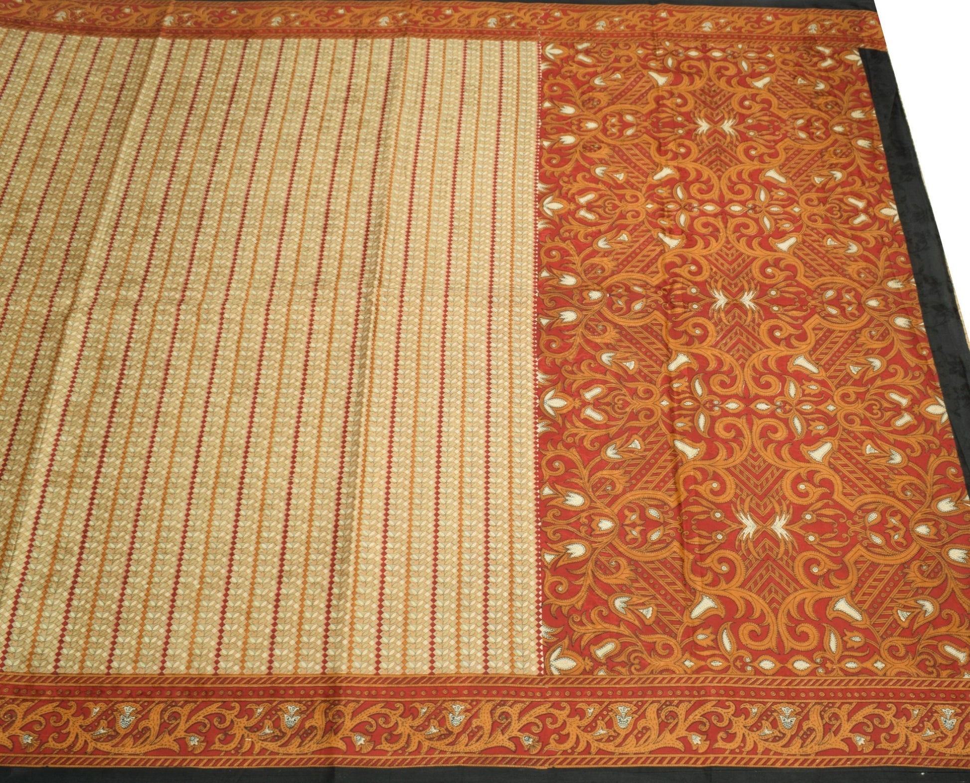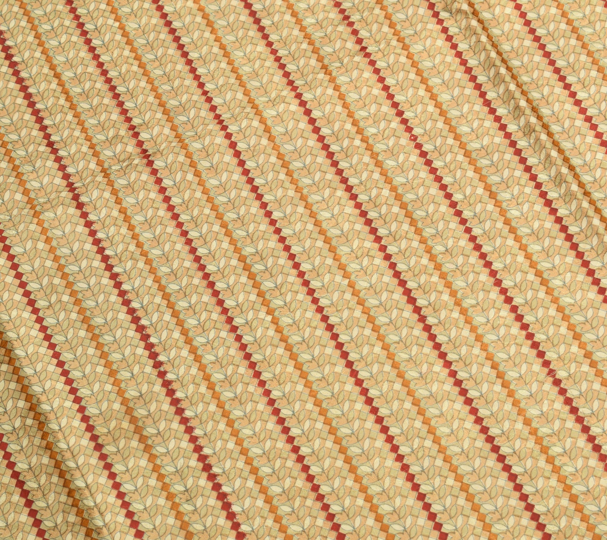 Sushila Vintage Saree 100% Pure Silk Printed Floral & Checks Soft Craft Fabric