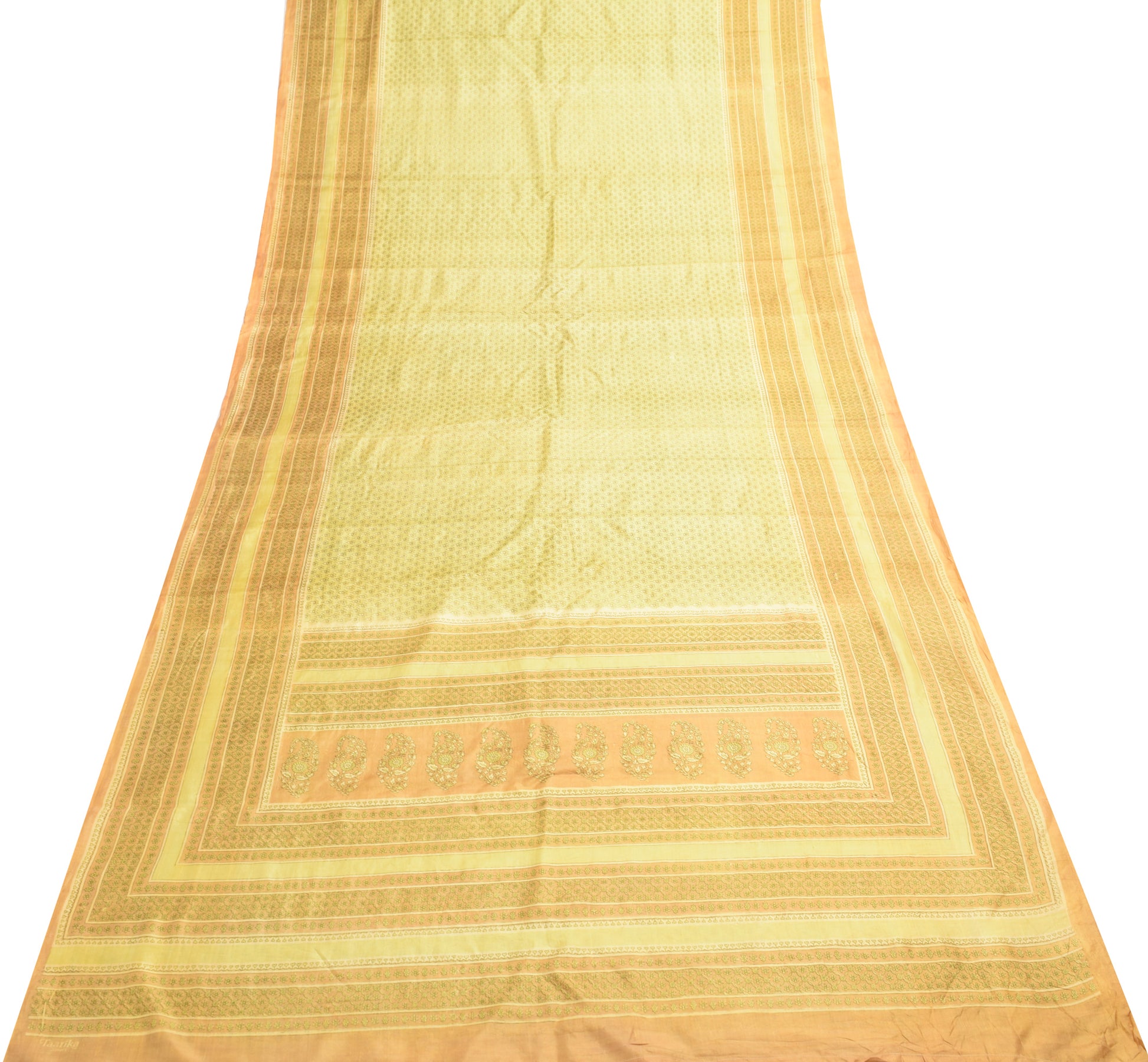 Sushila Vintage Saree 100% Pure Silk Printed Green Floral Soft Craft Fabric
