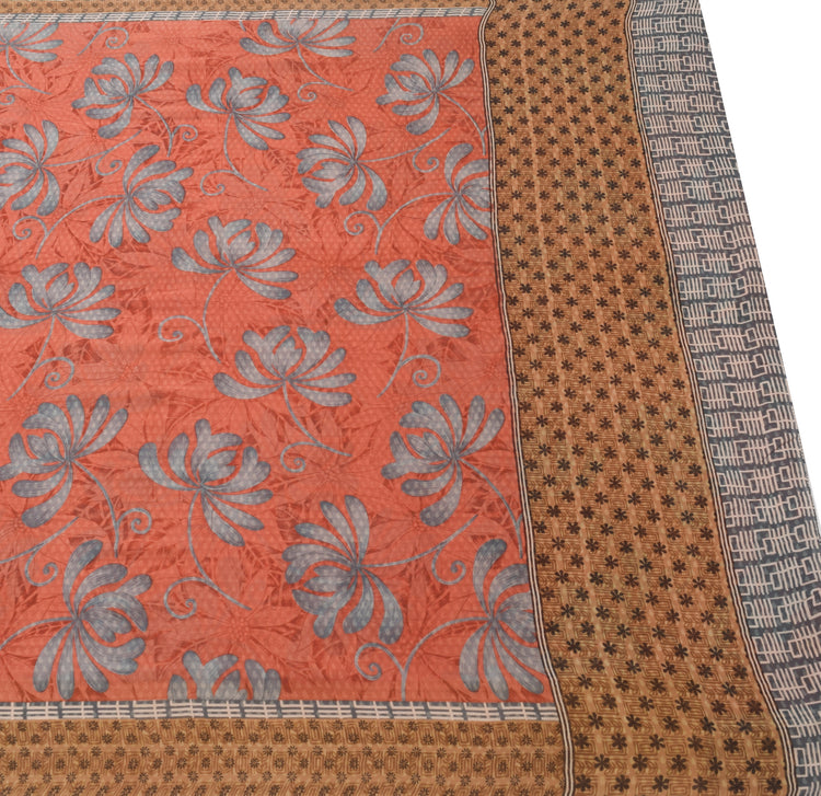 Sushila Vintage Saree Floral Indian 100%Pure Georgette Silk Printed Craft Fabric