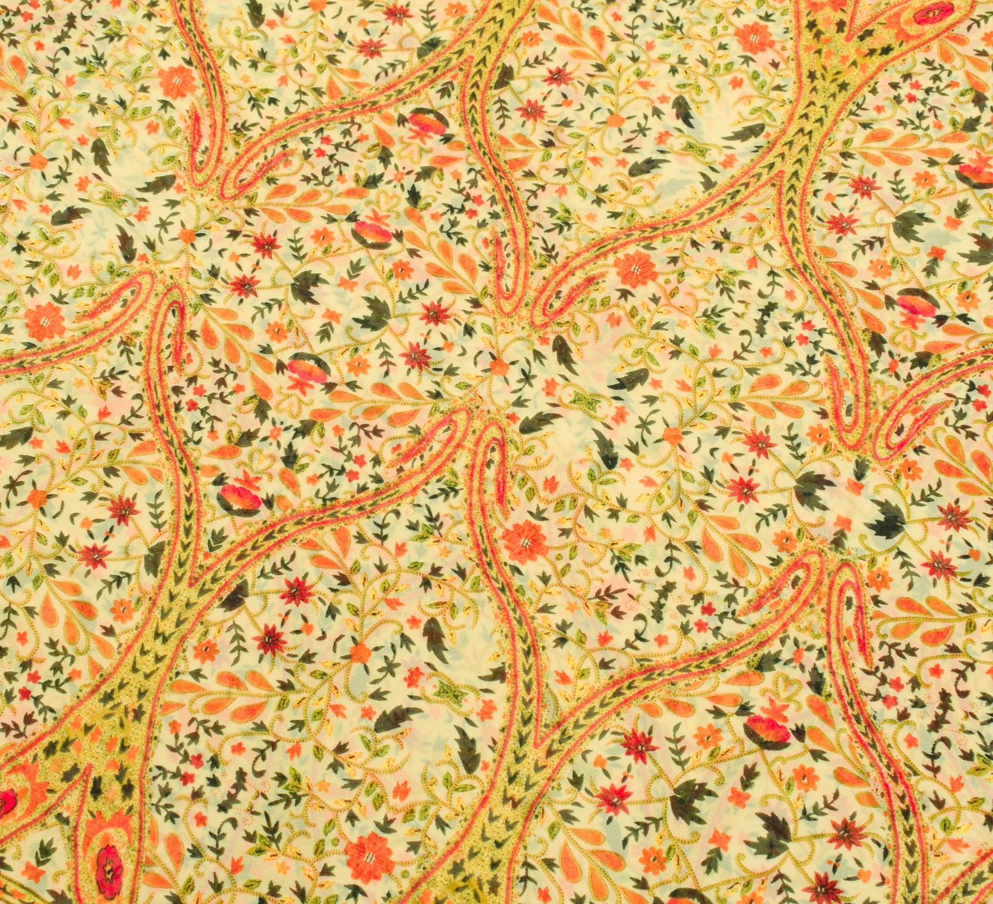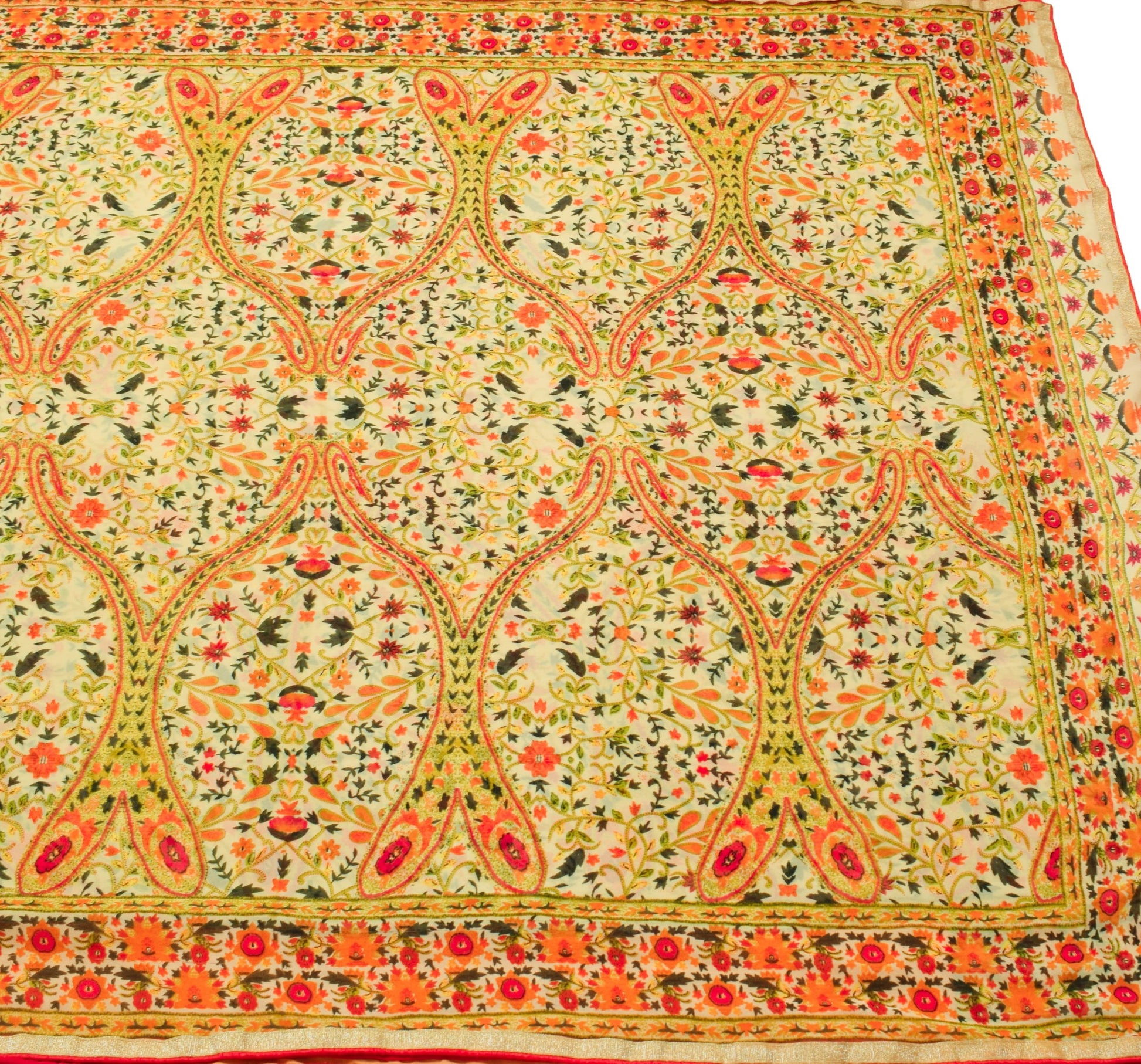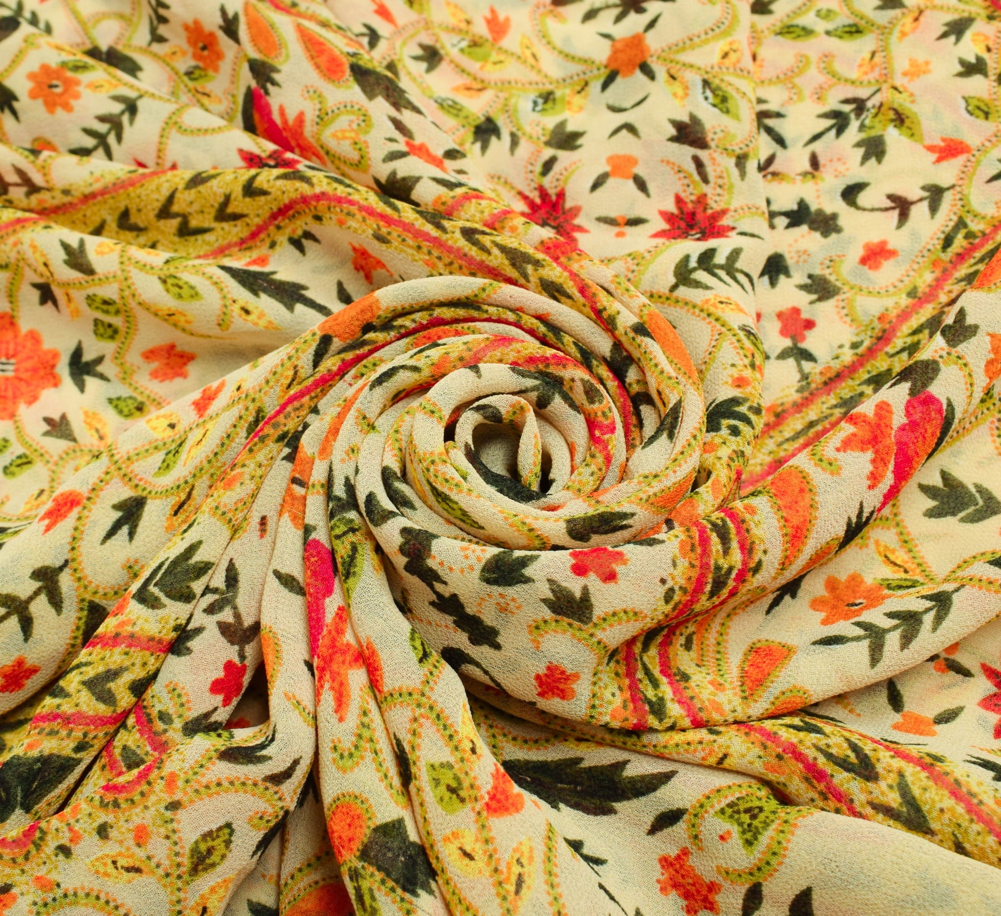 Experience the timeless allure of this Cream 100% Pure Georgette Silk saree, crafted with intricate Floral motifs and refined Printed details. It is perfect for special occasions, creative repurposing, or as a beautiful heirloom gift. Measuring approximately 210 Inch in length and 43 Inch in width, this sari offers versatile styling options. It is lightweight, weighing just 530 Grams (Actual Product weight), making it easy to drape and carry for long hours. The natural breathability and luxurious drape of 100% pure georgette silk make it a prized choice for those who appreciate fine craftsmanship and vintage fashion.