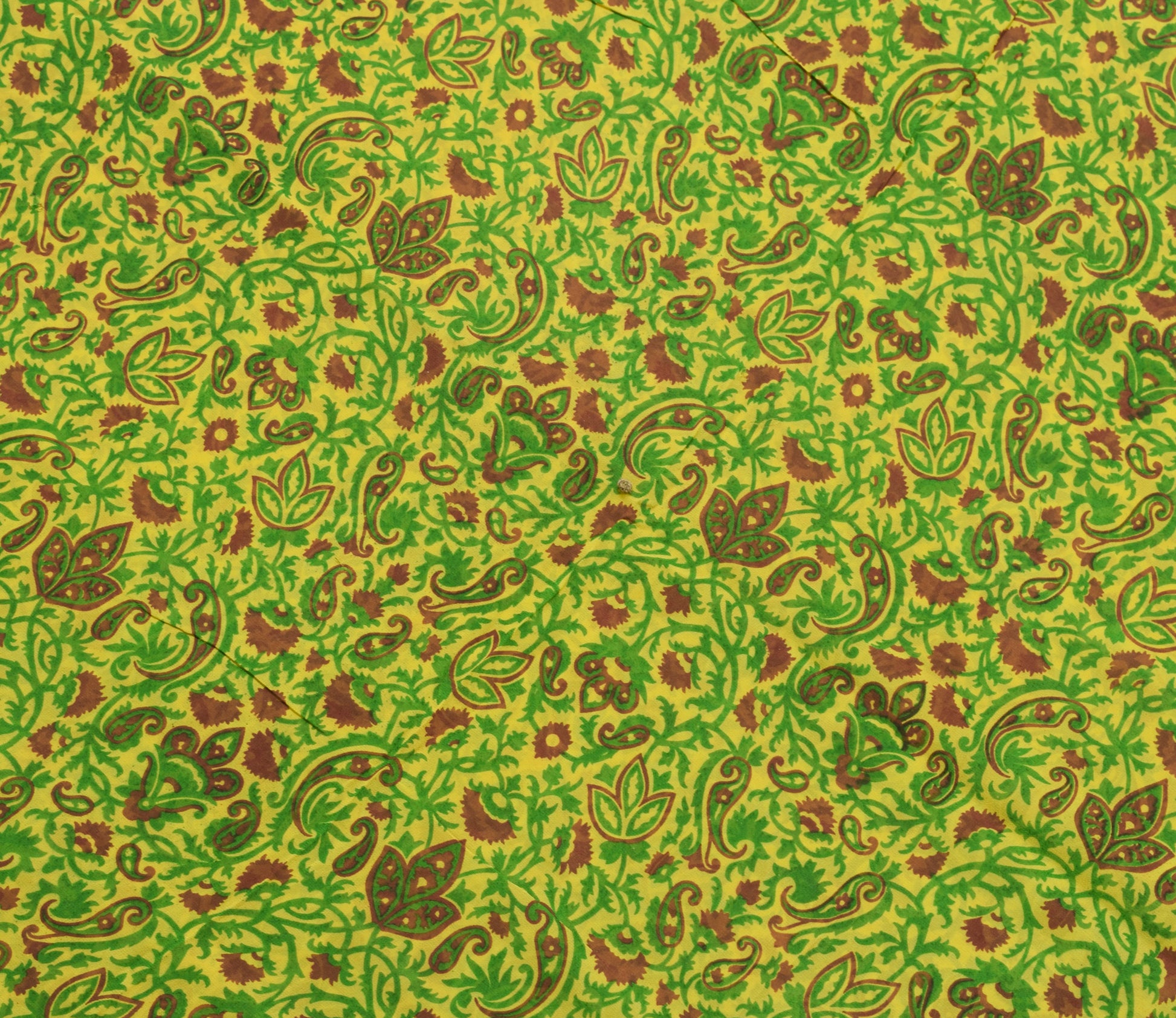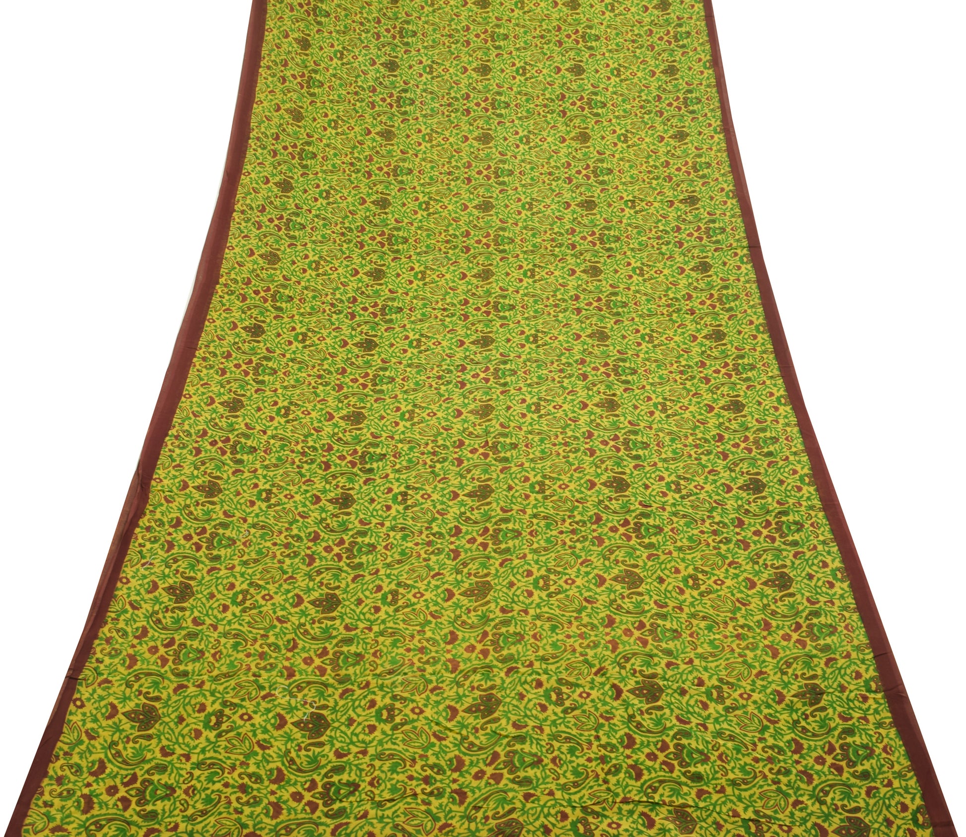 Sushila Vintage Saree Pure Georgette Silk Yellow Paisley Printed Craft Fabric