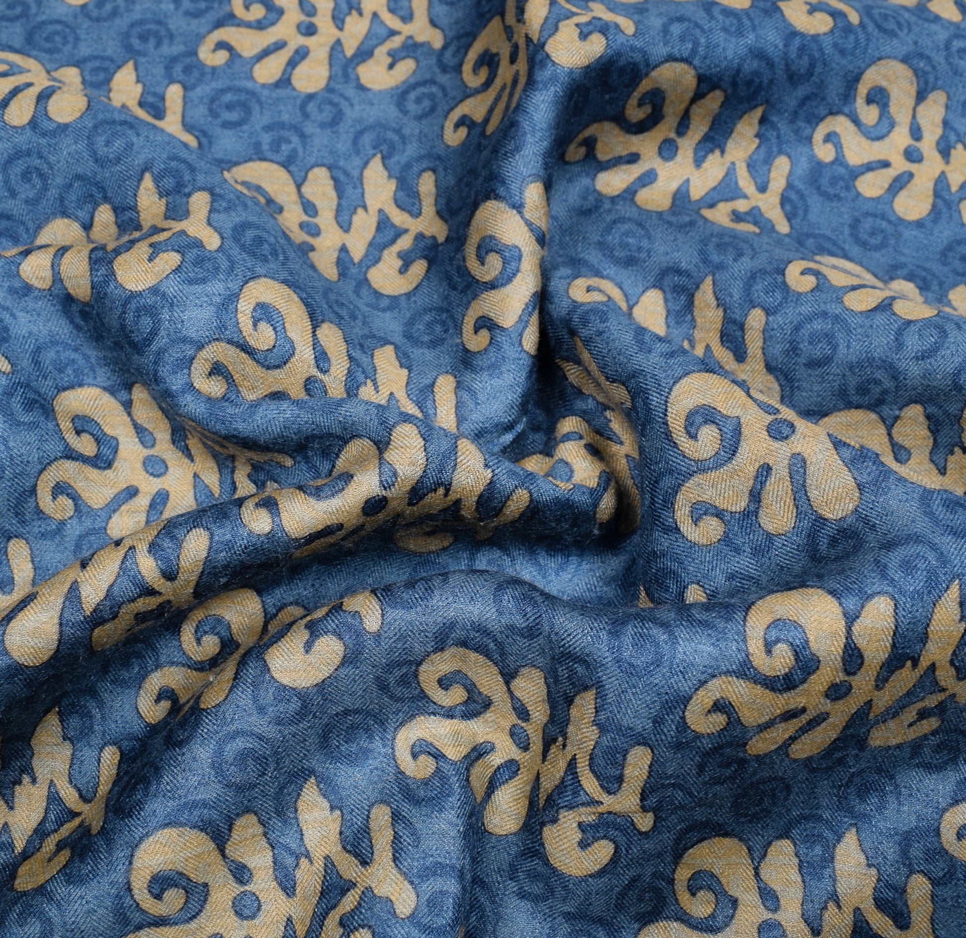 Sushila Vintage Shade of Blue Saree Pure Woolen Woven & Printed 6Yds Sari Fabric