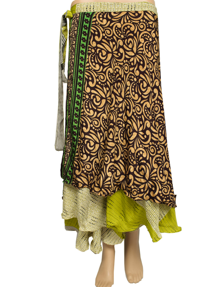 This reversible 2‑Layer Magic Wrap Skirt is crafted from pre‑owned vintage Blend Crepe Silk saree fabric, showcasing a charming as per images floral pattern for a perfect blend of style and sustainability. Ideal for beach outings, casual wear, or versatile styling, these skirts are lightweight, comfortable, and uniquely patterned. The vibrant designs and flowing fabric make them ideal for pairing with shirts, T‑shirts, or Kurtis. These skirts can be styled in multiple ways, offering endless possibilities for fashion enthusiasts. For styling ideas, simply search for "magic wrap skirt tutorial" on YouTube.